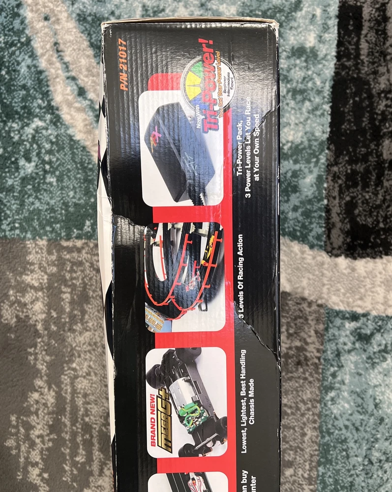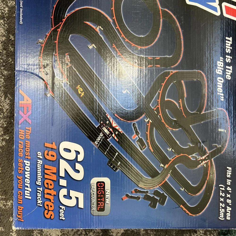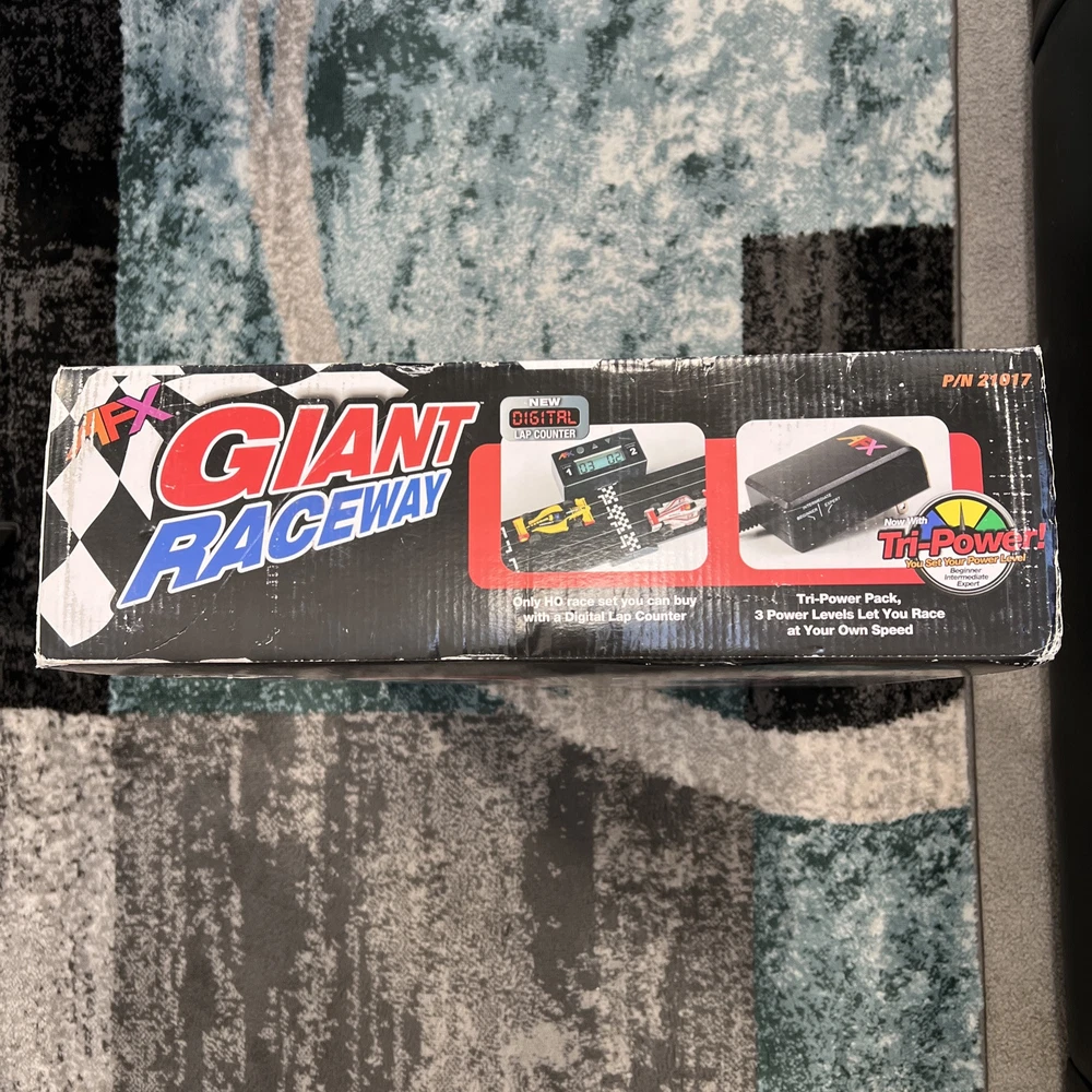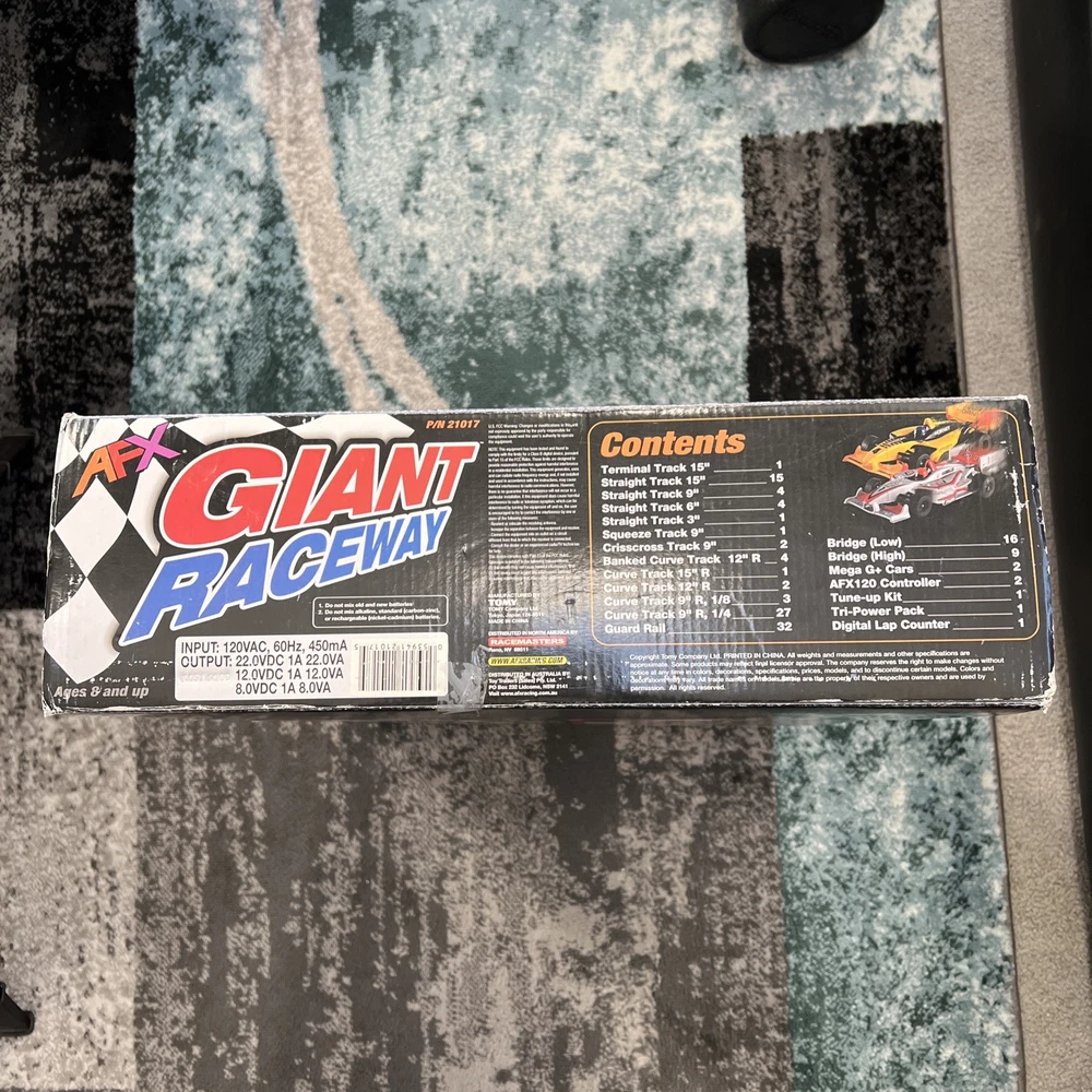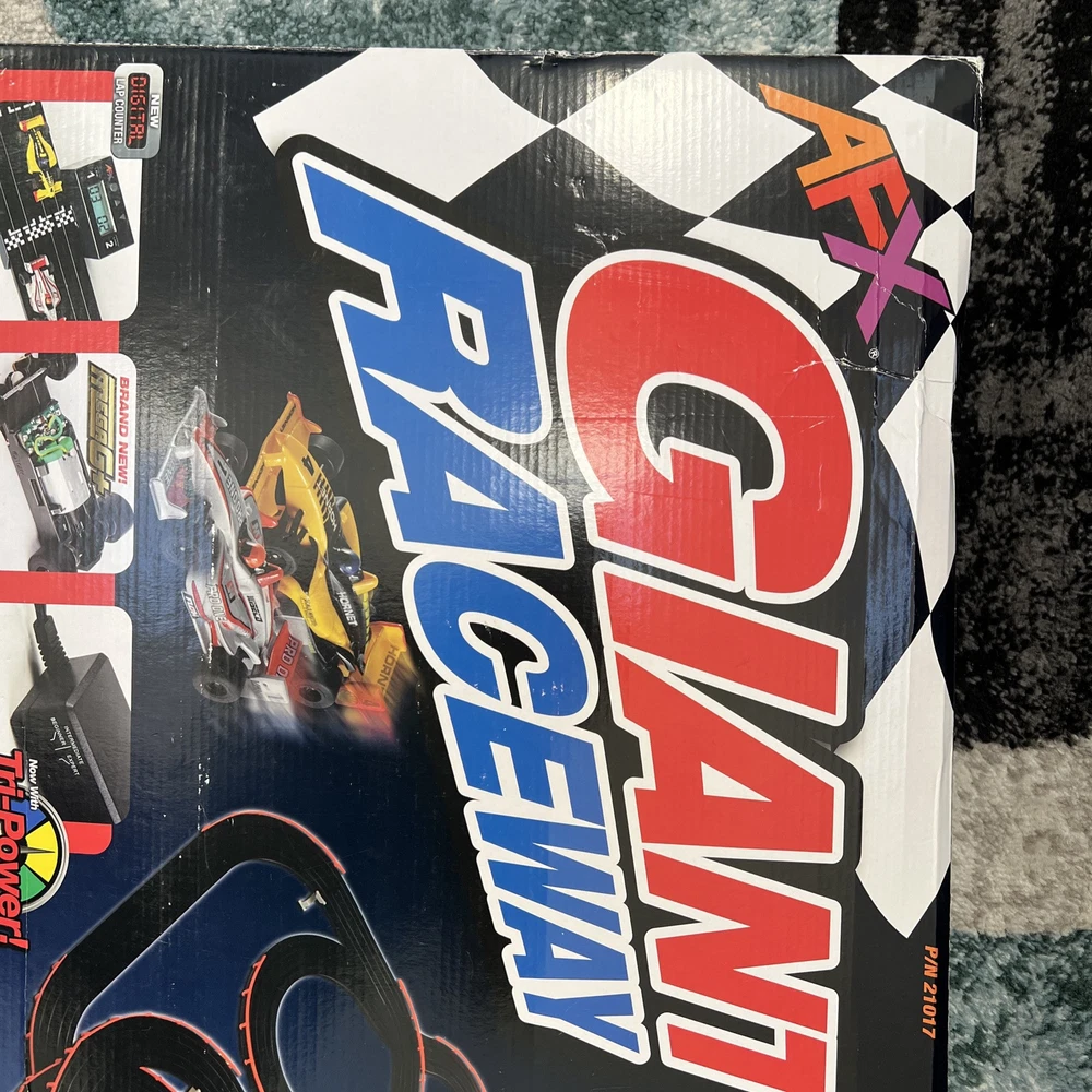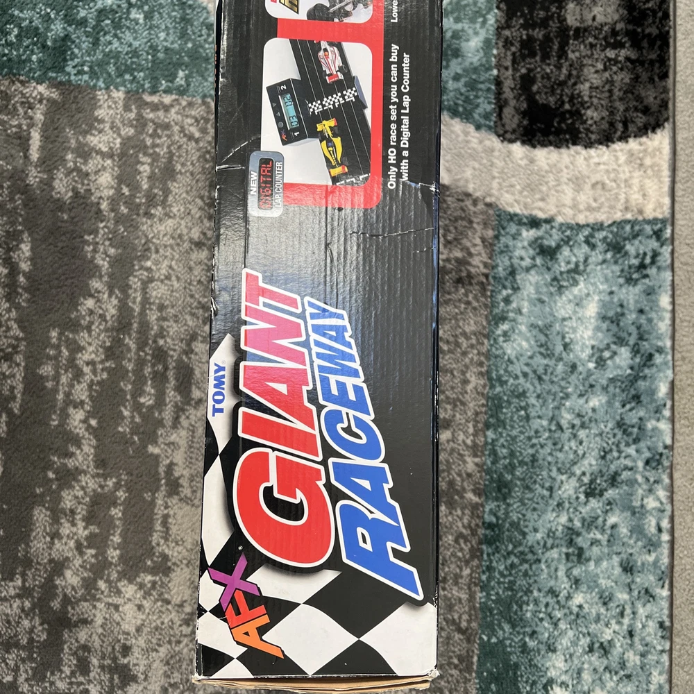 This is an AFX TOMY slot car track set model called Giant Raceway, designed for HO scale slot cars from brands like Tyco and Auto World. It is an original and new old stock (NOS) item, suitable for slot car enthusiasts looking to expand their track collection. There is some visible show of age and wear on the Box New open box. Complete. Please see photos. Shipped fast and safe. Thank you for shopping with Thriflo.