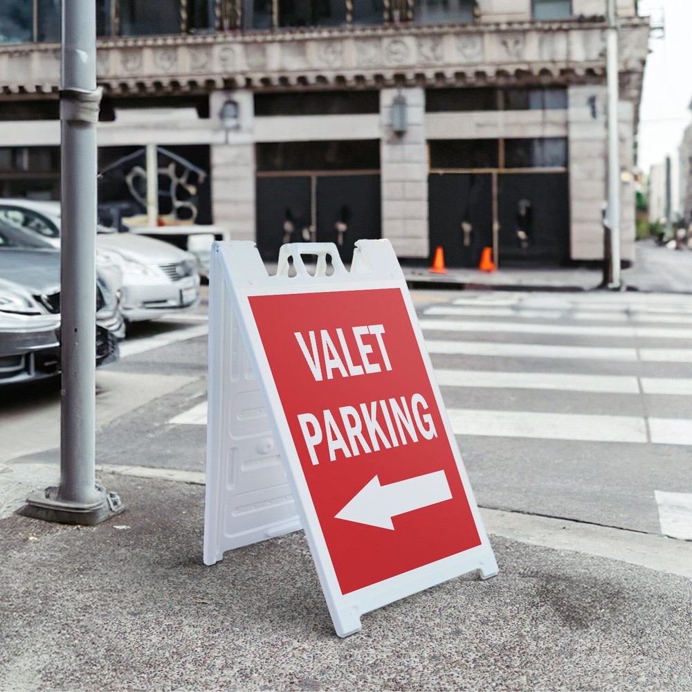 A-frame Sidewalk Valet Parking With Arrow 24" x 36" Double Sided A-Frame Sidewalk Sign, Includes 2 Plastic Inserts | Foldable Portable White Signicade Sandwich Board Signs Universal 2 eBay Template by Finest Design Vinyl Banners Aluminum Signs Safety Signs Yard Signs Designer Aluminum Signs Novelty Signs Vinyl Banners Aluminum Signs Safety Signs Yard Signs Designer Aluminum Signs Novelty Signs Description A-frame Sidewalk Valet Parking With Arrow 24" x 36" Double Sided A-Frame Sidewal PRODUCT DESCRIPTION: This listing has 2 variations. The different PRODUCT DESCRIPTIONS are listed below: Deluxe A-Frame Signs with (2) Plastic Signs (NAME) Portable Heavy-Duty A-Frame (2) 24” x 36” 4mm Corrugated Plastic Signs DOUBLE-SIDED - Display signs on both sides for maximize exposure CHANGE YOUR MESSAGE – Swap sign inserts and change your message PORTABLE AND STORABLE - Sign frame easily folds down for convenient transport and storage Heavy-Duty - Portable - Reusable - Weather Resistant Our Signicade deluxe A-Frame comes with 2 corrugated plastic sign inserts. The sign graphics are adhered to the frame using Velcro which is included with the deluxe A-Frame package. Order multiple signs and change the message in just a few minutes as often as you need! Just search for SignMission 24” x 36” sign inserts. (2) 4mm Corrugated Plastic Signs Self-Adhesive Velcro to Attached Signs White Heavy-Duty Frame 18 lbs. + 10 lbs. if Sand/Water Added 24” x 36” Removable Sign Graphics Indoor / Outdoor Use Double-Sided Deluxe A-Frame Signs with (2) Installed Vinyl Decals (NAME) Portable Heavy-Duty A-Frame (2) 24” x 36” Installed Vinyl Decals DOUBLE-SIDED - Display signs on both sides for maximize exposure CHANGE YOUR MESSAGE – Swap sign inserts and change your message PORTABLE AND STORABLE - Sign frame easily folds down for convenient transport and storage Heavy-Duty - Portable - Reusable - Weather Resistant Our Signicade deluxe A-Frame comes with 2 installed vinyl decals. Order multiple signs and change the message in just a few minutes as often as you need! Just search for SignMission 24” x 36” sign inserts. (2) Installed Vinyl Decals White Heavy-Duty Frame 18 lbs. + 10 lbs. if Sand/Water Added Indoor / Outdoor Use Double-Sided