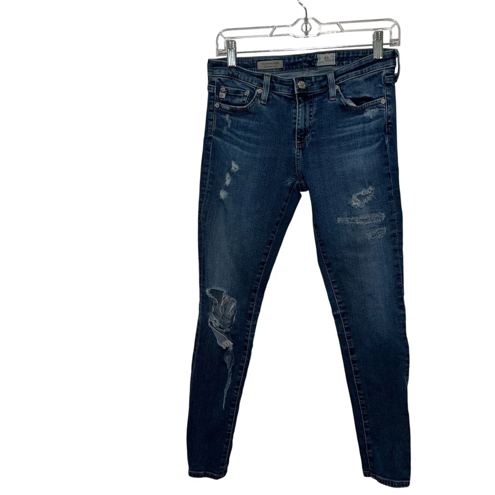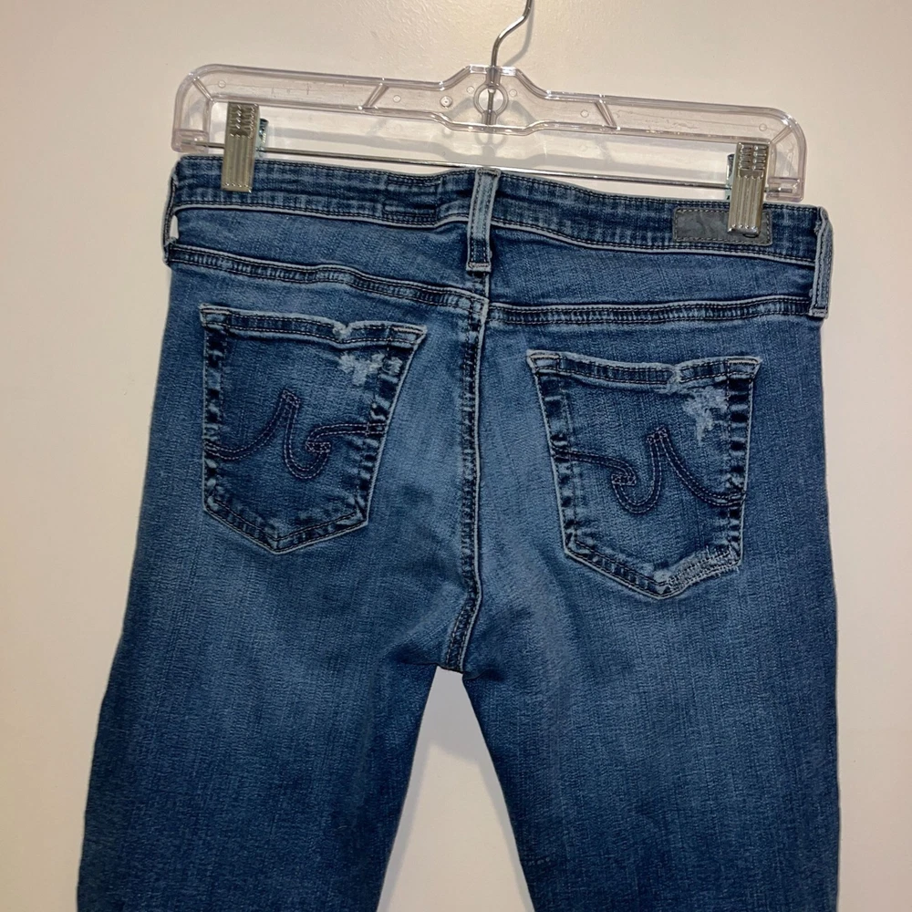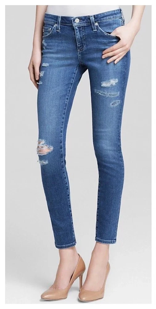 These AG Adriano Goldschmied jeans offer a stylish and contemporary look with their distressed detailing and super skinny fit, ideal for a modern wardrobe. The ankle-length design is versatile and can be paired with various footwear options, making them suitable for different settings. • The legging Super Skinny Ankle Fit • Distressed Design • Zip Fly Closure • Front & Back Pockets • Belt Loops Size 28 Smoke Free Home Great Preowned conditions