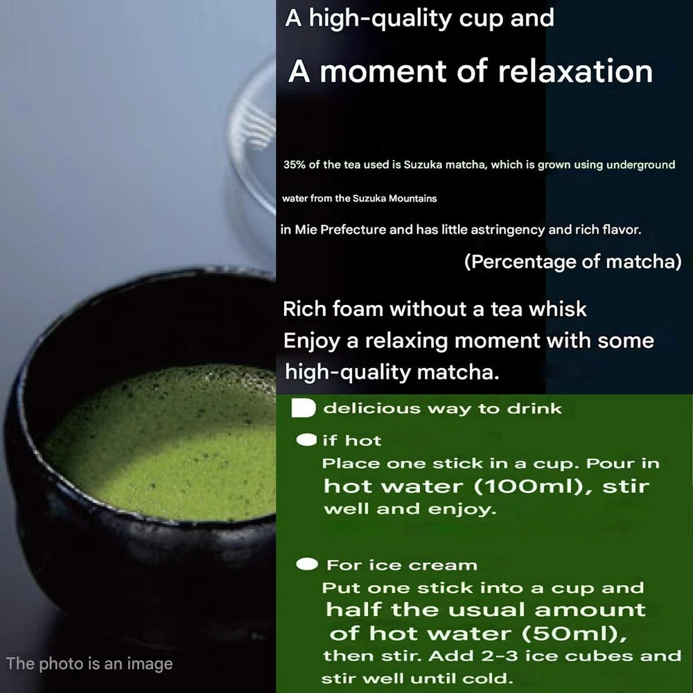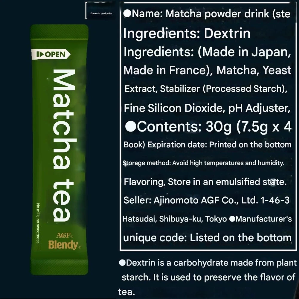 Product Information Product Description AGF Blendy Premium Matcha Sticks 2Box/8pcs Milk-Free Sugar-Free from Japan Features : Authentic Matcha, Anywhere : Premium powdered matcha in a convenient stick format, allowing you to enjoy the refined umami of high-quality matcha effortlessly. No whisk needed—just add hot water for a velvety, frothy cup. Milk-Free, Unsweetened Option : Made with 53% Suzuka matcha, known for its low bitterness and rich umami flavor. This perfectly balanced blend offers a harmonious mix of umami, sweetness, and a touch of astringency, creating a smooth and satisfying matcha experience. Enjoy a moment of tranquility and indulge in the authentic taste of Japanese matcha anytime, anywhere. Please note that both the packaging and the instructions are in Japanese. Shipping Information All items are shipped from Japan. Handling time usually takes 3-10 business days . Details Shipping Option Courier Tracking Estimated Delivery Time Additional Fees Economy Japan Post (Air) NO 11-23 business days or more None Standard Japan Post (Air) or Speedpak Yes *Excl. NZ, CA 11-23 business days Applies Expedited FedEx or DHL Yes 1-5 business days Applies *may vary for remote areas * For shipments to Canada and New Zealand, Economy and Standard shipping options do not include door-to-door tracking. If tracking is required, we recommend selecting the Expedited Shipping option. * For Expedited Shipping, a remote area surcharge may apply based on the courier’s assessment. Unfortunately, this fee can only be confirmed after the order is placed. If applicable, we will notify you prior to shipment. Should you accept the additional fee, we will proceed with shipping promptly. If not, we will be happy to cancel the order upon your request. * Delivery times may vary depending on your country's flight availability and customs clearance procedures. Payment Method We only accept eBay payments. We ship within 3-10 business days after receiving payment (excluding weekends and Japanese holidays). Please update your confirmed shipping address on eBay before ordering, as it cannot be changed after shipment. If reshipment is required, the buyer must pay additional fees. International Buyers Please Note Import duties, taxes, and other charges are not included in the item price or shipping cost. These charges are the buyer's responsibility. Please check with your country's customs office to determine what these additional costs will be prior to bidding or buying. These charges are typically collected by the shipping company or when you pick the item up ? they are not additional shipping charges. We do not mark merchandise values below their actual value or mark items as "gifts" - this is prohibited by US and international regulations. About us We are a Japanese store specializing in handmade Multi-Functional straps and accessories. Each piece is crafted by skilled artisans, blending traditional and modern designs to highlight the unique charm and craftsmanship of Japan. We also offer a selection of practical Japanese products to give you a taste of Japanese culture's elegance and care. Through eBay, we aim to introduce more people to excellent Japanese products. We strive to provide the best shopping experience to ensure you find what you love. If you have any questions or need custom services, please contact us.
