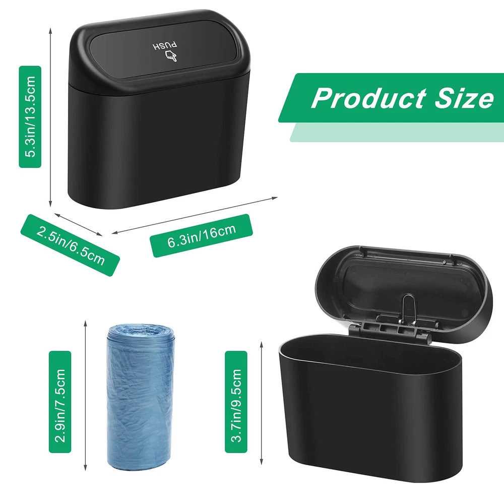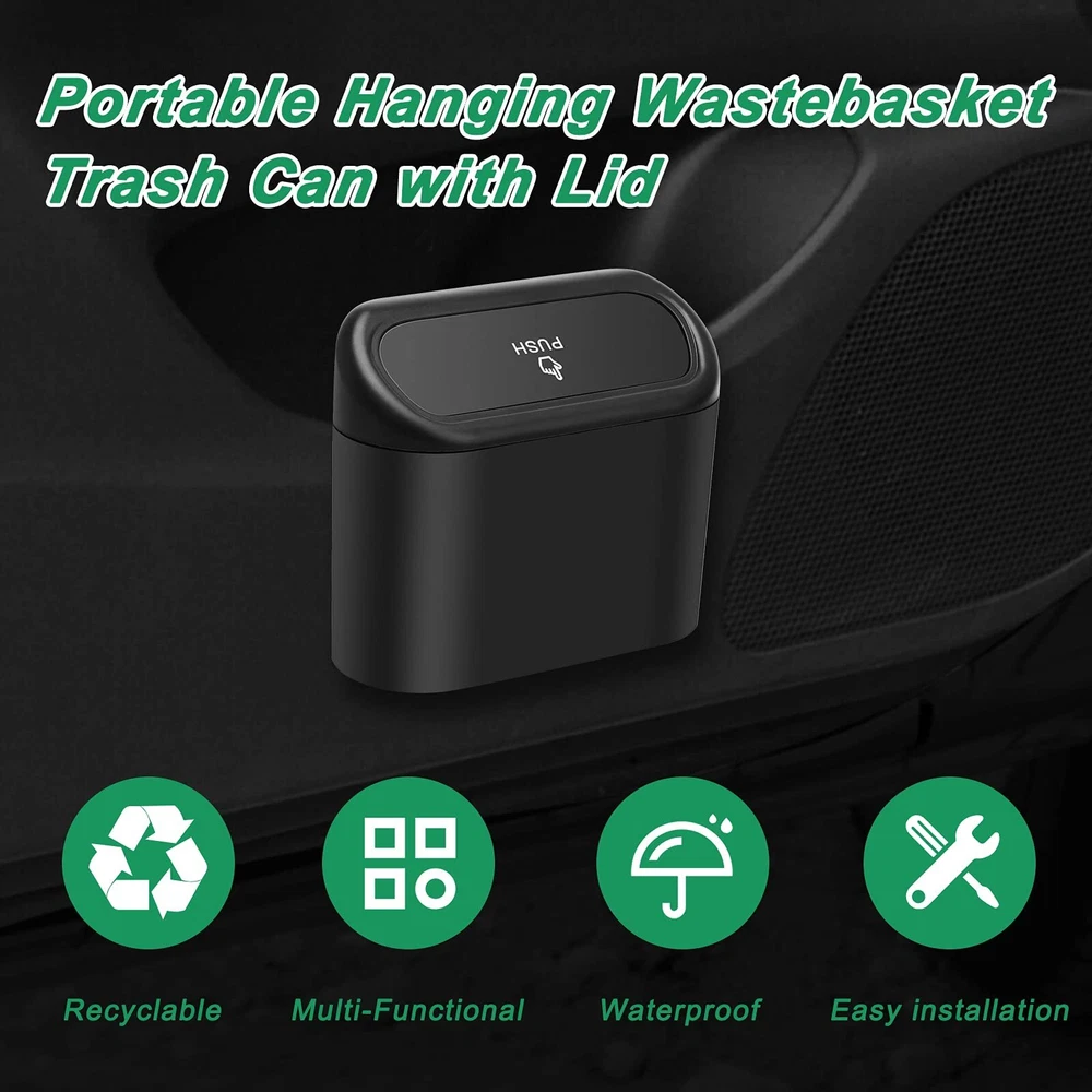 AHIER Small Car Trash Can with lid, Plastic Car Garbage Can Portable Hanging Min Features: 【Material】The car trash can cute is made of waterproof plastic, Waterproof and strong toughness, is durable and not easy to break. 【Convenience】Trash can for car with a flexible spring, easy to bounce lid design, easy to put garbage into the trash can. 【Multifunctional】The car garbage can cute is suitable for various types of vehicles, and is also suitable for use in the living room, bedroom, kitchen and office. 【Clean】Portable trash can for car front seat can help you keep your car clean and tidy, and comes with 1roll garbage bags(30piece bags), which can be taken away at any time 【Suspended】Mini garbage can for car suspended design is easy to disassemble and install, save your space, it can be hung on the door or placed on the ground and table. Features: 【Material】The car trash can cute is made of waterproof plastic, Waterproof and strong toughness, is durable and not easy to break. 【Convenience】Trash can for car with a flexible spring, easy to bounce lid design, easy to put garbage into the trash can. 【Multifunctional】The car garbage can cute is suitable for various types of vehicles, and is also suitable for use in the living room, bedroom, kitchen and office. 【Clean】Portable trash can for car front seat can help you keep your car clean and tidy, and comes with 1roll garbage bags(30piece bags), which can be taken away at any time 【Suspended】Mini garbage can for car suspended design is easy to disassemble and install, save your space, it can be hung on the door or placed on the ground and table. eBay integration by
