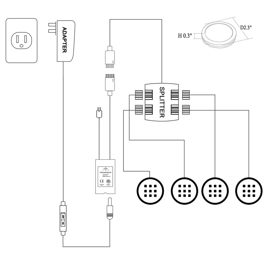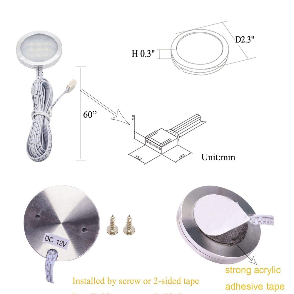 AIBOO RGBW RGB + White Color Changing Christmas Xmas Under Cabinet LED Lights Kit IR Remote Puck Lights for Kitchen Counter Shelf Furniture Ambiance Lighting (RGBW, 4 Lights, 12W) Product Details Color: RGBW Brand: AIBOO MPN: YK-300000007 UPC: 712411878320 EAN: 0712411878320 Brand: AIBOO Color: RGBW Material: Metal Style: Modern Light fixture form: Puck Is Discontinued By Manufacturer : No Product Dimensions : 7.87 x 5.91 x 2.76 inches; 1.08 Pounds Item model number : YK-300000007 Batteries : 1 CR2032 batteries required. Date First Available : September 8, 2016 Manufacturer : AIBOO Country of Origin : China Customer Reviews: 4.2 4.2 out of 5 stars 567 ratings Brand: AIBOO Color: RGBW Material: Metal Style: Modern Light fixture form: Puck Room Type: Kitchen, Bedroom, Home Office Product Dimensions: 2.3"L x 2.3"W x 0.3"H Specific Uses For Product: General purpose Indoor/Outdoor Usage: Indoor Power Source: Corded Electric Installation Type: Surface Mount Special Feature: Dimmable Control Method: Remote Light Source Type: LED Finish Type: Polished Shade Material: Plastic Number of Light Sources: 4 Voltage: 12 Volts Theme: Christmas Light Color: RGBW Shape: Round Lighting Method: Up/Down Light Item Weight: 1.08 Pounds Wattage: 12 watts Controller Type: Remote Control Unit Count: 1 Count Brightness: 800 Lumen Mounting Type: Adhesive,Under Cabinet Fixture Type: Non Removable Assembly Required: No Manufacturer: AIBOO UPC: 712411878320 Recommended Uses For Product: Mood Lighting Part Number: under-cabinet-rgbw-4 Item Weight: 1.08 pounds Country of Origin: China Item model number: YK-300000007 Batteries: 1 CR2032 batteries required. Is Discontinued By Manufacturer: No Finish types: Polished Maximum Compatible Wattage: 3 Watts Special Features: Dimmable Plug Format: A- US style Batteries Included?: No Batteries Required?: No Date First Available: September 8, 2016 RGBW is a combination of RGB and pure white light color, which can provide natural and comfortable white light rather than blue white light. The rgbw puck light kit comes with a 40-key IR remote control, providing a variety of lighting effects and dimmable modes to fulfill different requirements. Power adapter is 100/120Vac to 12Vdc, very safe to touch by hands. Up to 85% energy saving comparing to traditional lighting. Suggested applications: dinning room, kitchen, bedroom, furniture, counter, closet, drinks cabinet, party lighting.