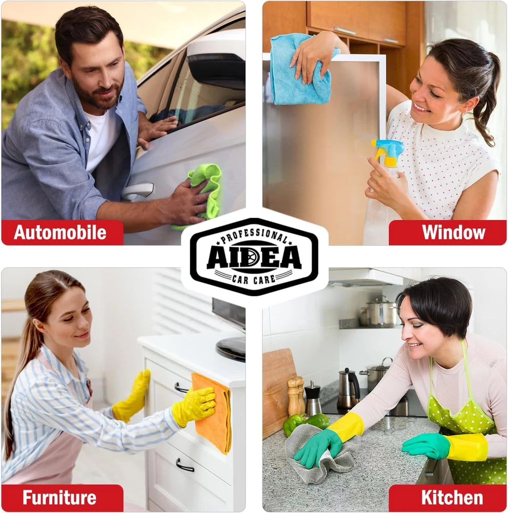 Store New Arrivals Add to Favorite View Feedback Contact AIDEA Microfiber Cleaning Cloth 24 Pack, 12Inx16In Microfiber Towel for Cars, Soft & Absorbent Microfiber Towels, Lint Free Cleaning Cloth, Premium Wash Cloth for House, Kitchen, Car, Shop Towels Description Unit Count 24.0 Count Product Dimensions 16"L x 12"W Number of Items 24 Color Multicolor Pattern Solid Brand AIDEA Material Microfiber Theme No Theme Item Weight 8.8 ounces Shape Rectangular Package Type Cardboard box Age Range (Description) All Ages Size 24 Pack-12 inch x 16 inch Special Feature Machine Wash & Easy Care and Use, Soft & Lint-Free & Non-Scratch, Long Lasting & Reuseable, 12in x 16in & Big size, Multifunctional Fabric Type Microfiber Product Care Instructions Machine Wash Manufacturer AIDEA Material: AIDEA Microfiber Cleaning Cloths are made of 87% polyester and 13% polyamide; they offer excellent absorbency and softness; lint-free and streak-free Soft & Lint-Free: AIDEA multifunctional cleaning cloths are ultra-soft and durable; suitable for most surfaces; they do not scratch paints, coatings, or delicate surfaces; ideal for home, kitchen, window, and car cleaning Reusable & Long-Lasting: AIDEA microfiber car towels can be reused hundreds of times without losing effectiveness; they remain soft and highly absorbent; perfect for kitchen, bathroom surfaces, glass, electronics, and automotive detailing Easy Care: The cleaning cloths are easy to care for; they can be machine washed with warm water; towels dry quickly; keep your car clean and dry Multifunctional: In addition to cleaning your vehicle, these towels are suitable for wiping down the interior, windows, wheels, and more; one towel can handle multiple tasks; saving time and effort Product Description Unmatched Absorbency AIDEA soft microfiber cloths are highly absorbent. With a simple one-hand motion, these cloths absorb water faster and more efficiently than cotton, ensuring quick drying. They are safe for all hard surfaces, making them perfect for use in the kitchen, on windows, and for your car cleaning needs. Machine Washable and Long-lasting You can wash it hundreds of times without worrying about losing its absorbency and softness. This cloth is trusted and used by the highest echelon of auto enthusiasts, making it the go-to choice for car detailing needs. More cleaning supplies Add to Cart Add to Cart Add to Cart Add to Cart Add to Cart Add to Cart Customer Reviews 4.4 out of 5 stars 2,975 4.5 out of 5 stars 94 4.6 out of 5 stars 3,882 4.6 out of 5 stars 1,490 4.6 out of 5 stars 3,454 4.4 out of 5 stars 286 Price $12.99 $ 12 . 99 $13.99 $ 13 . 99 $9.99 $ 9 . 99 $9.99 $ 9 . 99 $8.99 $ 8 . 99 $8.99 $ 8 . 99 Color Blue, Green, Grey, Orange White Green Blue Blue Grey Microfiber ✔ ✘ ✔ ✔ ✔ ✔ Size 12in.x16in 3.8 × 2.48 × 0.63 inch 7.12 n.x10.14 in 11.69 x 7.95 x 0.43 inch 24in x 31in 30 in x 22 in Pack 24 48 2 8 2 2 Multifunctional ✔ ✔ ✔ ✔ ✔ ✔ ABOUT US We offer the best prices around on high quality products. Our E-store includes media such as books, movies, music and games while offering electronics, toys, sporting apparel, clothing, tools, general home, garden items and more. SHIPPING We are always working hard to ensure your package arrives as soon as possible. Please understand that some factors like weather, high postal traffic, and the performance of shipping companies are outside of our control. We offer free shipping to the lower 48 states and ship within 2 business days of payment, usually sooner. We do not accept P.O. Boxes. Please provide a physical address. RETURNS We offer a 30-Day Return Policy on items which you are not completely satisfied with. You have the option for a full-refund or an exchange of the item. No returns are available on items shipped outside of the USA. PAYMENT We accept PayPal. CONTACT US This page content is yet to come Please ad us to your favorite seller and visit again later Thank You CUSTOMER SATISFACTION We try our very best to make sure every customer is completely satisfied. If there's a problem, message us! We're happy to help.