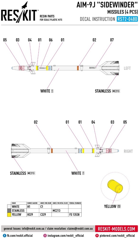 AIM-9J "Sidewinder" missiles (4 pcs) (F-4, F-5, F-16, F-15, F-14, Mirage F.1, Harrier, Mirage III, Hawk) (3D Printed) ResKit RS72-0480 - for Plastic Model Kit Enhance Your Scale Models with ResKit | High-Quality Resin & 3D-Printed Accessories RESKIT - Accessories for Scale Plastic Kits Upgrade your scale model collection with high-quality resin parts from ResKit. Our Ukrainian-made parts are meticulously crafted to provide the most accurate and detailed representation of original components. Whether you're building aircraft, helicopters, military vehicles, or figures, ResKit has the perfect parts to enhance your project. Scale: 1/72 Manufacturer: RESKIT (Accessories for Scale Plastic Kits) Country/Region of Manufacture : Ukraine Condition : New in Box Category: Resin & 3D accessories Type of equipment : AIRCRAFT Type of product: ARMS AND WEAPONS Recommended kit: Any AIM-9J "Sidewinder" missiles (4 pcs) for AIRCRAFT model kit: F-4 F-5 F-16 F-15 F-14 Mirage F.1 Harrier Mirage III Hawk ResKit is a Ukrainian manufacturer of high-quality resin parts and accessories for scale models . The products are distinguished by a high level of detail and accuracy, which allows modelers to create the most realistic models of military equipment, aviation and other objects. Key Features: Premium Quality: Our resin parts are made with the finest materials and precision engineering. Extreme Detail: Experience unparalleled detail and realism in your models. Wide Range: Choose from a vast selection of parts for various scales and subjects. Easy to Assemble: Our parts are designed for easy integration into your existing model kits. Superior quality! ResKit parts allow you to create a model with incredible detail. ---------------------------- >>> Visit our eBay store! <<< You will find everything you need at great prices. Scale model accessories are a wide range of parts, spares, and components that can help you make your model even more realistic and detailed. In our catalog, you will find everything you need to assemble and repair model cars, airplanes, ships, tanks, and weapons. Our accessories are made from high-quality materials and meet all standards. We offer a wide range of models and sizes so you can find what you need. Buy scale model accessories in our store and make your model even more unique!