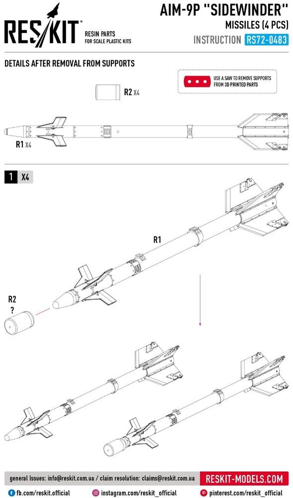 AIM-9P Sidewinder Missiles (4 pcs) (F-4, F-5, F-16, F-15, F-14, Mirage F.1, Harrier, Mirage III, Hawk, Mirage 2000) (3D Printed) Scale 1:72 ResKit RS72-0483 for Aircraft Model Kit Premium Resin & 3D-Printed Upgrade for Scale Plastic Model Kits Take your scale model builds to new heights with this detailed set from ResKitβa trusted name in professional-grade accessories for plastic model kits . ResKit Premium Model Accessories β Elevate Your Scale Models with Expert Craftsmanship Upgrade Your Builds with ResKit: Discover highly detailed resin & 3D-printed accessories designed for scale plastic models . Perfect for aircraft , military vehicles , helicopters , and figures , ResKitβs precision-crafted parts bring unmatched realism to your projects. Scale: 1:72 Manufacturer: RESKIT (Accessories for Scale Plastic Kits) Model (SKU): RS72-0483 Country/Region of Manufacture: Ukraine Condition: New in Box π¬ Need more stock? Weβve got you! Message us to customize your order quantity . As direct partners with manufacturers, we restock fast to meet your needs. π― Rapid replies assured! Available all day, with only time zones causing minor delays. π π Order Transparency We're here to help and will keep you informed on your order status. π Product Specifications Material: Resin / 3D Printed Features: Kit Kit description: Unpainted, Unassembled, Kit do not contain paints and glue Category: Resin & 3D accessories Type of equipment: Aircraft Type of product: Arms and Weapon Recommended kit: Any / Universal Country of origin: USA Skill level: Advanced Type aircraft or vehicle: McDonnell Douglas F-4 Phantom II Northrop F-5 Freedom Fighter/Tiger II McDonnell Douglas F-15 Eagle/Strike Eagle General Dynamics F-16 Fighting Falcon Grumman F-14 Tomcat Dassault Mirage F.1 Harrier Dassault Mirage III Hawk Dassault Mirage 2000 ResKit is your reliable partner in the world of modeling, Enhance your projects with our accessories and parts that will take your hobby to the next level! π Why Choose ResKit? β¨ Exceptional Precision: Each component is designed to replicate the real aircraft parts with maximum fidelity. β¨ 3D & Resin Excellence: Combines cutting-edge 3D printing with traditional resin casting for superior quality. β¨ Perfect Compatibility: Seamless fit with major plastic kit brands. β¨ Expansive Range: Explore upgrades for aircraft, helicopters, vehicles & more in multiple scales. About the Reskit Brand ResKit β Premium Upgrade Parts for Scale Model Kits Enhance your model builds with ResKit β top-tier resin and 3D-printed accessories for scale plastic kits in 1:32, 1:35, 1:48, 1:72 & 1:144. Our product line includes aircraft wheels, landing gear, pylons, engines, nozzles, cockpits & weapons. Designed for realism, precision, and easy fit β perfect for aviation and military modeling enthusiasts. π But Wait, There's More! π Visit Our Full Store β Shop Now βοΈ See All ResKit Products β Browse Collection π Take Your Scale Modeling to the Next Level! Step into the extraordinary world of scale modeling with our premium selection of scale model accessories , crafting supplies, and tools. Whether you're a seasoned modeler or just starting, we offer everything you need to create lifelike replicas of automobiles, aircraft, ships, and trains. Elevate your projects with: π¨ Miniature Components for added realism. π οΈ Precision Tools to craft every detail flawlessly. π‘ Supplies designed to unleash your creativity. Let your imagination soar with the best in scale model craftsmanship! π Customer Support: Fast response times Friendly service & custom order assistance Need multiple items? Message us β we can adjust quantity or restock quickly! π About Us ποΈ We provide a wide selection of 100% brand-new products at competitive prices βdirect from manufacturers to you. π¬ Need help? We're always here to assist you! βοΈ Enjoy a simple, secure, and worry-free shopping experience. π³ Payment π΅ All eBay payment methods accepted, giving you convenience and flexibility. π‘οΈ Transactions are protected by eBayβs Buyer Protection Program for your peace of mind. π Shipping Details βοΈ Fast & Reliable Shipping : Orders are shipped via trusted airmail services and delivered by your national postal service. π¦ Tracking Included : Monitor your package every step of the way. Shipping from Ukraine . Estimated delivery: 10β25 days . Handling time: 1β5 business days . π Shipping Discounts π° Save more with combined shipping discounts ! 50% off shipping for each additional item. π§ Request an invoice before payment for an updated total. π Hassle-Free Returns π Not satisfied? No worries! β Refunds issued promptly upon receipt of the item in its original condition. π― Shop with confidence and craft your perfect models today!