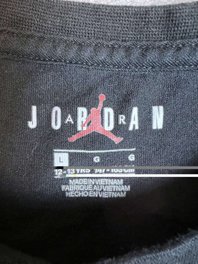 Country of Origin:VietnamColor:BlackDepartment:Unisex KidsCharacter:JordanType:T-ShirtMaterial:100% CottonSleeve Length:Long SleeveSize:LProduct Line:Air JordanPerformance/Activity:BasketballBrand:Jordan