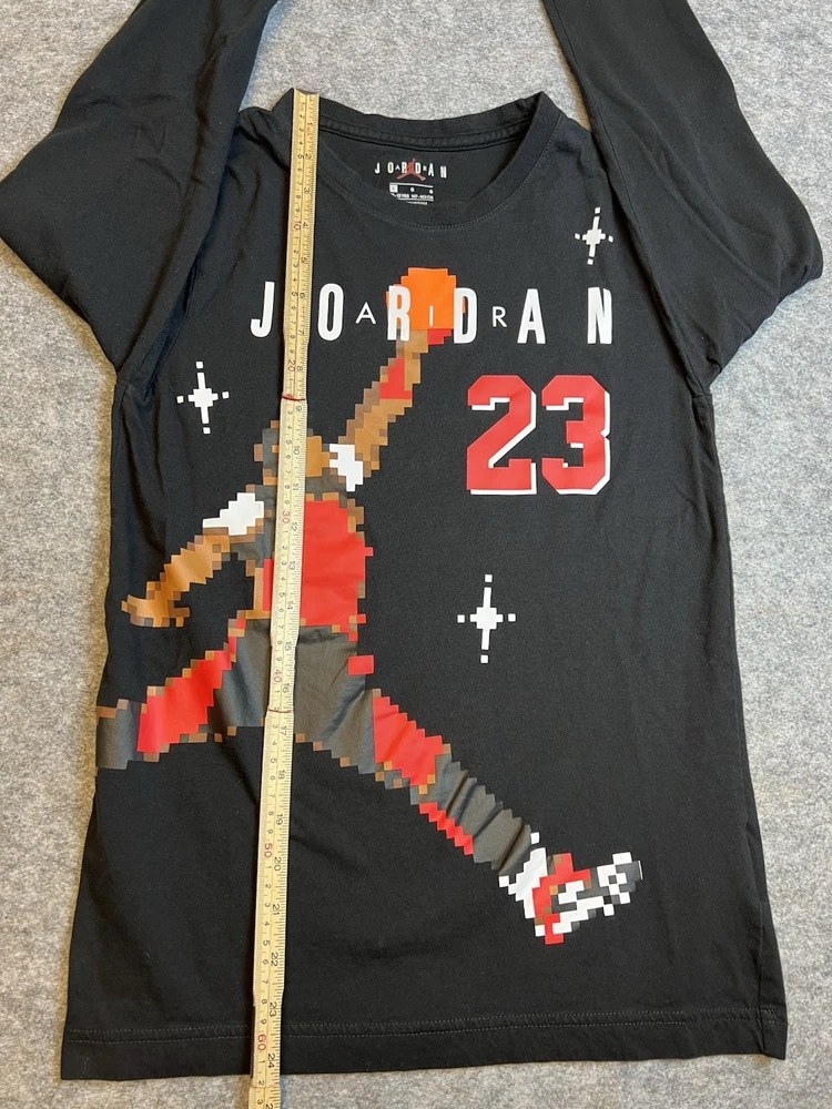 AIR JORDAN Black Long Sleeve Digital Pixels Of MJ In Air T-Shirt Size Large #23 Used. Item: N47(2) 0797