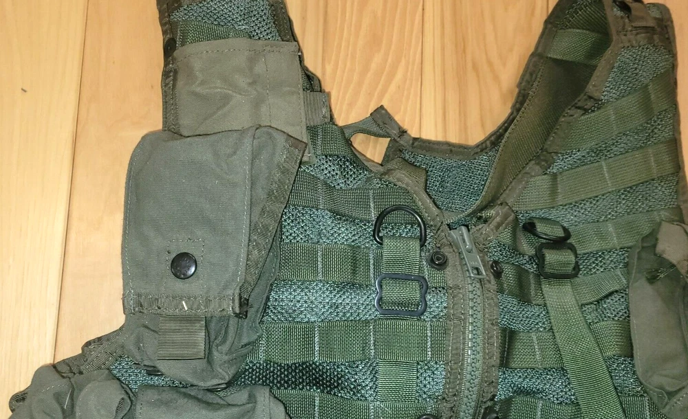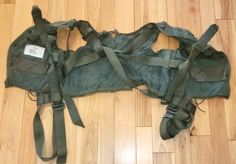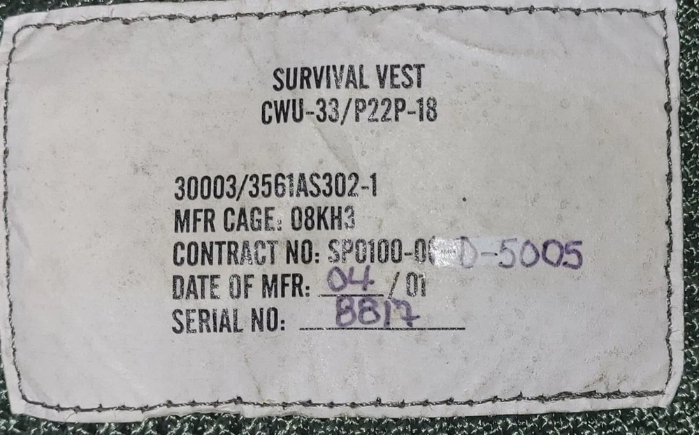 AIR WARRIOR CMU-33 Survival Vest/Harness. Made in U.S.A. Dated 2001. Comes with 6 pouches. One size fits most. Zipper works great. Original. Nice used condition. ITAR ITEM. Lower 48 only. No international shipping and No forwarders. Pictures show the condition. Thanks.