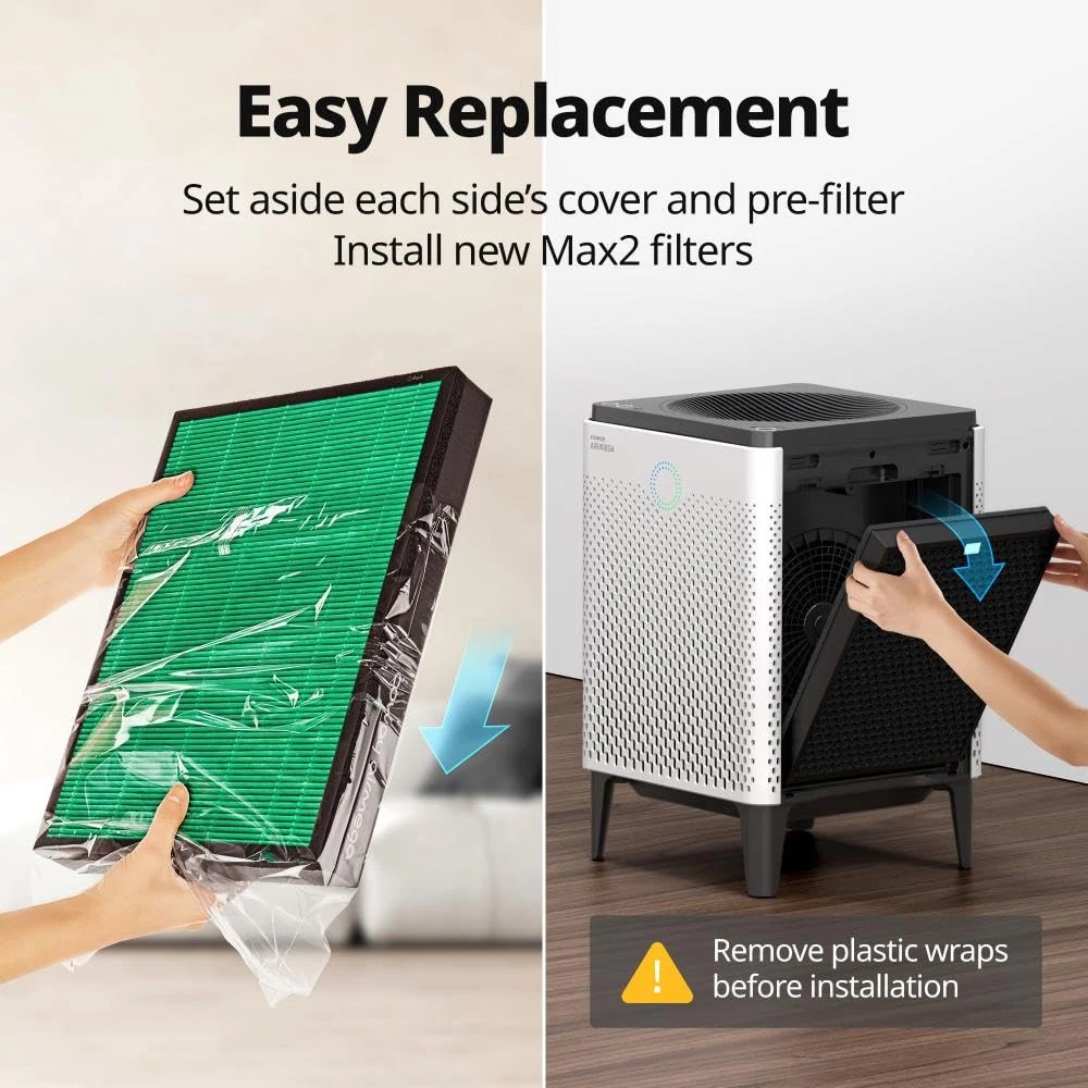 The Coway Airmega Max2 filter-combined activated carbon and True HEPA filter-captures and reduces up to 99.99% of 0.1 micron particles in the air, including pollen, pollutants and other allergens. It also reduces volatile organic compounds by more than 99% and reduces fumes such as NH3 and CH3CHO. Coway Airmega Max2 filter is an all-in-one HEPA filter system that combines True HEPA filter technology with an Activated Carbon filter. True HEPA filter captures and reduces up to 99.99% of 0.01-micron particles in the air. Activated Carbon filter reduces more than 99% of odor