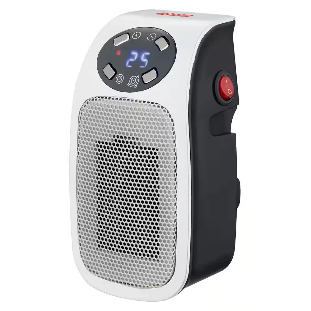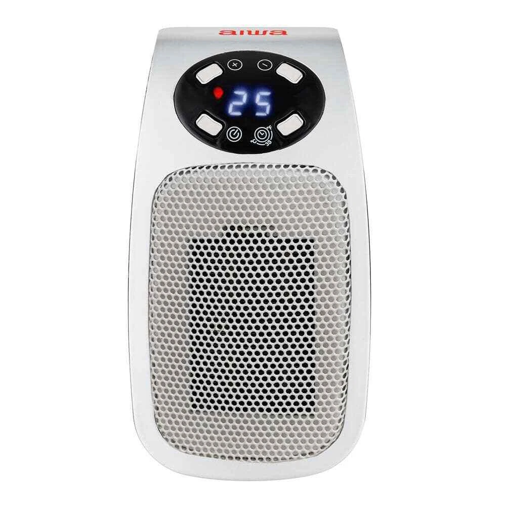 Electric space heater with adjustable temperature for convenience 24-hour timer ensures customized heating Convenient plug adapter rotates to fit most outlets The AIWA Outlet Plug-in electric space heater is perfect for to add warmth to any room. This heater is manufactured for indoor-use only and features Adjustable Temperature Control ranging up to 90°. The AIWA Outlet Plug-in Electric Space Heater warms up quickly to your desired setting and keeps you warm. With the AIWA Outlet Plug-in Electric Space Heater offers a timer mode up to 24-hours - this is the perfect heater for all-season use. The AIWA Outlet Plug-in Electric Space Heater's compact portable design means you can move it from room-to-room with ease. With the added safety features like, safety overheat protection, LED Display and ETL Certified Safety Certification you can rest easy and stay warm. 400-Watt with temperature up to 90° Plug adapter rotates to align with most outlets 0° minus 90° to 180° 24-hour timer Works with US AC outlets Overheat protection Digital adjustable thermostat