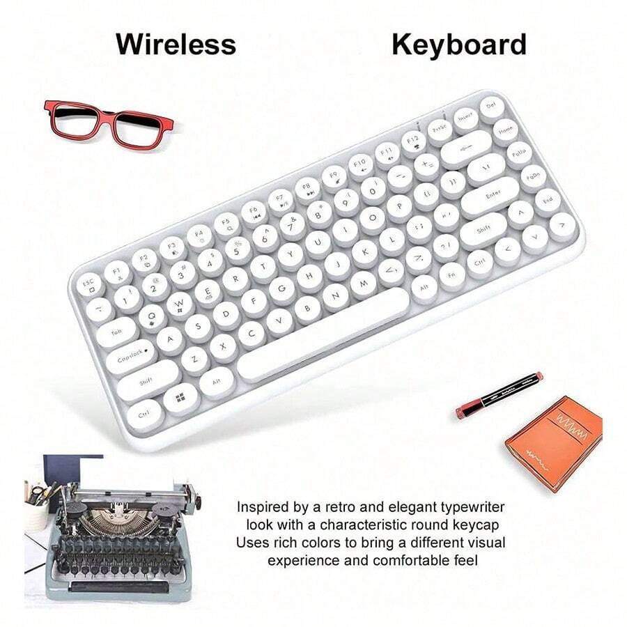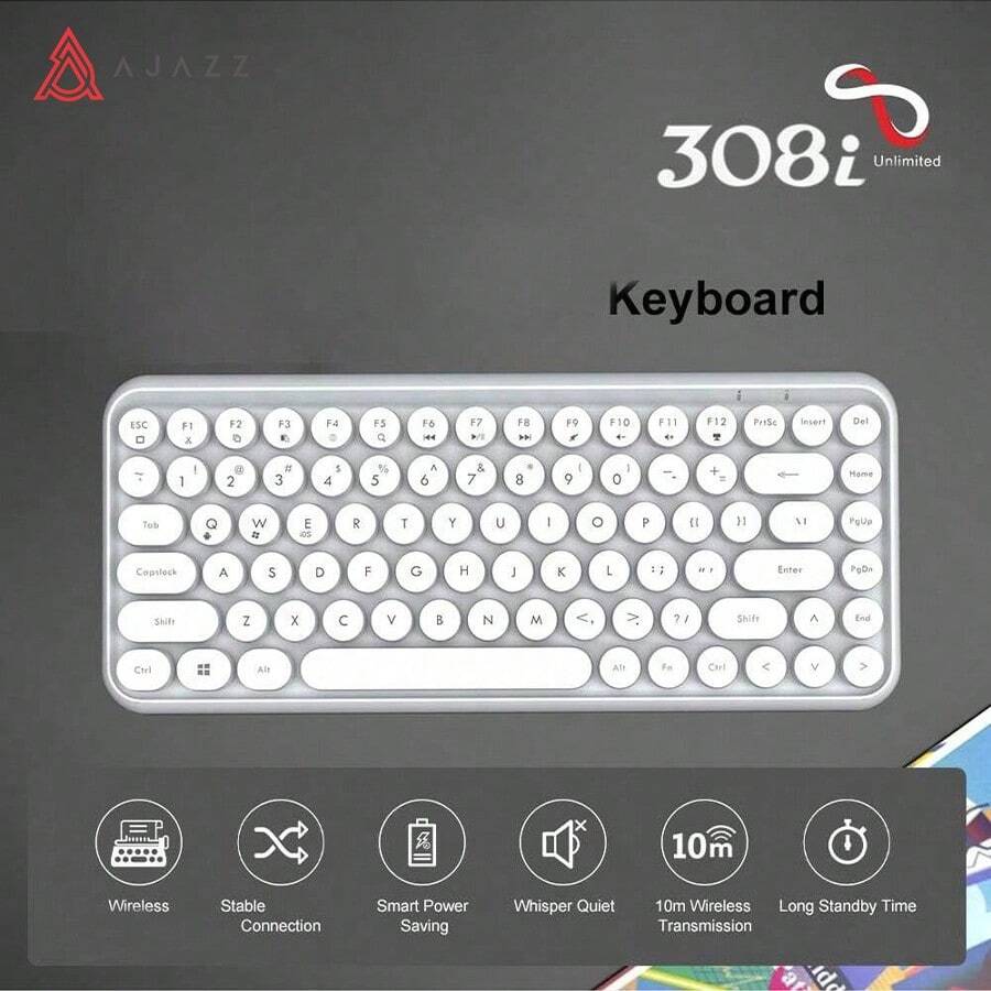 AJAZZ 308I Simple appearance compact easy to carry office long life round retro keycaps ins style wireless membrane keyboard-White
