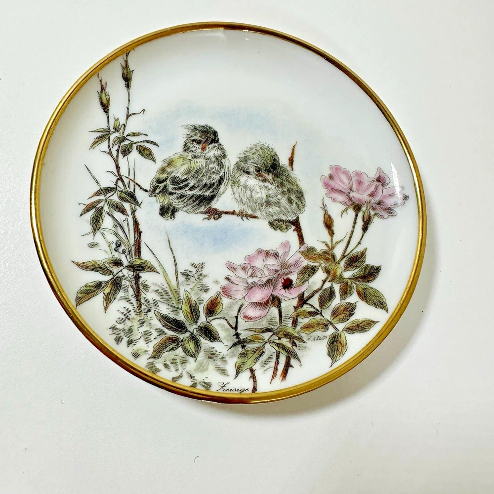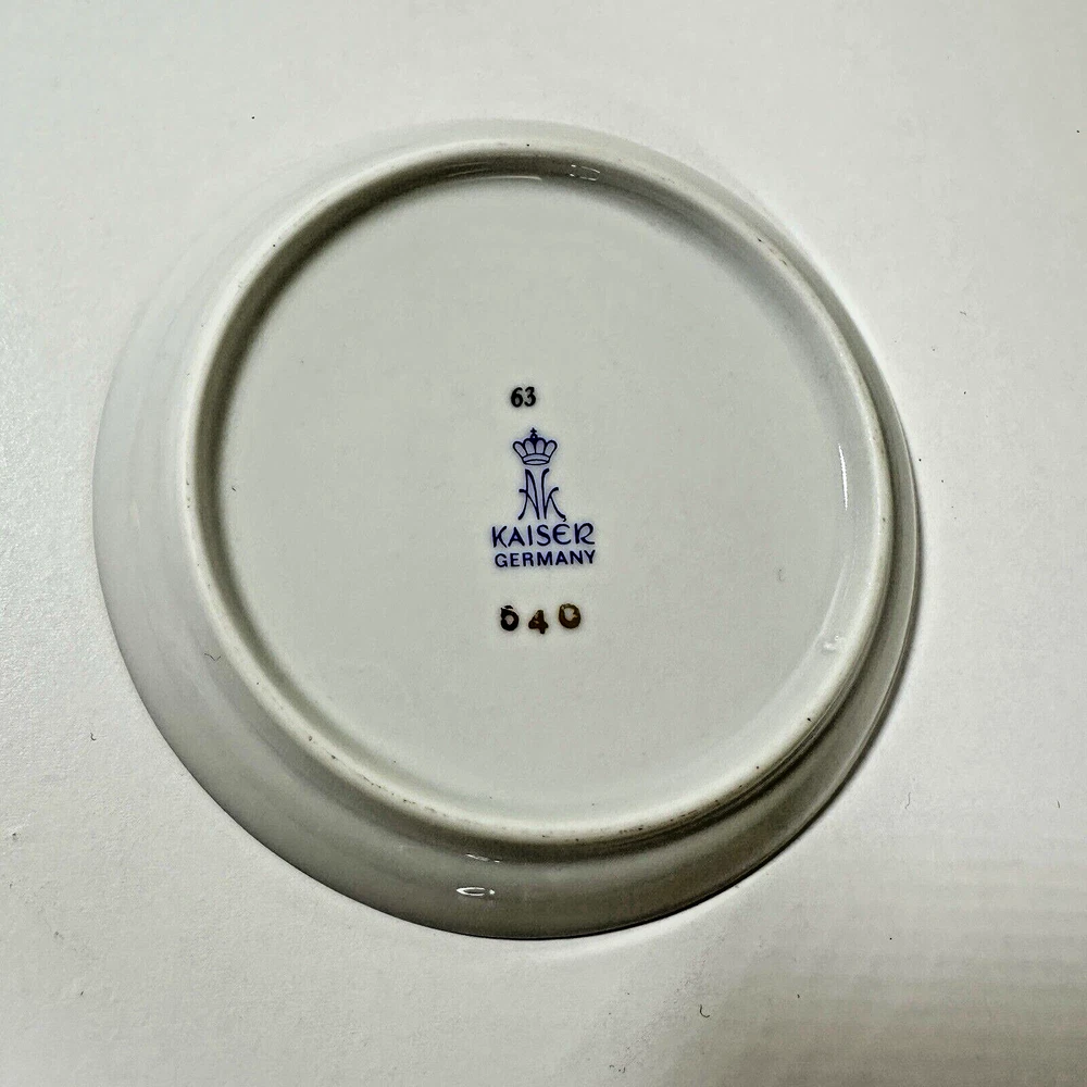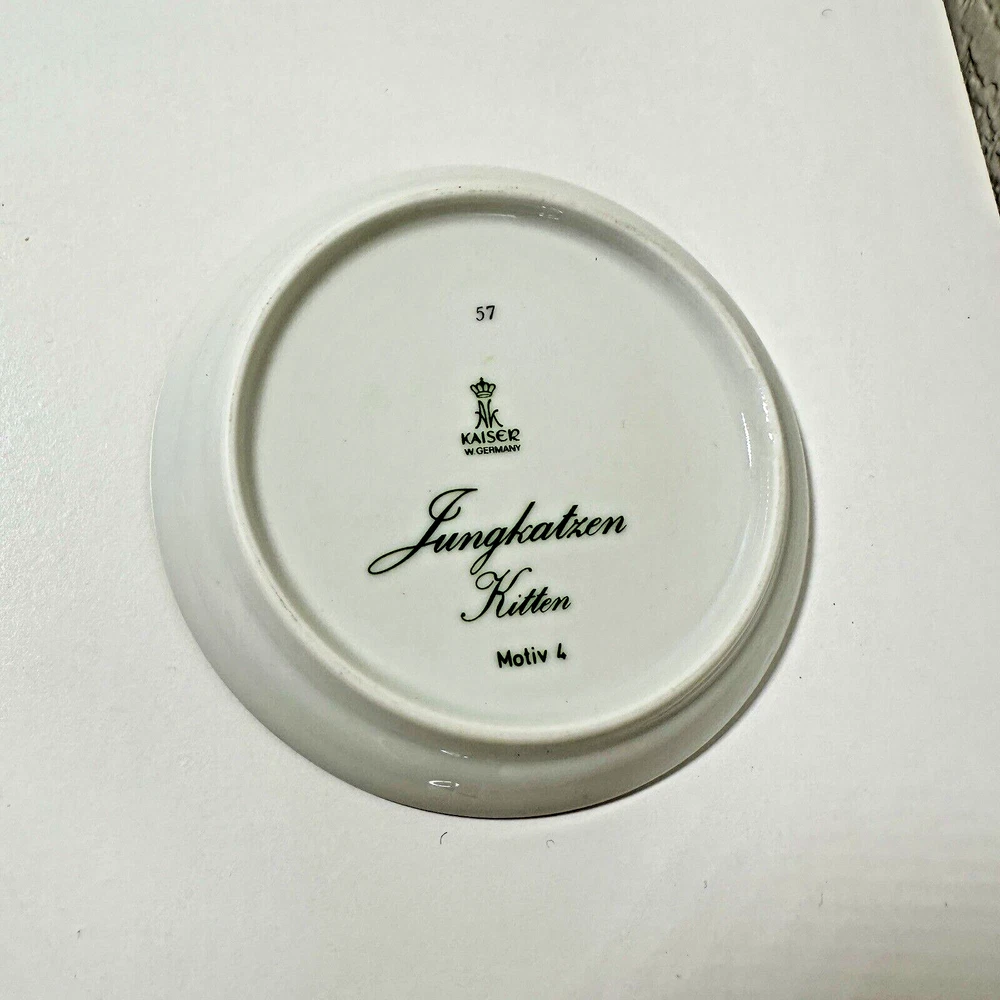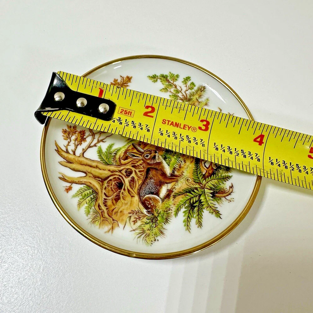 AK Kaiser Porcelain Trinket 4" Plates Coasters Germany Wildlife/Flowers Set Of 4 Pre-owned & overall in great used condition. One plate (rabbit plate) has a small dent in one side. See photos for close ups & measurements. Would make a great stocking stuffer! Ready to ship!