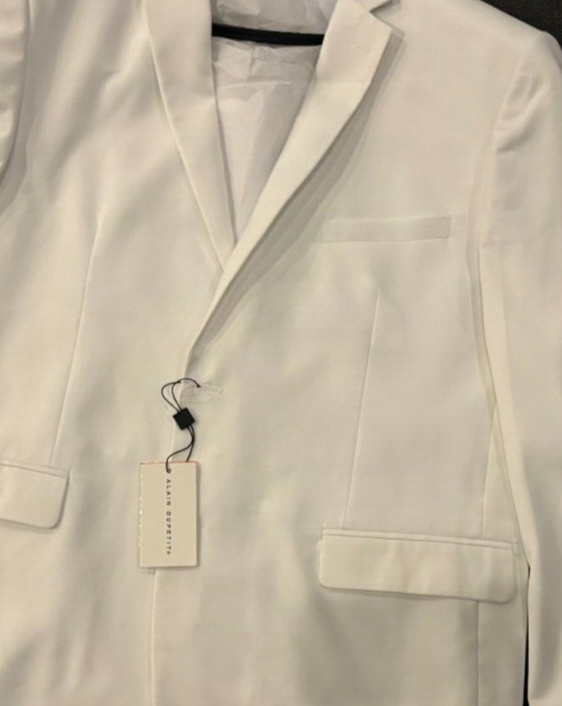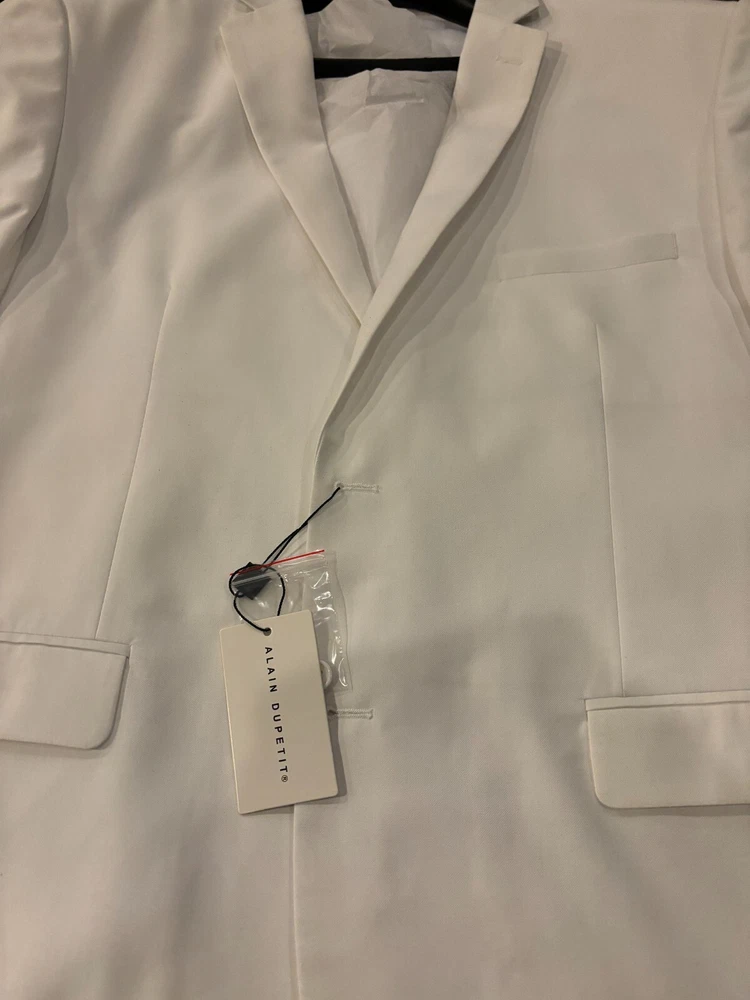 Elevate your style with this Alain Dupetitt men's suit jacket. Crafted with high-quality cotton, this overcoat is perfect for any occasion. The jacket features a classic white color and a regular size type that will fit most men comfortably. The jacket is designed with a two-button placket, a ribbed cuffs and hem, and a notched lapel. It also comes with a brand label of SUIT, making it a perfect addition to your wardrobe. Ideal for any department, this jacket is a must-have for any fashion-conscious man.