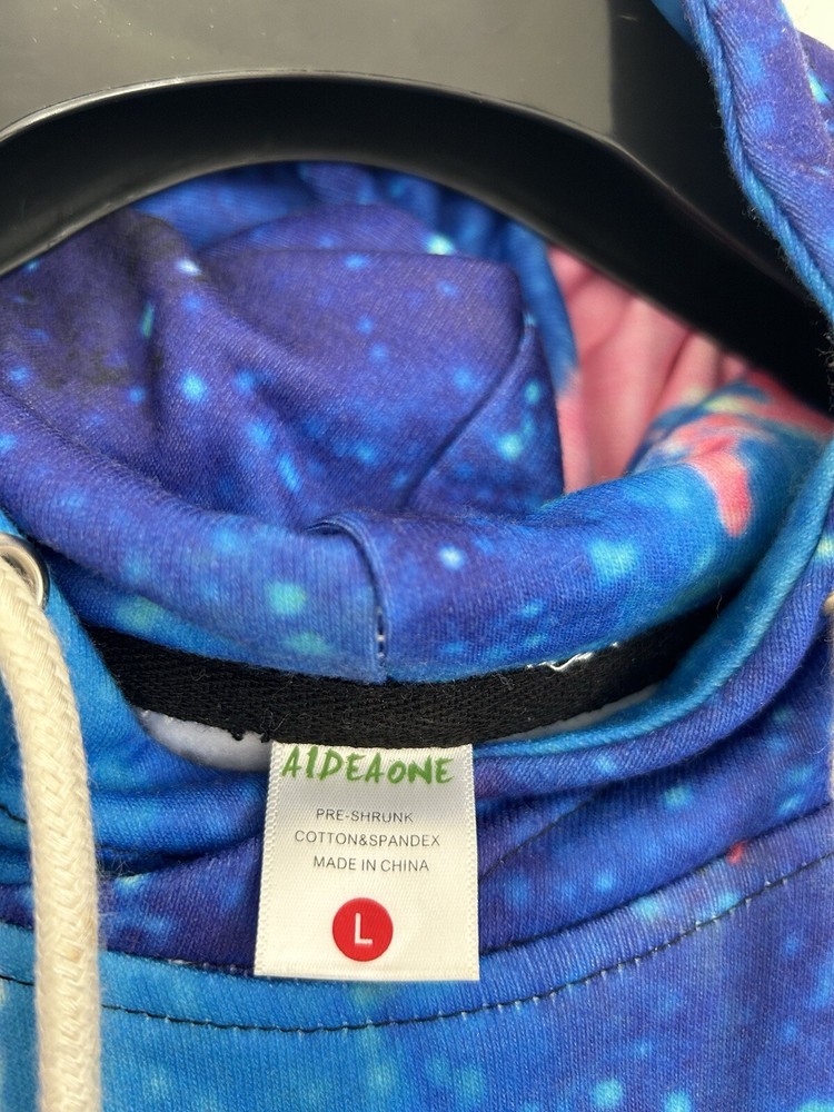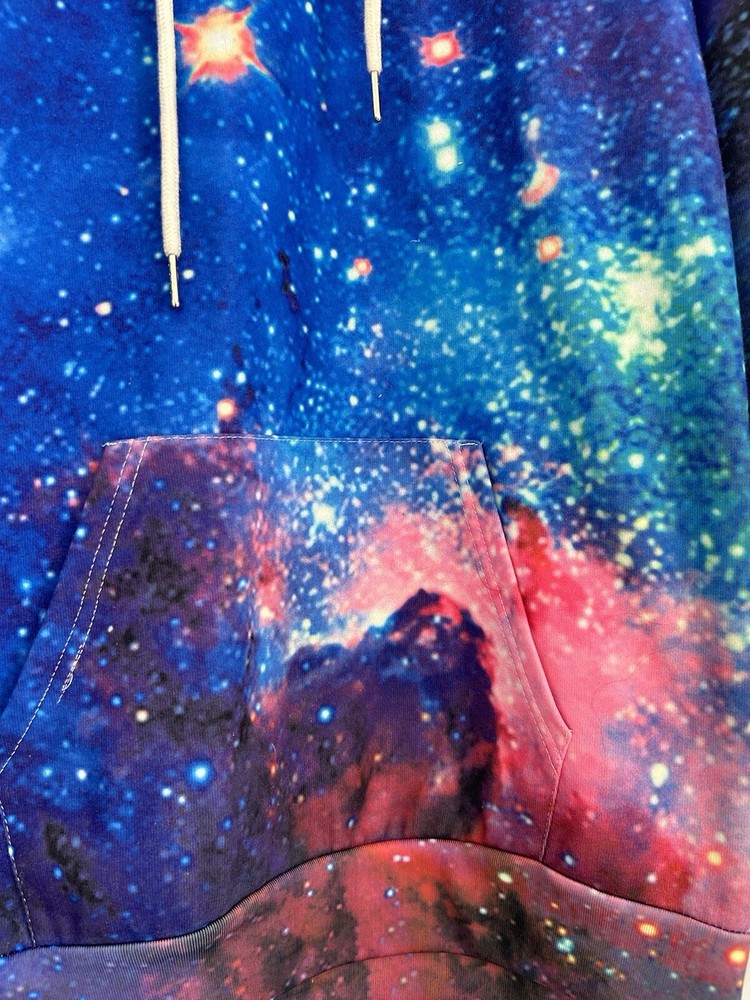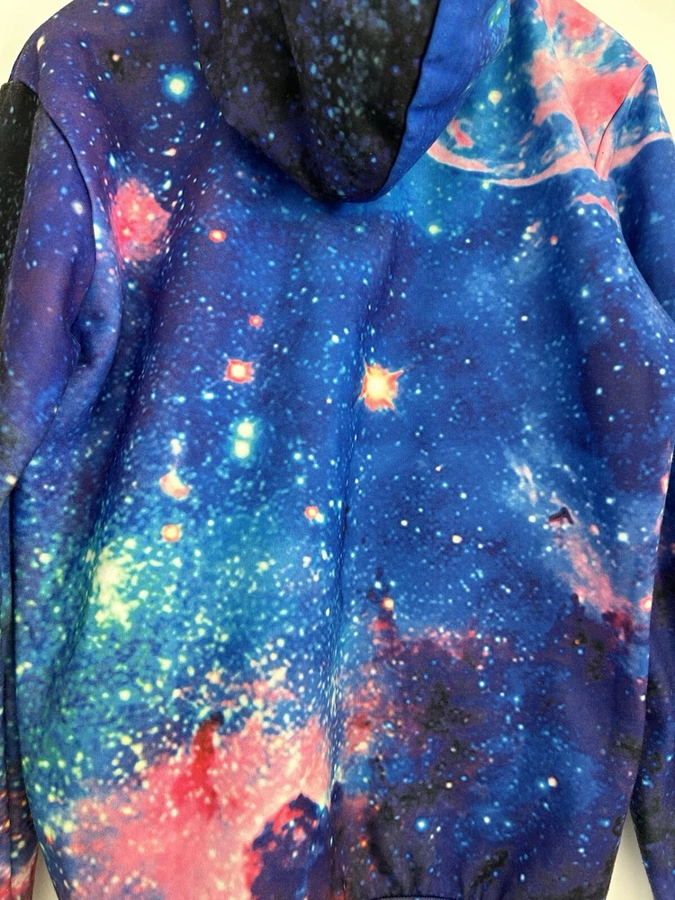 Country/Region of Manufacture: China Size: L Style: Full Zip Type: Sweatshirt Theme: Designer Features: Comfortable Department: Unisex Adults Season: Winter Vintage: No Brand: Galaxy Material: Cotton, Spandex Pattern: Galaxy Sleeve Length: Long Sleeve Size Type: Regular Color: Multicolor