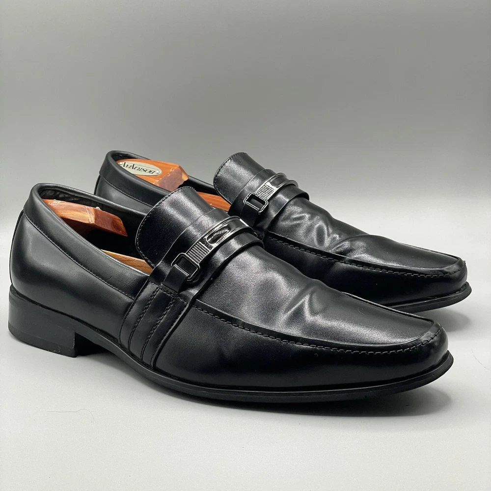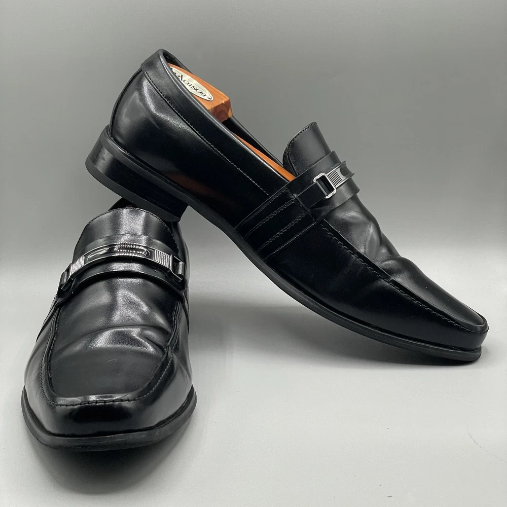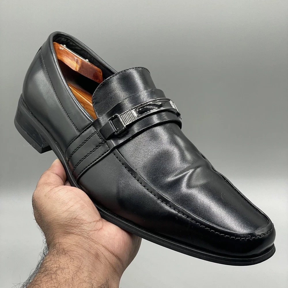 ALFANI Mens Dress Shoes Clicker Black Leather Loafer Slip-On Size 9 M. This is a Pre-Loved and Well Cleaned Pair of Used Shoes and No Major rips or Tears. Shoe box available . Your order will be carefully and safely packed and Shipped within 24 hours from a Smoke Free Home . These are raw images with no edits. You will receive the same shoes that you see in the images . I upload over 10 images from different angles for you to get a better idea about the product . If you have any questions please text me , We can chat :) Make sure to Follow my Store , I’m uploading great shoes everyday for reasonable prices .