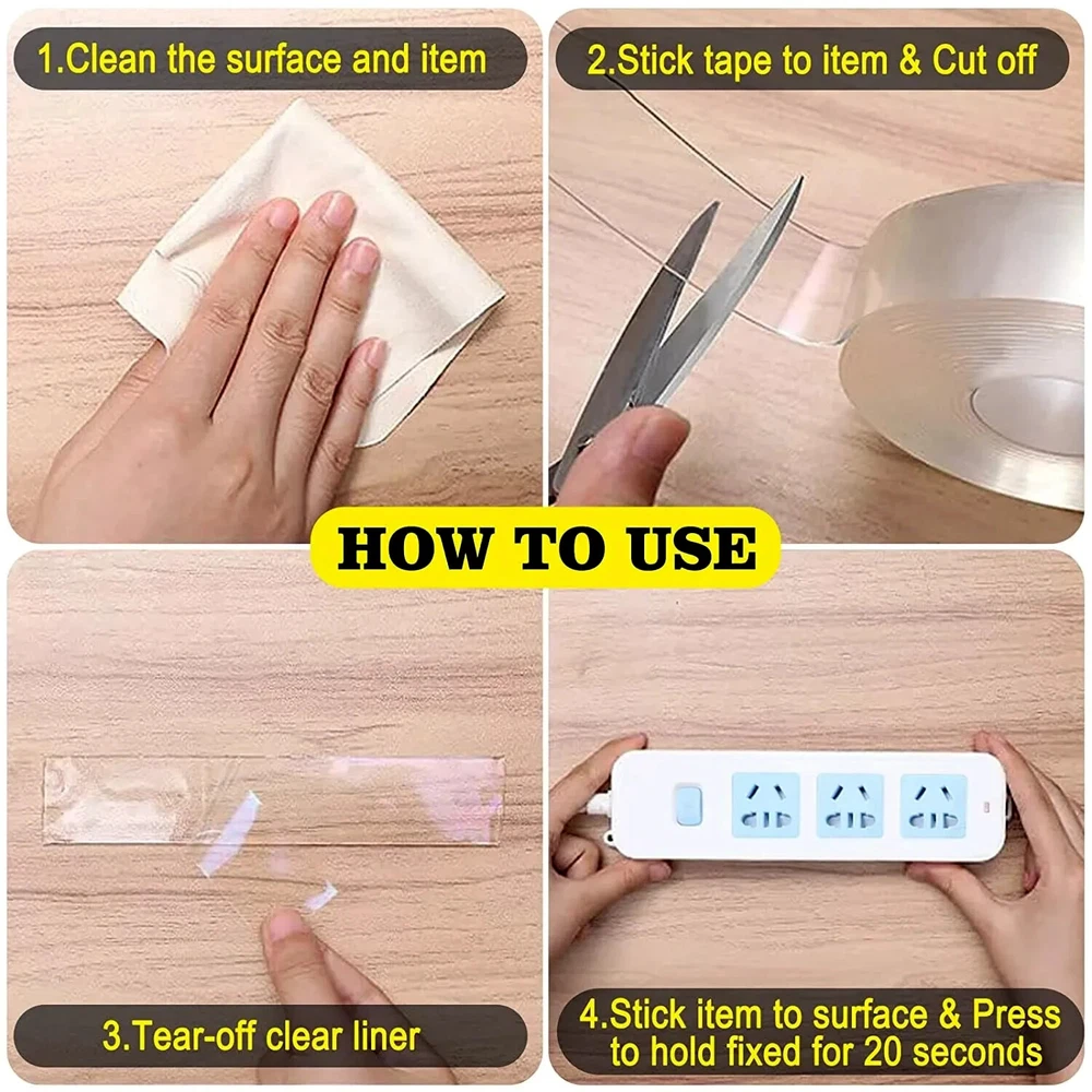 ALIEN NANO GEL TAPE Double Sided Removable Mounting Heavy Duty Adhesive Washable Double-Sided Nano Tape is Highly Transparent and Can Replace Screws, Nails, and Rivets Without Causing Damage to Floors, Glass, Wood, Marble, Tile, Metal, PVC, Jewelry, and Much More after Sticking. With the New Technology of Nanotechnology, It is Reusable, with No Residual Glue, No Damage or Trace Left after Use, and Has a Very Wide Range of Applications. Nano Tape's Unique Nano-Sized Composition Makes it Easy to Reposition and Reuse Many Times, and it Retains 90% of it's Adhesion after being Washed with Water. Nano Gel Tape has Very Good Adhesion, and Can Withstand Up to 8kg or 18lbs per Inch, and Can be Easily Removed Without Leaving Any Residue. For Heavier Items, More Double Layers will be Needed. It Can Be Easily Cut to Any Size or Length you Require. Nano Tape's Adhesive is Washable and Can be Reused More than 600 Times. Specifications: Temperature Range: 32-150 Degrees F. Color: Clear Length: 10ft / Roll Width: 2.92cm Thickness: 1mm ( Material: PU Gel)