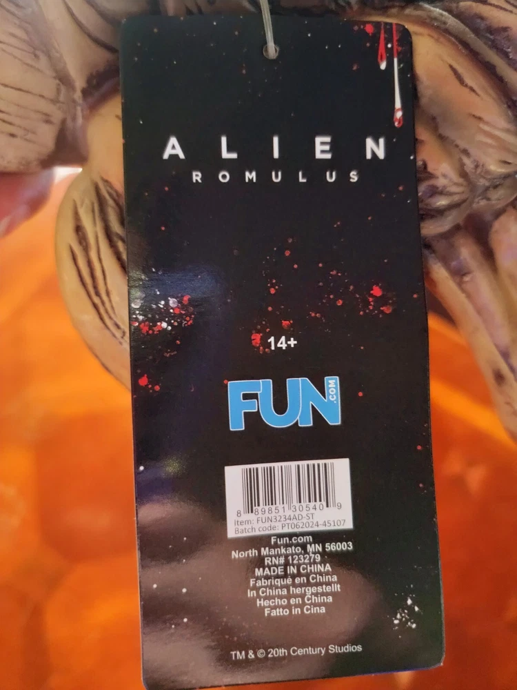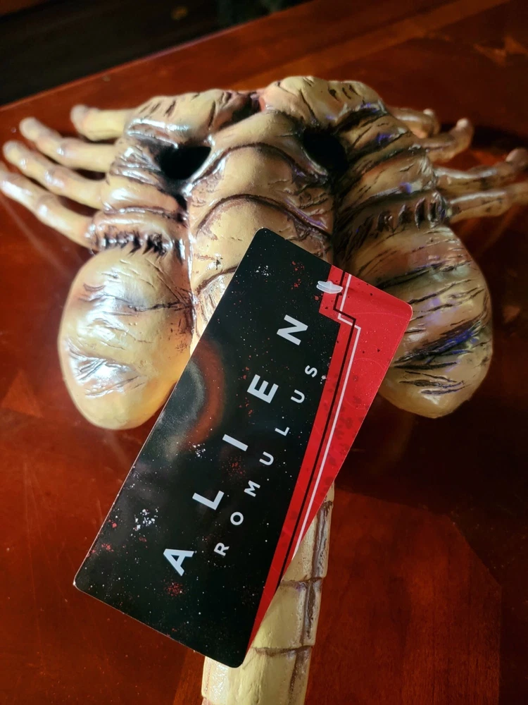 Experience the thrill of the 2024 SDCC with this exclusive ALIEN ROMULUS Face Hugger Bendable Mask. A must-have for enthusiasts, this original piece, crafted with care in the United States, is a tribute to the iconic creature from the classic film series. Its unique design and high-quality construction make it a standout addition to any collection. This collectible is not just a piece of memorabilia; it's a slice of movie history, perfect for fans and collectors alike. Add this Hall H exclusive to your repertoire and showcase your love for the extraterrestrial elements of cinema. Mask is brand new but has a scratch at tail area. Please see photo attached.