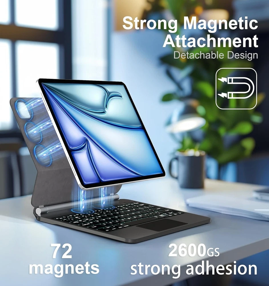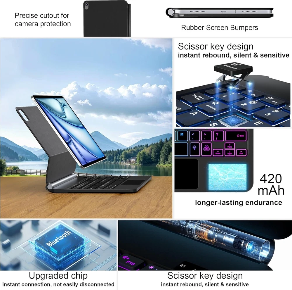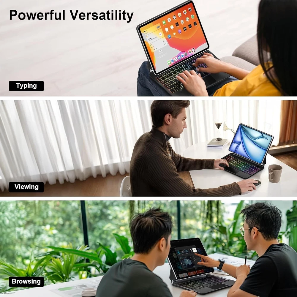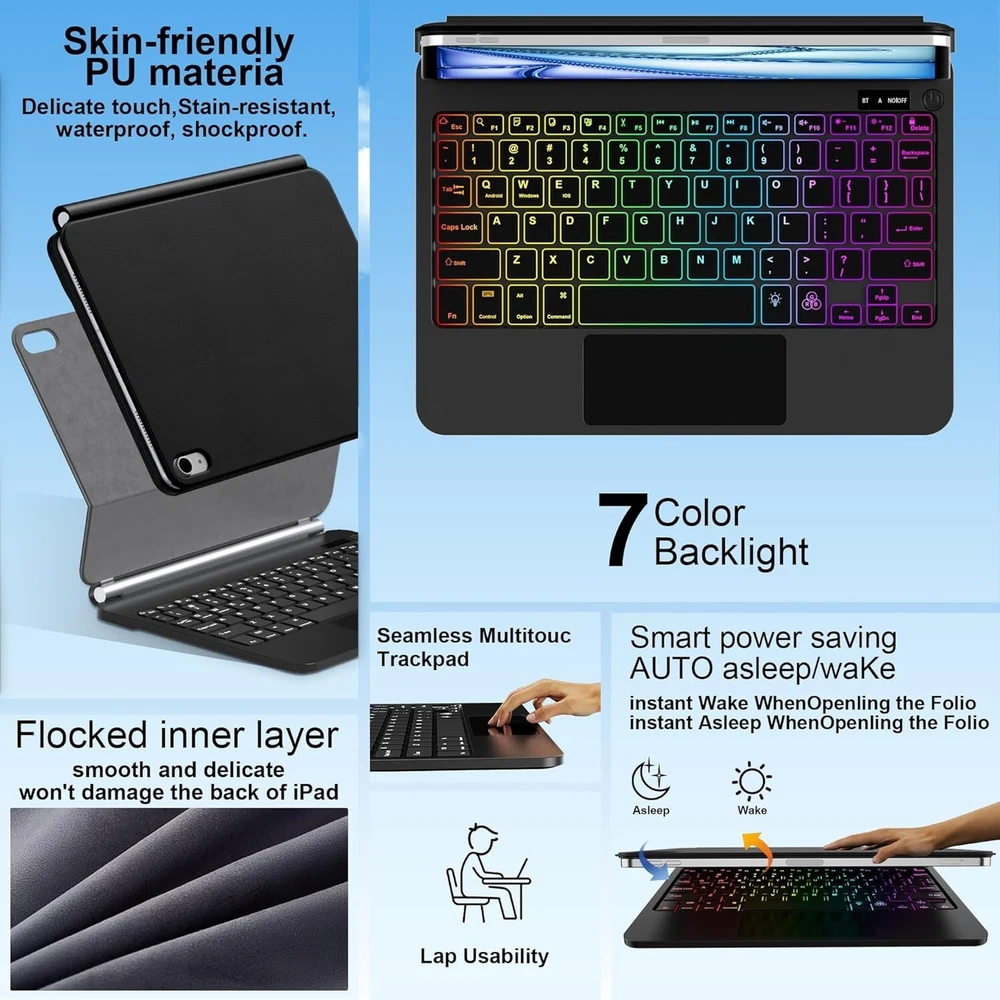Transform your iPad into a powerful and portable workstation! This ALIWLHOF Keyboard Case is compatible with: iPad Air 11" (M2, 2024) iPad Pro 11" (4th, 3rd, 2nd, 1st Generation) Key Features: Detachable Backlit Keyboard: Comfortable typing in any lighting condition. Multi-Touch Trackpad: Seamless navigation with smooth and responsive gestures. Adjustable Stand: Find the perfect viewing angle for any task. Sturdy Protection: Shields your iPad from bumps and scratches. Precise Fit: Designed specifically for your compatible iPad models. Elevate your iPad experience and boost your productivity! All sales are final. Please refer to the manufacturer's warranty for any product issues. Please double-check compatibility before purchasing. Don't wait! Order your ALIWLHOF Keyboard Case today! #ali