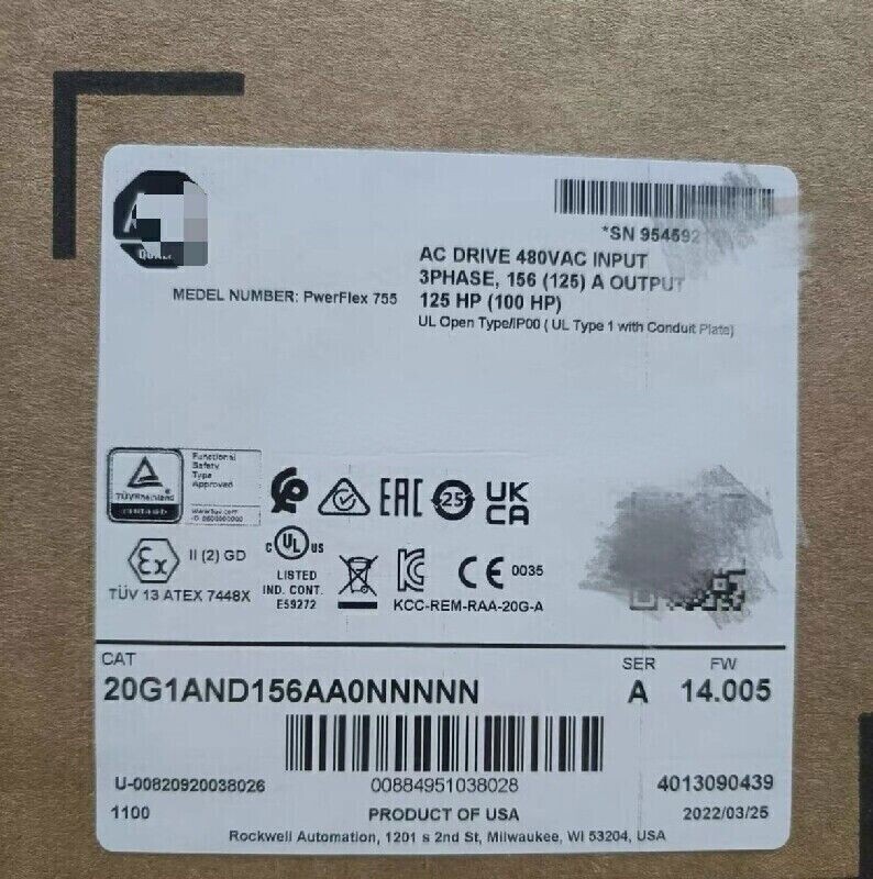 ALLEN BRADLEY 20G1AND156AA0NNNNN PowerFlex Air Cooled 755 AC Drive NEW US STOCK
