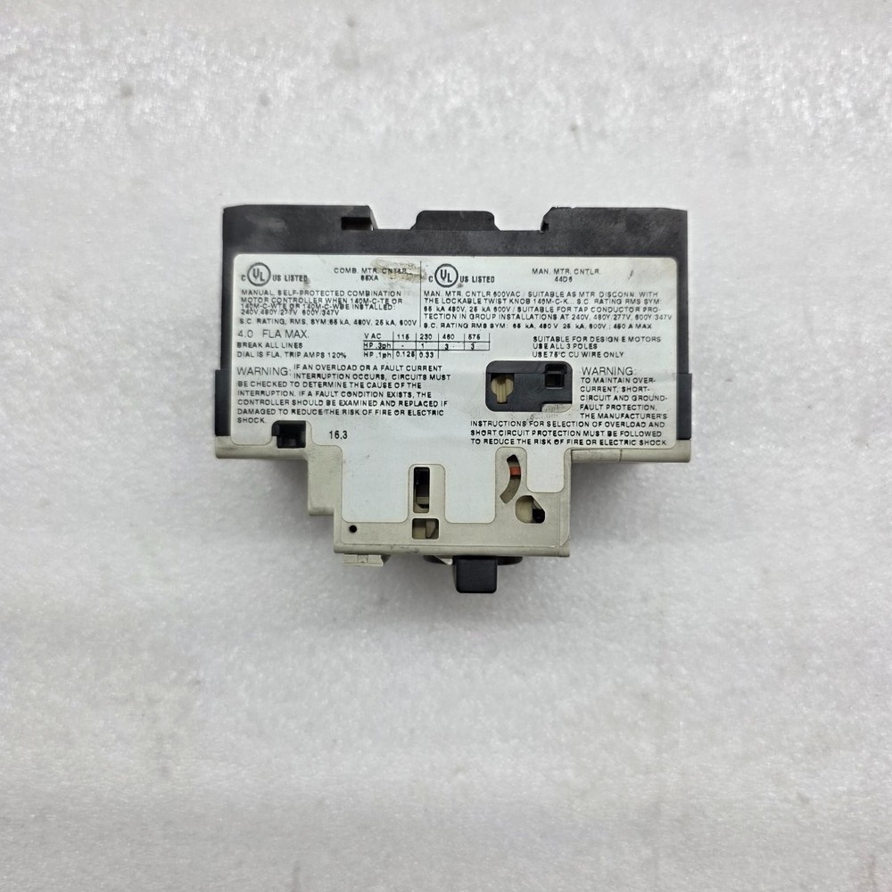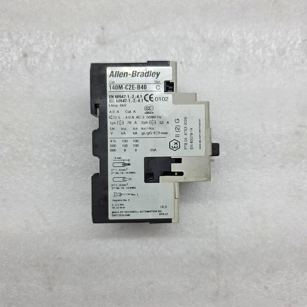 We are pleased to offer ALLEN BRADLEY CAT 140M-C2E-B40 MOTOR PROTECTOR BREAKER 2.5-4.0A Product Detail: ALLEN BRADLEY CAT 140M-C2E-B40 MOTOR PROTECTOR BREAKER 2.5-4.0A CAT NO: 140M-C2E-B40 SERIES: C RANGE: 2.5-4.0 A Shipment processing time: All orders are processed within 1-2 business days. Orders are not shipped or delivered on weekends or holidays. Shipment confirmation & Order tracking: You will receive a Shipment Confirmation email once your order has shipped containing your tracking number(s). The tracking number will be active within 24 hours. Customs, Duties and Taxes: We are not responsible for any customs and taxes applied to your order. All fees imposed during or after shipping are the responsibility of the customer (tariffs, taxes, etc.). Damages: In case of damage or lost of shipment during transit, We will investigate the matter and provide the satisfactory resolution. Returns Policy: We offer return or exchange of ordered item up to 30 days of receipt of goods in subject to certain condition. In case of damaged goods we shall offer the replacement or refund for the ordered item. If you require any more details, request you to send us the direct message through eBay for early resolution. Thanks