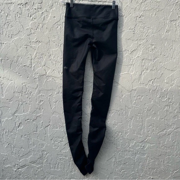 ALO YOGA Long Ruched Legging Women XS Black Very good preowned condition Length 44” Inseam 36.5” Waist 12.5” 11