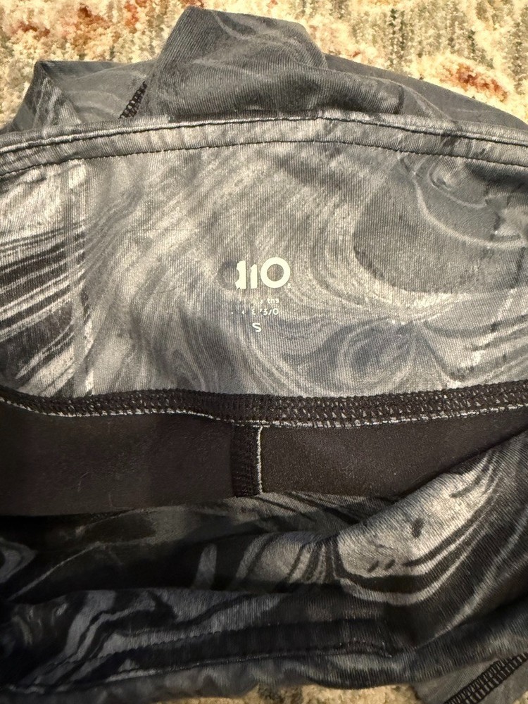 ALO Yoga Cropped Airbrush Marble Leggings, Sz Small _____________________________ Fits like - small Size on label - small _____________________________ Tracked shipping dispatch aim 2 - 3 business days Smoke free, pet friendly home _____________________________ Good preowned condition. Please see all photos for any flaws/imperfections. See all photos for more details. Colors can be difficult to judge when shopping online because of differences in lighting and device settings. Measurements taken lying flat and are approximate. Offers welcome. !! Bundle & save !! Feel free to message with any questions ****Please note that I do not accept returns. Please check my listed measurements or message me with any questions. I will only accept returns if an item is not as described.****