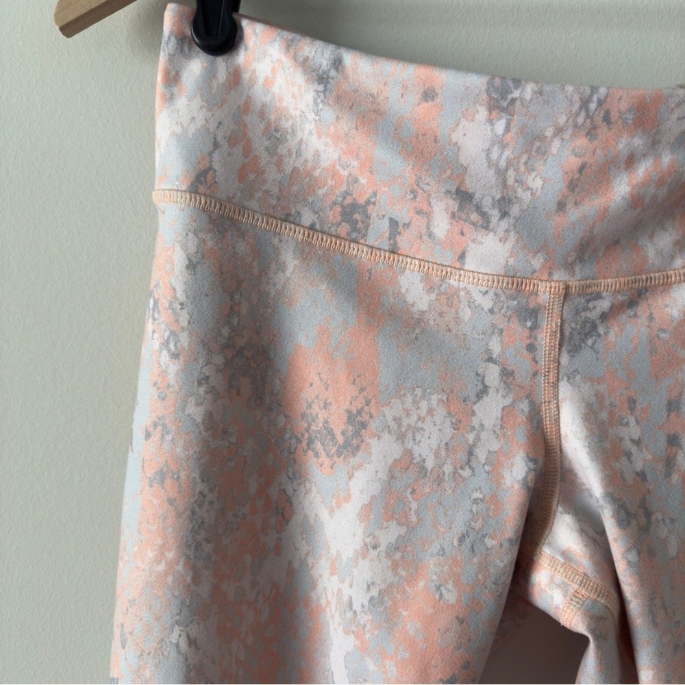 Chic Alo leggings with a peach and gray design. Ideal for yoga or casual outings. Condition: Excellent pre-owned (no flaws) Comes from a smoke-free and pet-free home. Approximate Measurements (Laying Flat): Length: 36 in Inseam: 29.5 in Rise: 9 in Waist: 15 in Leg Opening: 4 in For seller use: 12oz 2004