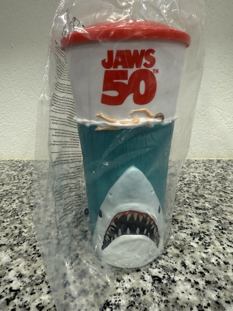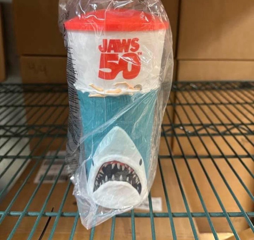 The AMC Jaws 50th Anniversary Special Edition Tumbler Cup is a perfect addition to any movie fan's collection. This 40 oz sealed tumbler cup features the iconic Jaws design, making it a must-have for fans of the classic film. With its original production and Chinese manufacture, this tumbler cup is a unique and special edition item that pays homage to the timeless horror of Jaws. Perfect for enjoying your favorite beverage in style while celebrating the 50th anniversary of this beloved movie.