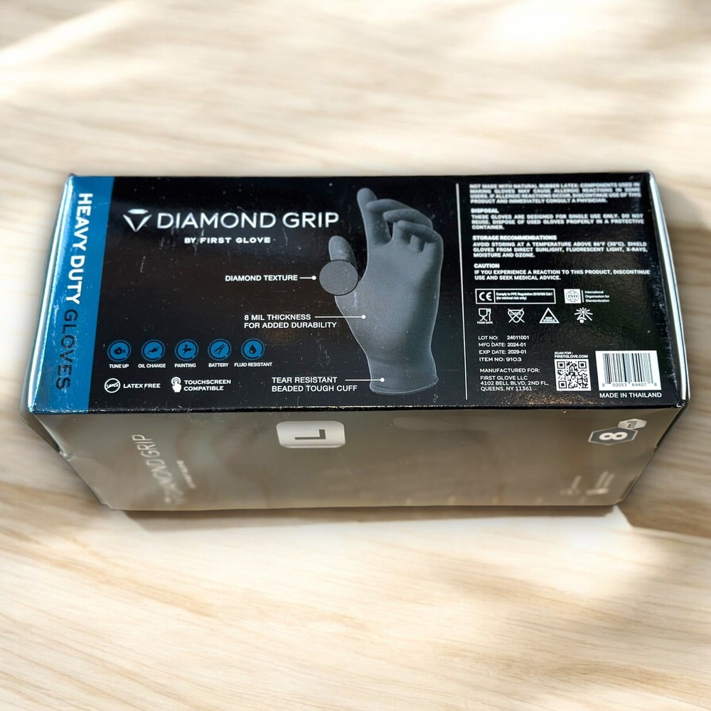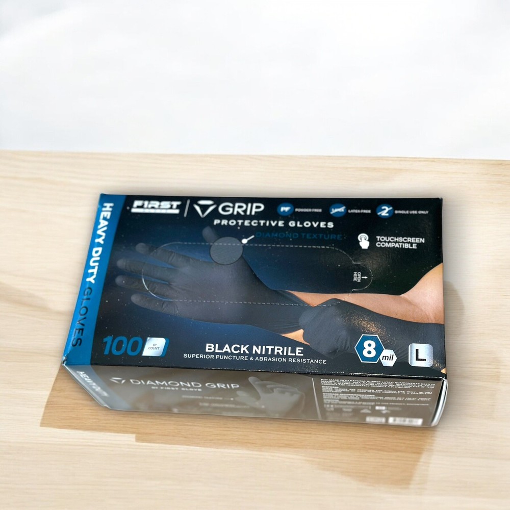 LATEX FREE: With a fit and feel rivaling that of natural rubber gloves, nitrile gloves are 3x more puncture-resistant and suitable for use by those who are allergic to latex gloves. CHEMICAL RESISTANT GLOVES: 8 mil nitrile gloves provide reliable barrier protection from commonly used cleaners, petroleum based chemicals, carburetor cleaner, and more. UNBEATABLE GRIP: 8 mil nitrile gloves feature a raised diamond texture which effectively channels away liquids provding a dependable grip on tools and small objects, even when wet. HEAVY DUTY NITRILE GLOVES: The perfect mechanic gloves- disposable and latex free, they provide more than twice as much chemical and puncture resistance than standard latex gloves, while providing a more comfortable fit and feel than heavy duty rubber gloves. THE ULTIMATE IN NITRILE PERFORMANCE: Your new favorite BBQ gloves, cooking gloves, food grade gloves, disposable gloves, powder free nitrile gloves, food gloves, everything gloves.