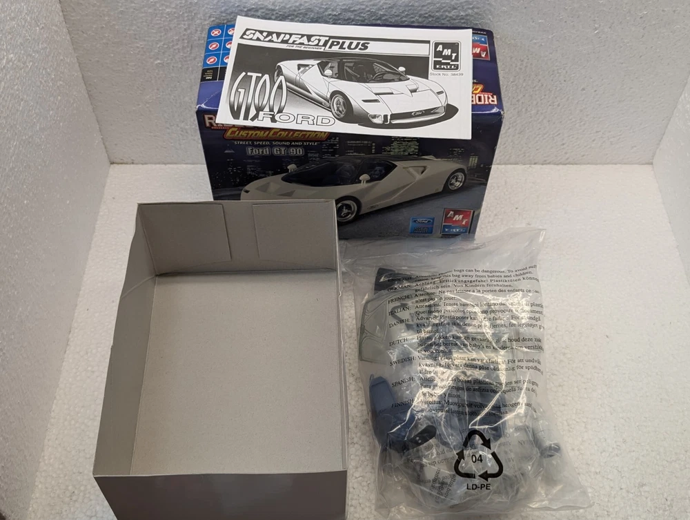 Elevate your collection with the AMT Ertl 38439 1/25 Scale Rides Magazine Ford GT 90 Plastic Model Kit. A true gem for automotive enthusiasts and modelers alike, this multi-color kit brings the iconic GT 90 to your fingertips. With its precise engineering and attention to detail, this model is a faithful representation of the classic Ford supercar. Crafted from durable plastic and manufactured in the United States, the kit is designed for hobbyists with a 10+ skill level, offering an easy assembly experience with a 2 – Easy rating. This vintage 2006 edition, featuring a single car subject, is perfect for those who appreciate the history and design of transportation-themed models. Please note, this is an unassembled kit, and the model is not painted, allowing for a personalized touch.