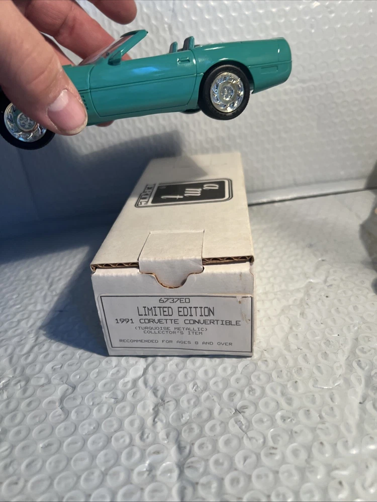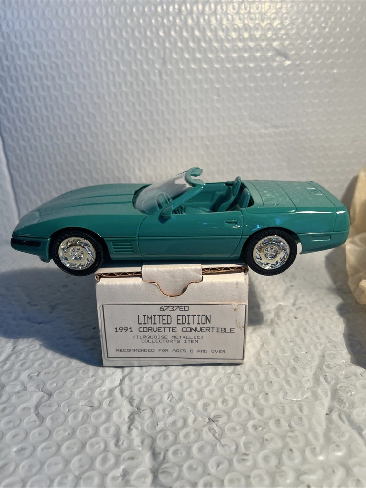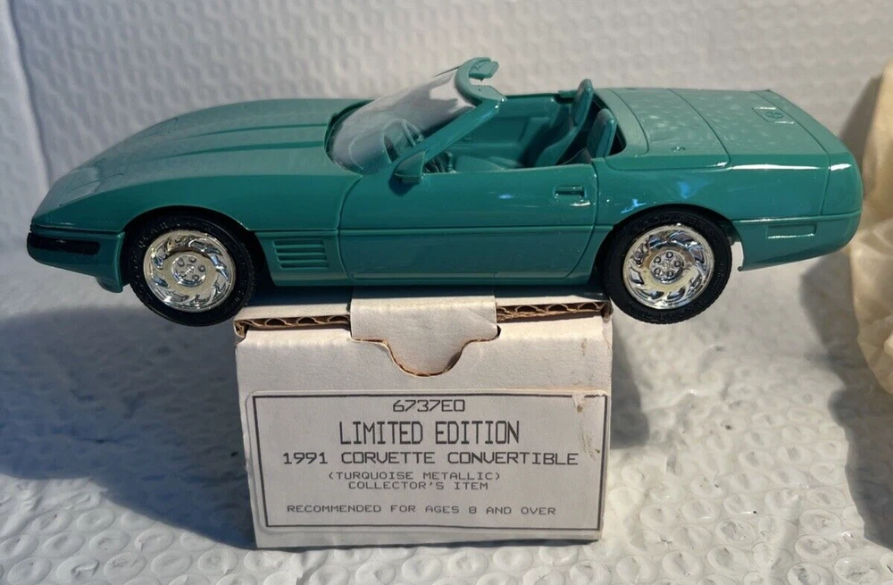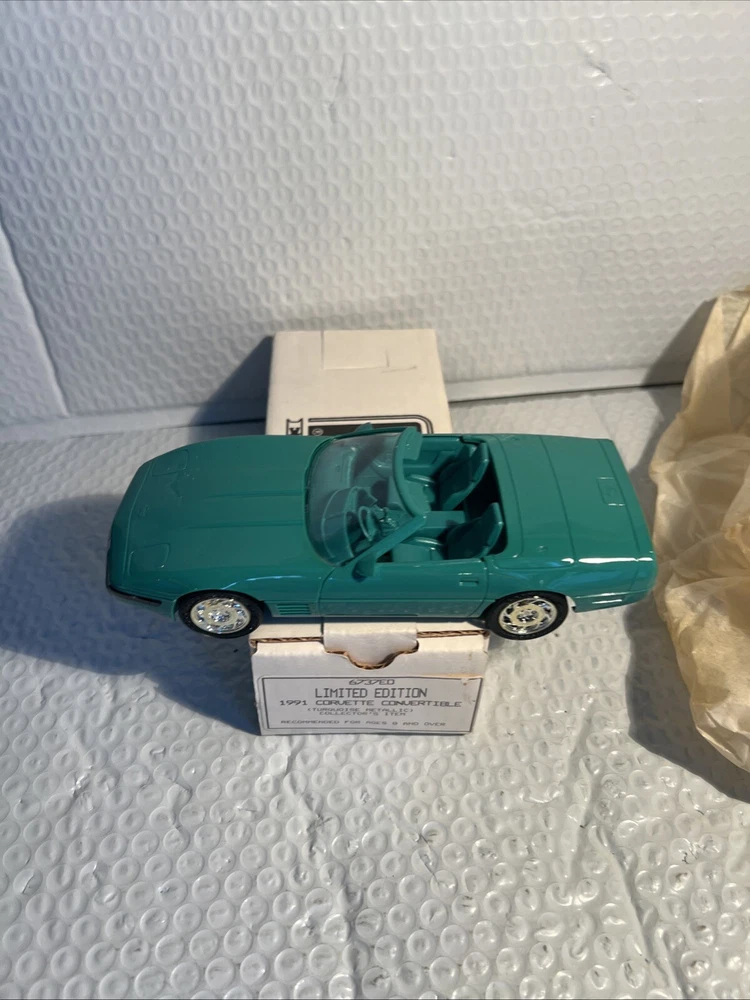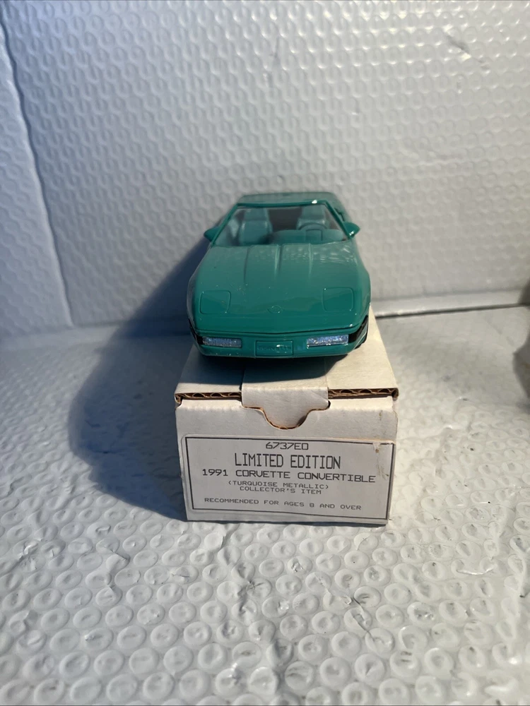 We Strive for nothing less than 5 Star FeedBack and 100% satisfied buyers! If for any reason you are not completely satisfied with your purchase before leaving feedback Please contact us with any questions or concerns. AMT/ERTL 1991 CORVETTE CONVERTIBLE LIMITED EDITION TURQUOISE PROMO NEW IN BOX Condition: BRAND NEW condition see photos original . If there is anything wrong with the item or not as described, please contact me as soon as possible. Item is for sale as it came to us. All items pictured are included in auction. No other accessories are included in auction. please read our descriptions and check our pictures for the best item explanation before purchase. Please read the item description and look at the photos carefully before bidding We will describe the item to the best of our ability. PLEASE ASK QUESTIONS PRIOR TO BIDDING. WE WILL BE MORE THAN HAPPY TO ANSWER QUESTIONS THE BEST WE CAN Buyer assumes responsibility for all shipping and processing charges. THIS AUCTION IS FOR 1 (one) item unless otherwise specified. Bchanes27 reserves the right to end any auction at anytime! All of our items will typically ship within 1 Business day After payment is confirmed. WE ONLY ACCEPT PAYMENT THROUGH PAYPAL AND ONLY SHIP TO U.S. ADDRESSES Except Hawaii, Alaska and Puerto Rico. Be sure to check out our other items and save us as a favorite seller! Keep an eye on our auctions, you never know what we might have! We appreciate you looking at our items, Good luck and Happy Bidding