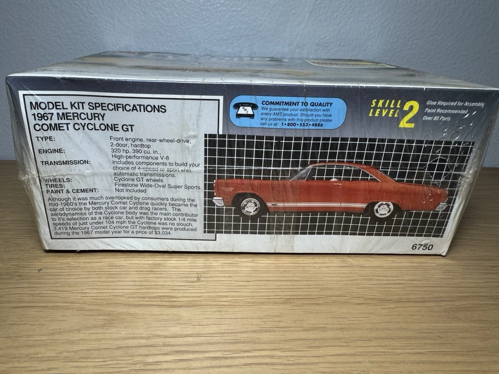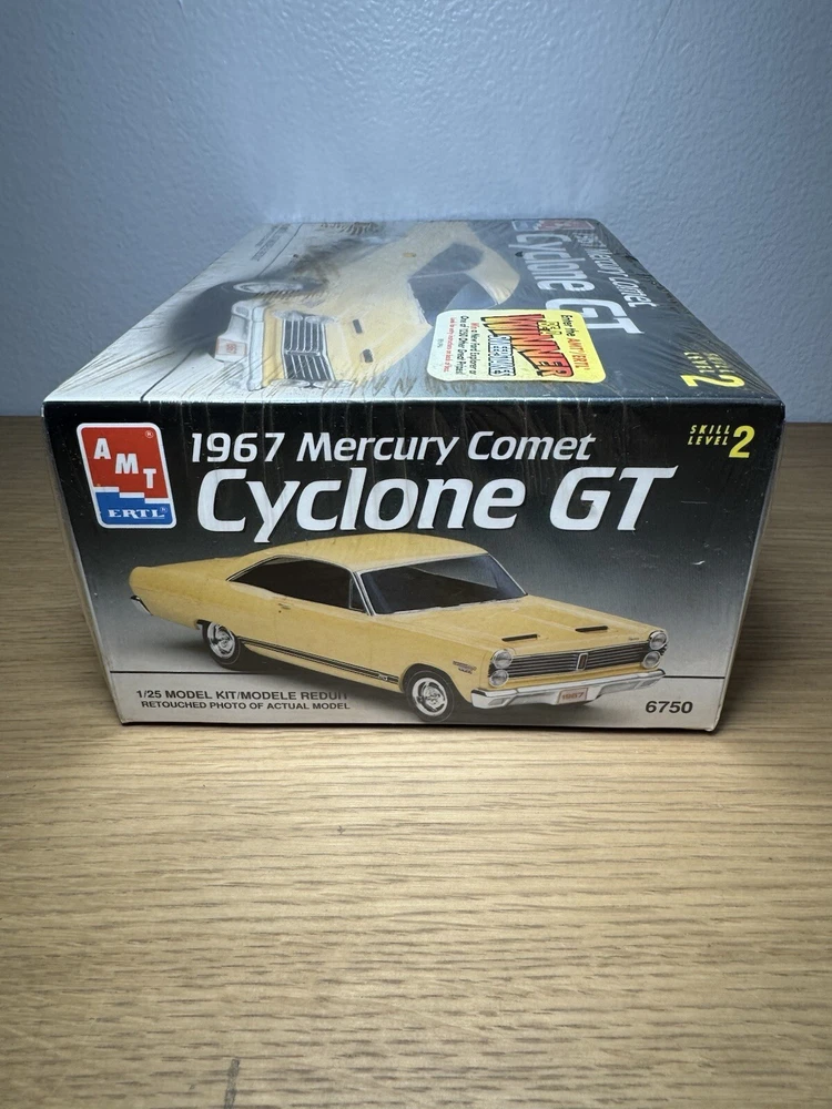 Discover the classic charm of the AMT Ertl 1967 Mercury Comet Cyclone GT model kit, a must-have for any automotive enthusiast or model collector. This 1:25 scale replica captures the essence of the era with its authentic design and attention to detail, offering a rewarding build for hobbyists of skill level 2 and up. Crafted from high-quality plastic and manufactured in the United States in 1993, this vintage model kit remains unopened, ensuring all parts are complete and ready for assembly. Whether you're looking to relive the golden days of muscle cars or expand your model collection, this sealed kit promises a delightful modeling experience.