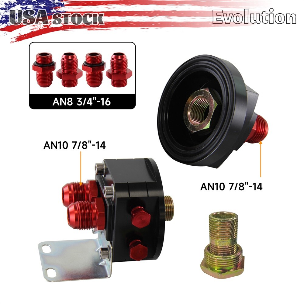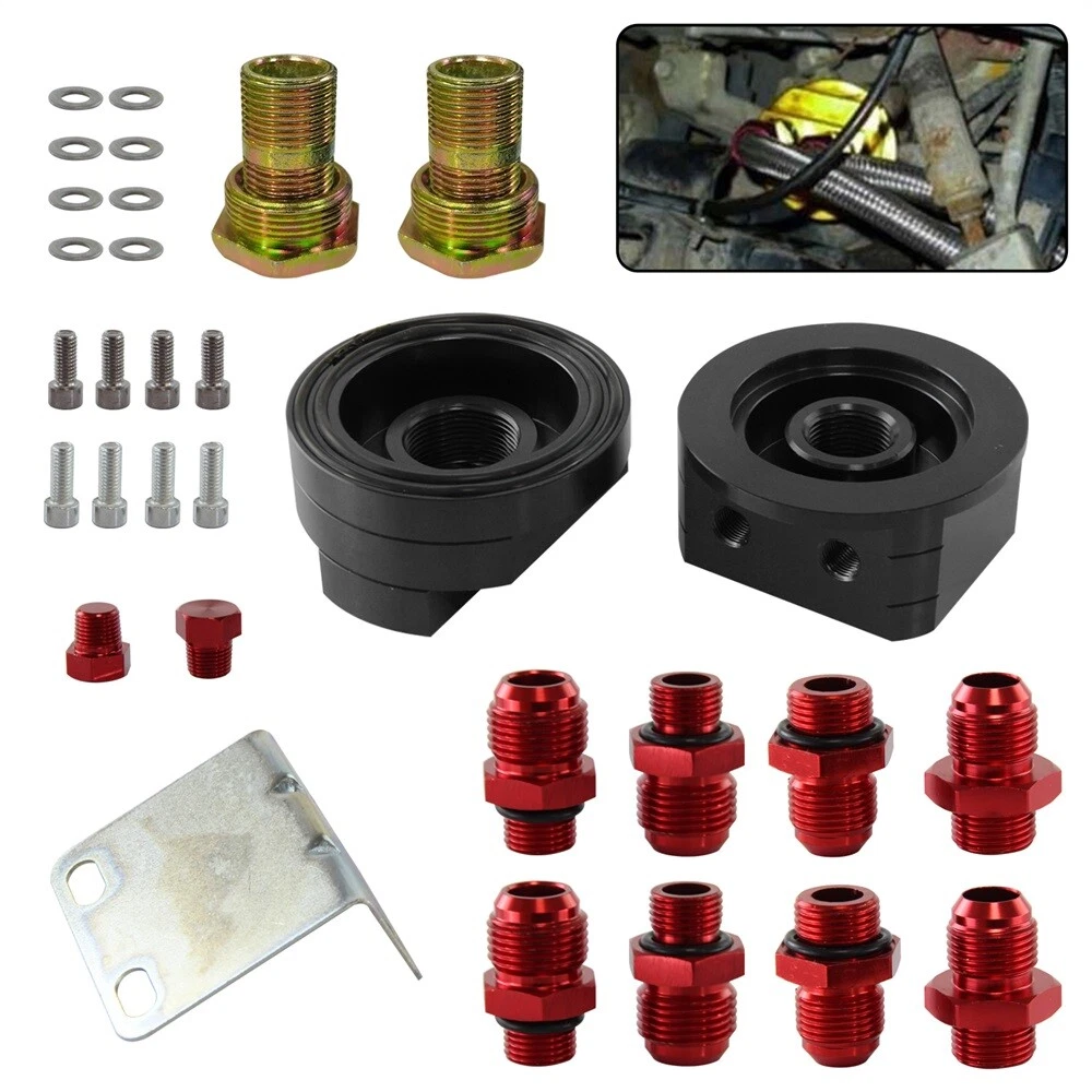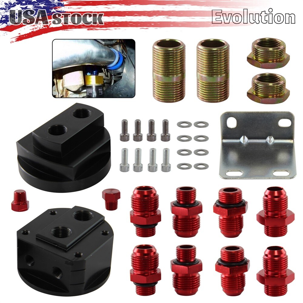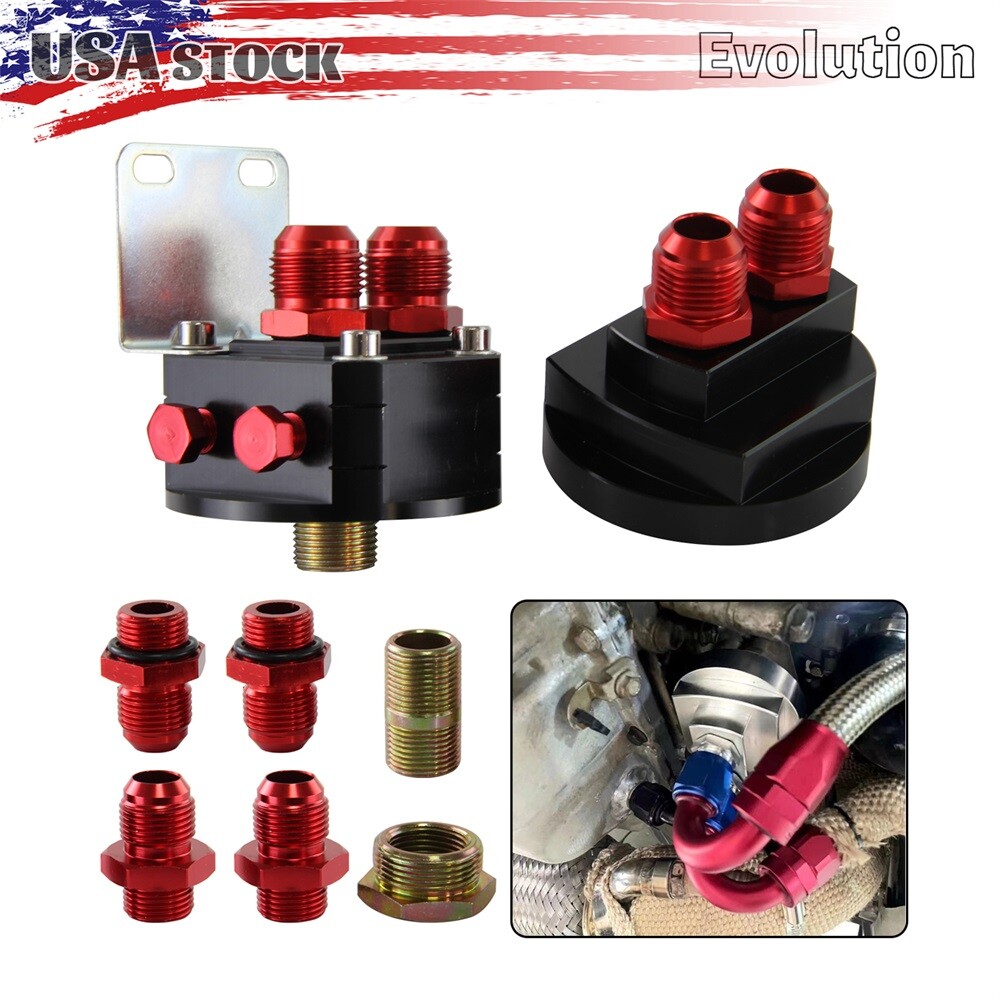 AN10 Oil Filter Relocation Kit with Universal Cooler Sandwich Plate Adapter in Black