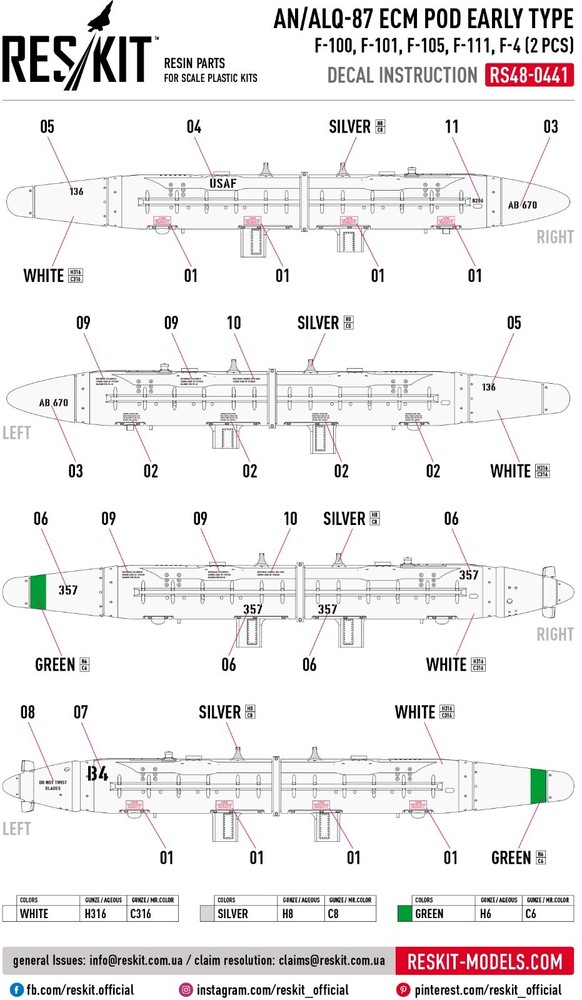 $ 12.01AN/ALQ-87 ECM Pods Late (2) F-4 F-111 AC-130 1/48 3D ResKit RS48-0442