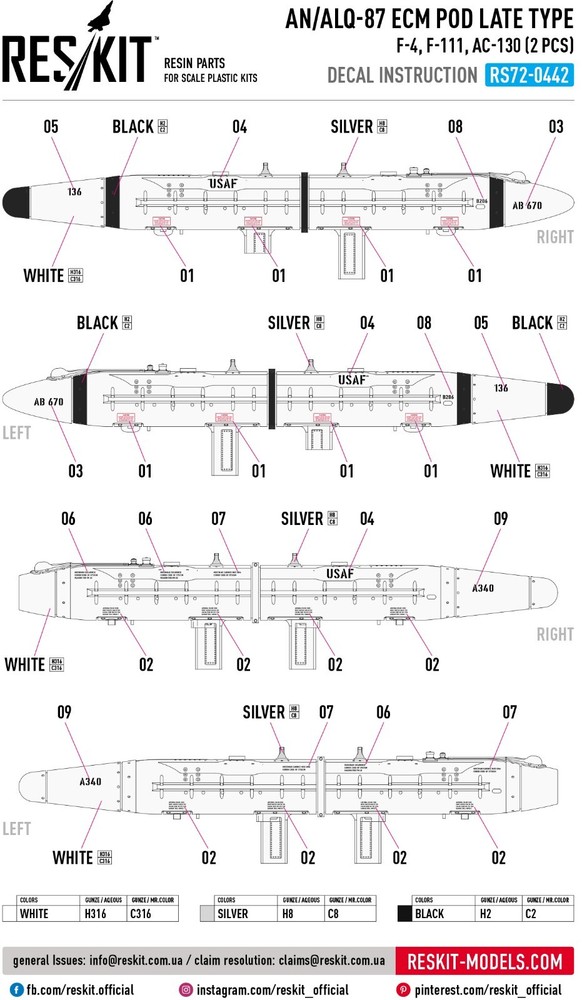 AN/ALQ-87 ECM Pods Late (2) F-4 F-111 AC-130 1/48 3D ResKit RS48-0442