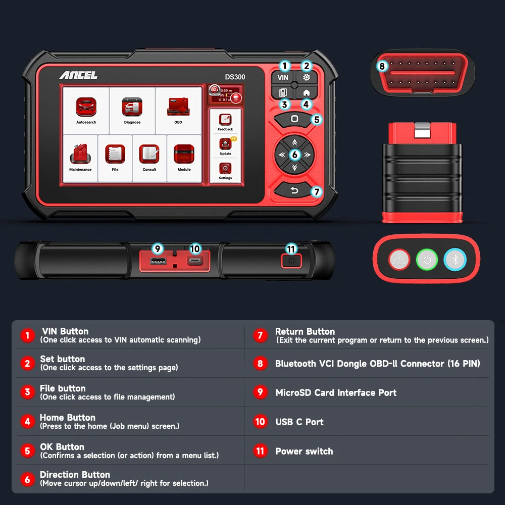 ANCEL DS300 Bidirectional Scan Tool, Wireless OBD2 Scanner Diagnostic Tool with FCA Autoauth/Active Test/All System Diagnose ! 28+ Resets ! 3-Year Update ! Android 10.0 with Wireless Bluetooth Dongle ! 🔥🔥【Top-Notch Vehicle Diagnosis】Elevate vehicle diagnosis to the next level with the ANCEL DS300 Scanner. Enjoy advanced features such as ✅Advanced Bidirectional Control 28+ Service Resets ✅Full OBD2 Function ✅All System Diagnostic ✅10,000+ Car&150+Brand Coverage ✅Wireless VCI ✅Online Customer Service ✅3-YEAR Free Update. 🔥🔥Hardware is equally cutting-edge: ✅6300 mAh/3.8V ✅7' HD Screen & Buttom ✅4-core 1.5Ghz ANCEL DS300 Main Features One-Click WIFI Update – 3-Year Free Update Online Advanced Bi-directional Control Test ,Actuation test With Wireless Bluetooth Dongle VCI , Bluetooth Connection ,easy to know your car 28 Reset Functions for Immediate Maintenance Full Systems Diagnoses for Comprehensive Monitoring 10 OBD2 Functions for Success Smog Check 2G RAM/32G ROM Memory Spaces 4-core 1.5Ghz(quicker operation Fast Android 10.0 Operating System 7.0-inch Large Touch Screen Display 6000mAh Rechargeable Battery Automatic Health Diagnostic Report Data Stream Record and Playback Diagnostic Feedback Data Record and Replay Keypad & Touchscreen Operation Real-time Vehicle Battery Monitoring and Graphing. Multilingual Support: English, French, German, Spanish, Portuguese, Russian, Japanese, Italiam.... 7*24 hours customer service online support service Efficient Bidirectional Control & Active Test Bi-directional Control” is practical for finding out what's wrong with a car. The ANCEL DS300 bi-directional scan tool can actuate solenoids and actuators for a-ctive test and send commands to systems/components to test their working status, without using the vehicle controls or tearing the vehicle into parts. For examples: • Injector Buzz Test • Valve Tests • Acceleration Device Test • A/C Compressor Activation • Switch Cylinder Correction On/Off • Turn the Radiator Fan On/Off • Modulate Throttle On/Off • Widely applied to Windows, Doors, Sunroof, Headlamps, etc ECU coding ECU coding serves as a high-tier function for high-level vehicle models, which can enhance vehicle comfortability but also increase profits for workshops. Many believe that only manufacturers can modify the codes and activate the “hidden” features for the cars. But now the updated ANCEL DS300 auto scanner also loads the same functions and you just need to upgrade the software in APK without any cost. ECU Coding: Compatible with BMW, with Audi, with VW, with Skoda, etc. Matching: Rematch the repaired/changed component control modules. Personalization: Activate high-end functions: activating daytime running lights / changing the brightness of the dashboard / adjusting interior lights / automatically activating the rear-view camera / activating the acoustic warning signal / adjusting the level of the side mirrors, etc. Disable some unneeded functions: such as deactivating the auto start-stop / changing the chimes / deactivating injector buzz sounds / disabling seat-belt warning / and more; Note 1) Online Coding is not available. 2) Coding function varies by vehicle mode ANCEL DS300 Support Diagnose Car Full System. This option allows you to detect whether the car full system parameters are normal or not. It mainly including Drive System, Chassis System, Body System, Electrical system. 1.PCM(Drive System): Engine, Transmission, Transfer case, Electrical Machine Electronics, Fuel Pump, Gear, and more... 2. Chassis System: Accumulator Management Electronics, Steering, Integrated Chassis Management, Tyre Pressure Control, Active Cruise Control, Braking System, Suspension, TPMS and more... 3. BCM(Body System): SRS Airbag, Camera, Audio Radio, Gateway, Cluster Dashboard, Rain Sensors, Charging Interface Module, Parking Assistance, Power Control Unit, Touch box, Light, Battery Charging System, Head up Display, Wipe Control System, Roof, Seat & Door Motor system, Immobilizer, ABS ESP system, Air Condition.Electric Windows, Telephone, and more... 4. Electrical System Including Centralized control system for engine and power transmission, Chassis integrated control and safety system,Intelligent body electronic system,Communication and information / entertainment system. Read and erase codes for all available systems, turn off MIL light (Indicator light), display live data in text, graph & analog for easy data review. 28 Kinds of Reset Functions 1. Oil Lamp Reset Service: Allows you to perform reset for a new calculation of Engine Oil Life system once changed the oil. 2. EPB service: It is important in the maintenance of electronic braking system's safety and efficiency. 3. BAT battery service(BMS): Allows the diagnostic tool to evaluate the battery charge state, monitor the close-circuit current, register the battery replacement, and activate the rest state of the vehicle. 4. DPF service: Specially works for Diesel Particulate Filter system with DPF regeneration, DPF component replacement teach-in and DPF teach-in after replacing the engine control unit. 5. SAS service: Helps clear the fault steering angle sensor memories and plays an important role in the steering angle sensor calibration. 6. IMMO Key Programming(Anti-theft Matching): The unique car key programming and read pin code function, it is mainly used to disable the lost vehicle keys and program a new replacement key fob. 7. ABS Bleeding: ABS brake bleeding to get a firm brake pad after air exhaustion after repair ABS pump system. 8. Fuel Injector Coding: Leaking injectors and some dead injectors can be missed even when an injector is disabled. Otherproblems with the ignition system and mechanical components also may not show an rpm loss when aninjector is turned off. 9. TPMS service: Makes sense in displaying sensor IDs from the vehicle's , inputting TPMS sensor replacement IDs and testing sensors. 10. Throttle Adaptation: The th