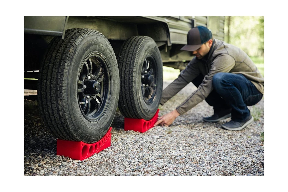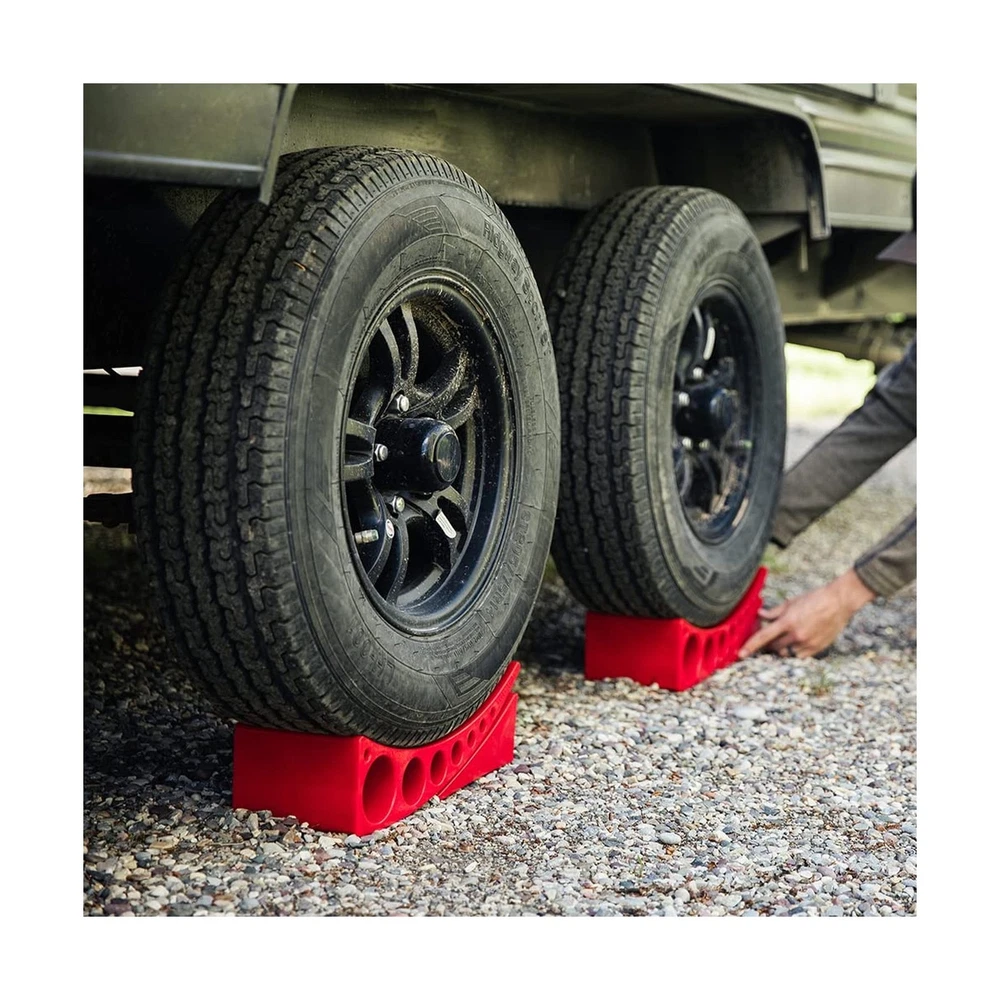 ANDERSEN HITCHES | 3604 2-Pack Camper Leveler Blocks w/Rubber mats and Sturdy Bag w/Double Handles | Camper Leveling System | Outdoor Camping Levels Description Features: [MUST HAVE FOR CAMPERS OR FIFTH WHEEL]: Works great on trailers up to 30,000 lbs and with tires up to 32" diameter. The Andersen Camper Leveler provides 'dead-on' leveling at any increment from 1/2" to 4" - no other leveler is this precise - or this easy to use! [RUBBER GRIP MATS INCLUDED]: Rubber grip mats help the levelers chock system to grip the ground to prevent the trailer or RVs from sliding when backing onto the camper leveler. [FAST & PRECISE LEVELING]: Avoid the hassle of setting up your camper with travel trailer leveling blocks or wooden planks under your tires. Make trailer leveling a fast and precise task. Simply level your trailer any increment between 1/2" and 4" in less than 5 minutes. [BUILT IN USA]: As a US-based company, we are here to create premier towing products that improve the journey from point A to point B. Thats why we dont just make hitches for trailers, we make hitches for people like you--the recreational travelers, hard workers, and avid sportsmen. [LIFETIME WARRANTY]: Andersen Hitches Plastic Towing Accessories are built to last. If you have any trouble for any reason at all, we will refund or replace this item for you. We hope that you enjoy using our products! These products are 100% made in the USA and come with a LIFETIME WARRANTY! Product Details: Load Capacity: 30000 pound Maximum Lifting Height: 4 Inches Brand: Andersen Hitches Color: Red Manufacturer: Andersen Hitches Load Capacity: ‎30000 pound Maximum Lifting Height: ‎4 Inches Brand: ‎Andersen Hitches Color: ‎Red Manufacturer: ‎Andersen Hitches UPC: ‎871155009886 Model: ‎Camper Leveler Item Weight: ‎13.67 pounds Package Dimensions: ‎15.39 x 9.13 x 6.85 inches Item model number: ‎3604-RTBA Is Discontinued By Manufacturer: ‎No Manufacturer Part Number: ‎34 Date First Available: October 27, 2017 Delivery We Do Not Ship Outside of the Continental US. Return Policy All items qualify for returns within 30 days of receipt. Seller is responsible for return shipping on any item that is not damaged. Feedback We take our reputation seriously, we buy and sell online, so we understand the value of trust. If you are unsatisfied with your order, please contact us and we will work with you to resolve it to your satisfaction.