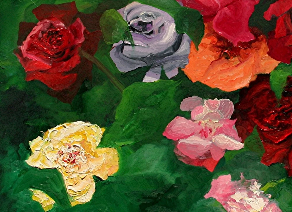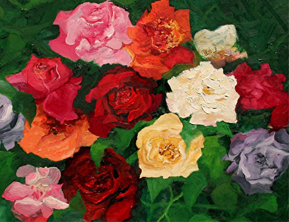 Experience the serene beauty of Andre Dluhos's "Entwined," an original oil painting that captures the delicate balance of life in a still life composition. This large piece, measuring 30 inches in height and 40 inches in width, is meticulously painted on stretched canvas, bringing a touch of nature's grace to any space. With its exquisite portrayal of a rose bouquet, the artwork embodies the impressionistic charm and contemporary artistry that Dluhos is celebrated for. "Entwined" is a one-of-a-kind creation, complete with a Certificate of Authenticity, ensuring its uniqueness and value as a collector's item. The painting is signed by the artist, dated 2023, and is ready to be framed, allowing the new owner to immediately enjoy its splendor. Dluhos's skillful use of color and light reflects his deep connection to the Western cultural heritage, making this piece not just a visual delight but a testament to the artist's personal touch. Original oil painting titled " Entwined " SIZE 30" x 40" COA issued and included. Painting is on stretched canvas, fully varnished and ready to frame. Signed, dated, and titled on back of painting. Schooled in the fine art academies of Europe, and nearly 70 years of professional artist experience, Andre presents a bold, palette knife style with heavy texture and a decidedly modern take on the impressionist style. Buy directly from the studio and invest in a timeless piece of fine art. Collectors from all over the world own Andre's artworks. From corporate and public spaces, to private collections and home decor, Andre's work is renowned globally. Whether for yourself or as a present for someone special, a painting is a timeless gift that will serve as a memory for a lifetime. jan 24, 2025 .