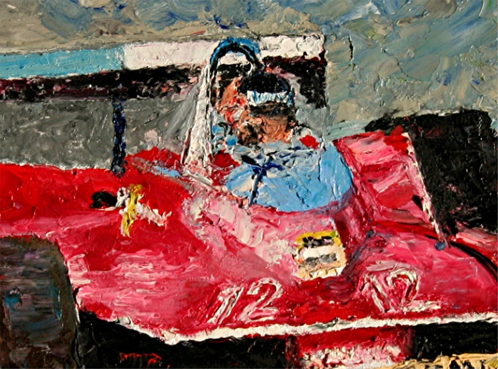Capturing the essence of speed and nostalgia, Andre Dluhos's original oil painting, "Villeneuve," is a homage to the vintage race car era of Formula 1. Measuring an impressive 18 inches in height and 24 inches in width, this large canvas is a one-of-a-kind piece that brings the thrill of the racetrack to your collection. The artwork is wonderfully painted on canvas with the highest quality oil paints, ensuring lasting vibrancy and texture. This piece is steeped in the culture of Western art, embodying a contemporary style that nods to both realism and impressionism. It is a proud representation of American craftsmanship, signed by the artist himself, and comes with a Certificate of Authenticity to assure its originality. "Villeneuve" is unframed, allowing the new owner the freedom to choose the perfect frame that complements their space. Original oil painting titled " Villeneuve " SIZE 18" x 24" COA issued and included. Painting is on stretched canvas, fully varnished and ready to frame. Signed, dated, and titled on back of painting. Schooled in the fine art academies of Europe, and nearly 70 years of professional artist experience, Andre presents a bold, palette knife style with heavy texture and a decidedly modern take on the impressionist style. Buy directly from the studio and invest in a timeless piece of fine art. Collectors from all over the world own Andre's artworks. From corporate and public spaces, to private collections and home decor, Andre's work is renowned globally. Whether for yourself or as a present for someone special, a painting is a timeless gift that will serve as a memory for a lifetime. jan 31, 2025 .