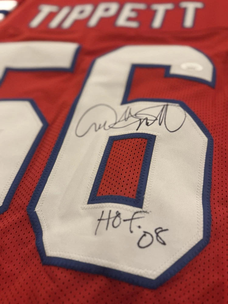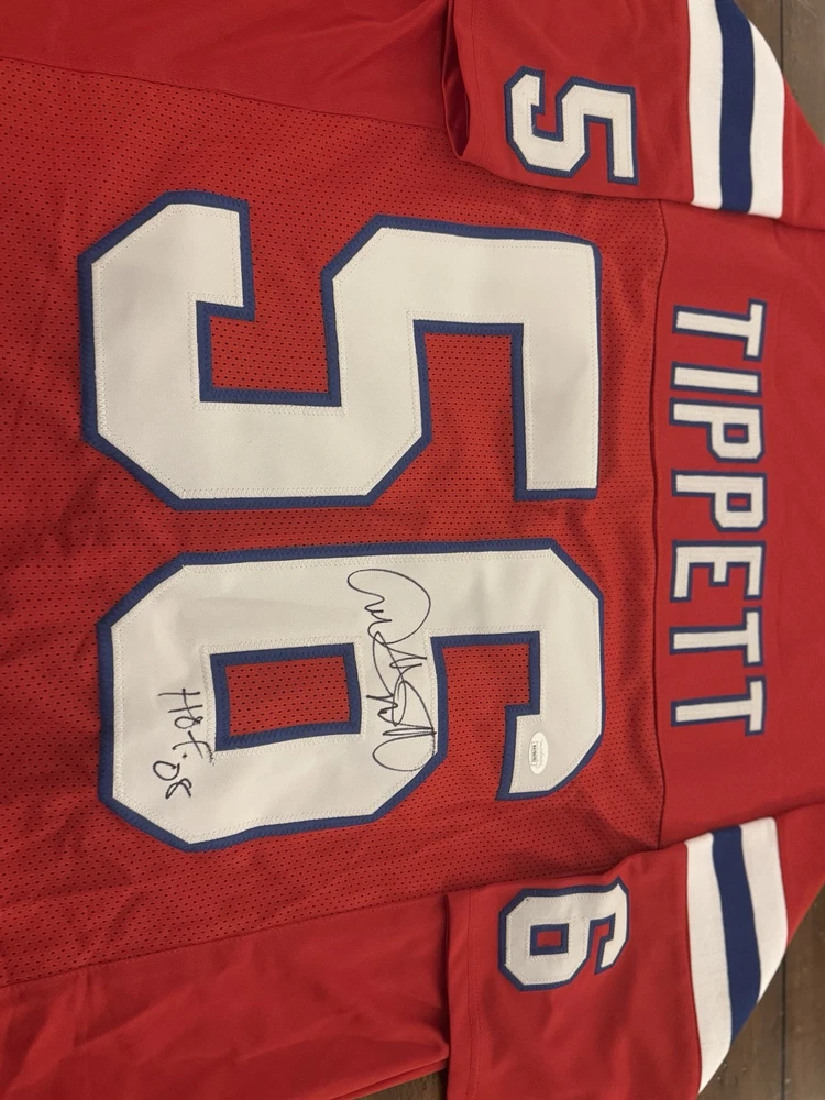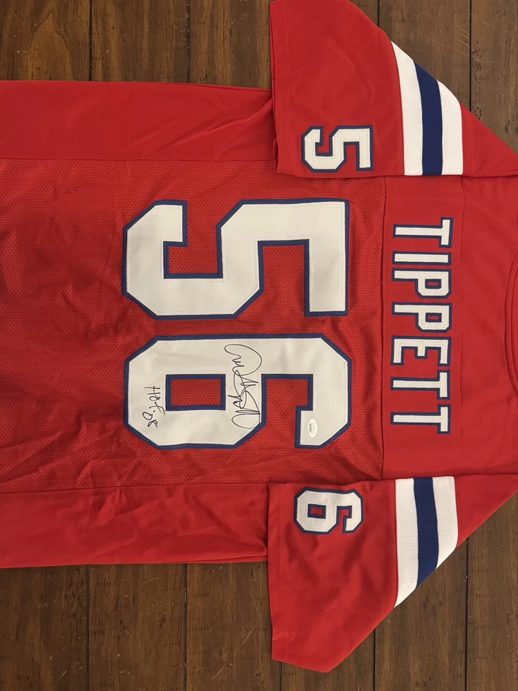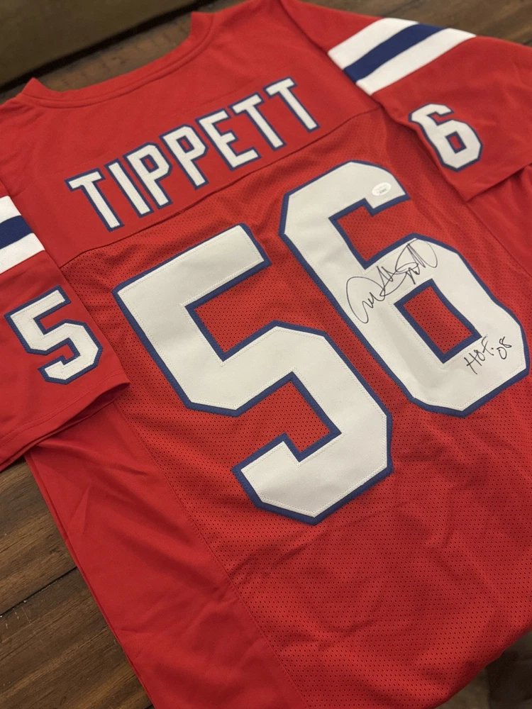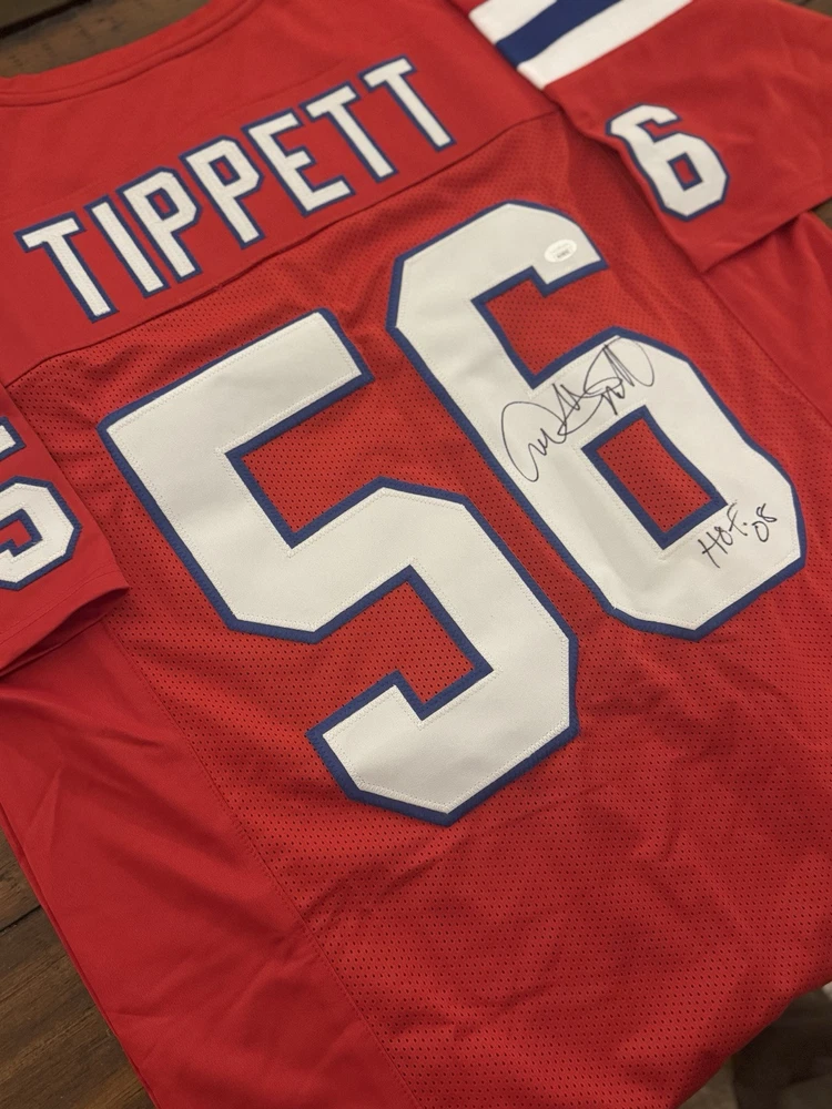 Indulge in the spirit of the game with this authentic Andre Tippett signed jersey, a must-have for any Football-NFL memorabilia enthusiast. This custom jersey, autographed by the legendary player himself, comes with a JSA certification, ensuring the authenticity of the signature and the value of your investment. The jersey is a size XL, providing a comfortable fit for display or wear. It's a unique piece of sports history, perfect for adding to your collection or as a standout gift for a football fan. Capture a piece of NFL glory with this certified autograph.