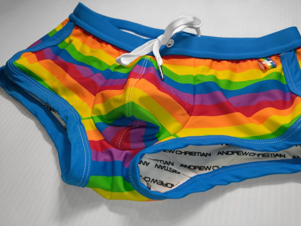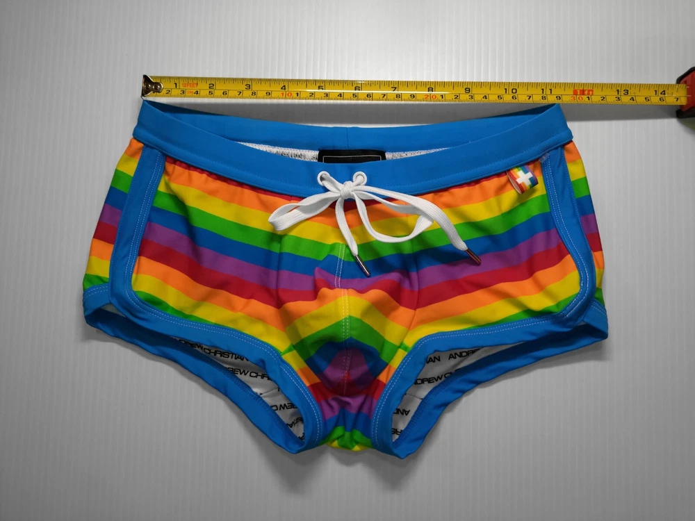 A N D R E W C H R I S T I A N. G E T F U N. G E T S E X. ANDREW CHRISTIAN PRIDE RAINBOW STRIPES SWIM TRUNK. XSMALL. NWOT. VERY RARE. ๐ GAY INTEREST. VERY RARE ITEM. COLLECTION 2023. NO LONGER IN PRODUCTION!!! If you are an ANDREW CHRISTIAN brand collector (fan) this is an Amazing item for you ๐๐ณ๏ธ๐ When you purchase this product you will receive a free bonus gift: Andrew Christian "Pop Art Penis" backpack, which is convenient to store your sexy things! So show off your big pride with the fun and fabulous Pride Stripe Trunk swimwear. This super cute rainbow design with a slimming drawstring waistband will truly give you something to be proud of. Plus, our brilliant hang-free pouch with a fun snuggle fit will leave you with no sticking, squashing, re-adjusting, sweating, or chafing. Be loud, be proud! Category : Men's swimwear Condition : New without tag Color : Rainbow Size : XSmall - waistband in horizontal dimension (laying flat) 11 1/2" - look at the photo. Please note this is a XSmall size. Swimsuit It has great stretch and is perfect fits for those who wear a Small size! For example. The model in the photo (look my photos) is wearing a Medium size and these swim trunks XSmall size fit very tightly. The pouch is very elastic and holds your juicy yummy ๐๐๐! Amazing! They can be worn inside out (flip)! Cut off the tags and wear them inside out (flip)! Two colors in one! Now you get two options to wear!!! Designer Features: Limited Edition Style Will Never Be Made Again Fun Update on our Basic Swim Trunk Slimming Drawstring Waistband Hang-Free Pouch With Fun Snuggle Fit Polyamide - A Silky, Durable, & Lightweight Fabric, Stretches In All Four Directions Comes In Limited Edition Pride Stripe Design No Hidden Cups, Straps, Or Padding Stunning Contrast Details Fabric : 80% Polyamide, 20% Spandex Care : Hand Wash Cold. No Bleach. Lay Flat Dry. Do Not Iron Style : # 7836 Designed In The ANDREW CHRISTIANยฎ Design Studio In Los Angeles, California Please ask any questions before deciding to purchase!!! I hope to provide you with a little slice of passion and fantasy in your life with my hot ๐ฅ wardrobe ๐ฉฒ๐ฉณ๐๐๐๐ฆ๐ ๐คค๐๐ณ๏ธ๐ Sold As Is!!! No return!!! No exchange!!! See my other items !!! Enjoy!!!
