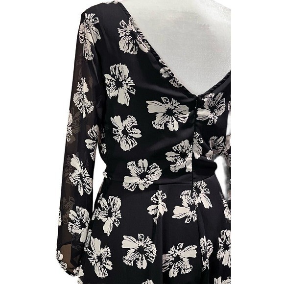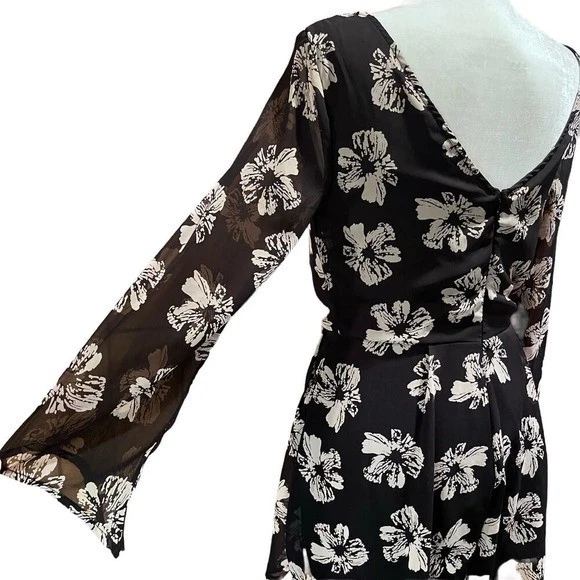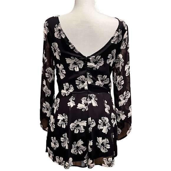 ANGL Black White Floral Long Sleeve Romper V-Back Size M (G262) Measurements ( garment laid flat) Pit to pit/ Bust in inches: 17" Waist: 14" Length in inches, starting from the shoulder: 29" Keywords: Floral, Romper, Long Sleeve, Sheer Sleeves, V-Back, Black and White, Monochrome, Summer, Spring, Festival, Boho, Casual, Party, ANGL, Medium