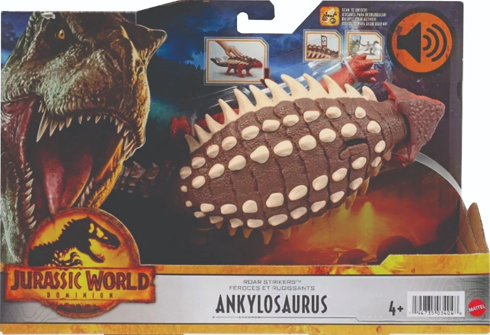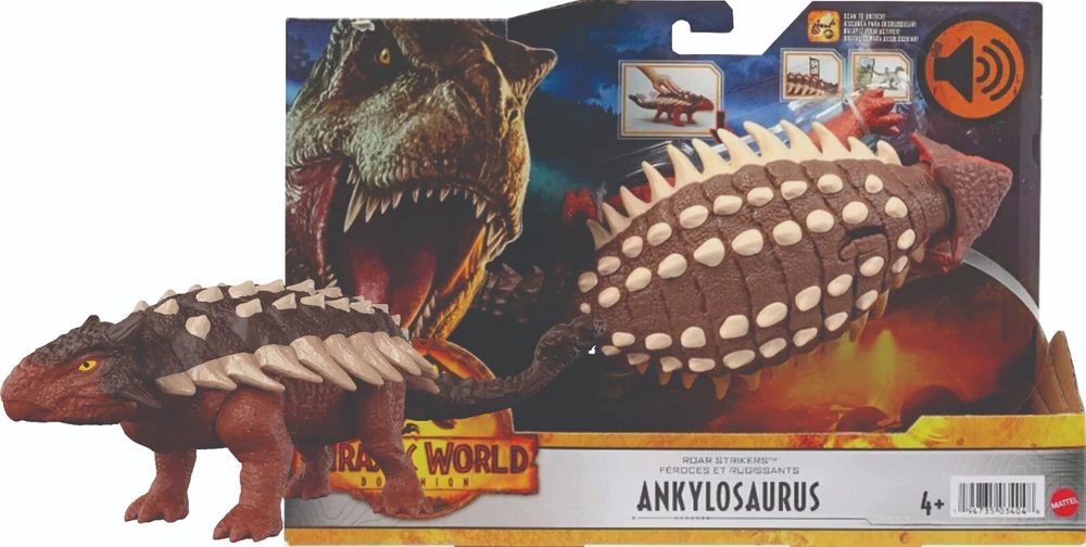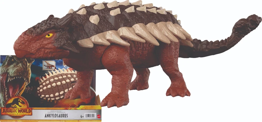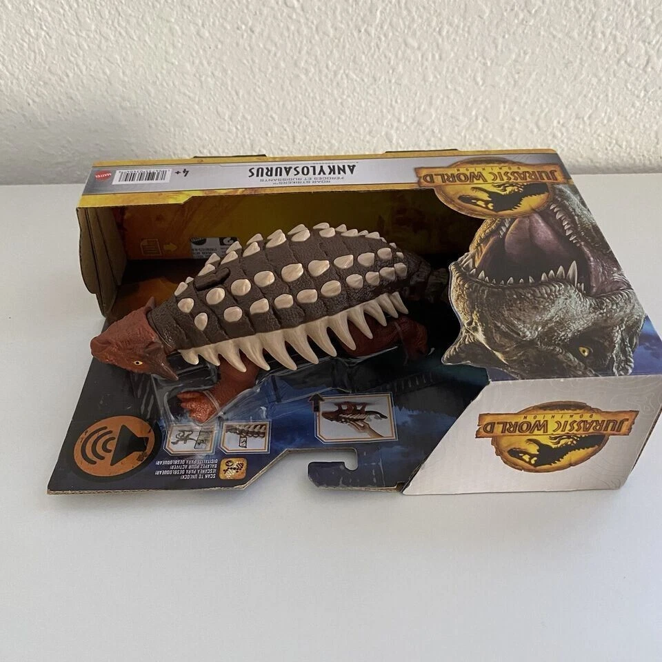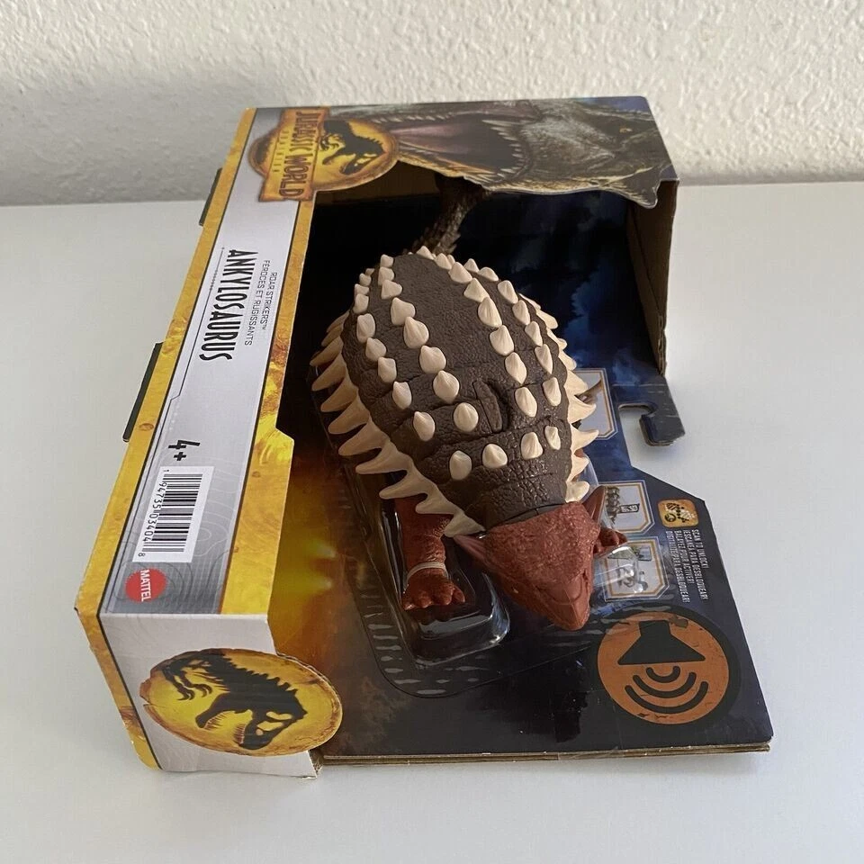 Introducing the ANKYLOSAURUS Jurassic Park World Action Figure, perfect for fans of the iconic movie franchise. This multicolor figure is made of high-quality ABS plastic and depicts the fierce Ankylosaurus character. With its intricate details and realistic design, this action figure is sure to impress collectors and fans alike. This San Diego Comic Con exclusive is a must-have for any Jurassic World fan, and is suitable for ages 4+. The figure is part of the Roar Strikers collection and was manufactured in China in 2020. Don't miss out on the chance to add this stunning ANKYLOSAURUS figure to your collection. These pictures are stock photos and are not the original photos Some packaging have imperfections.