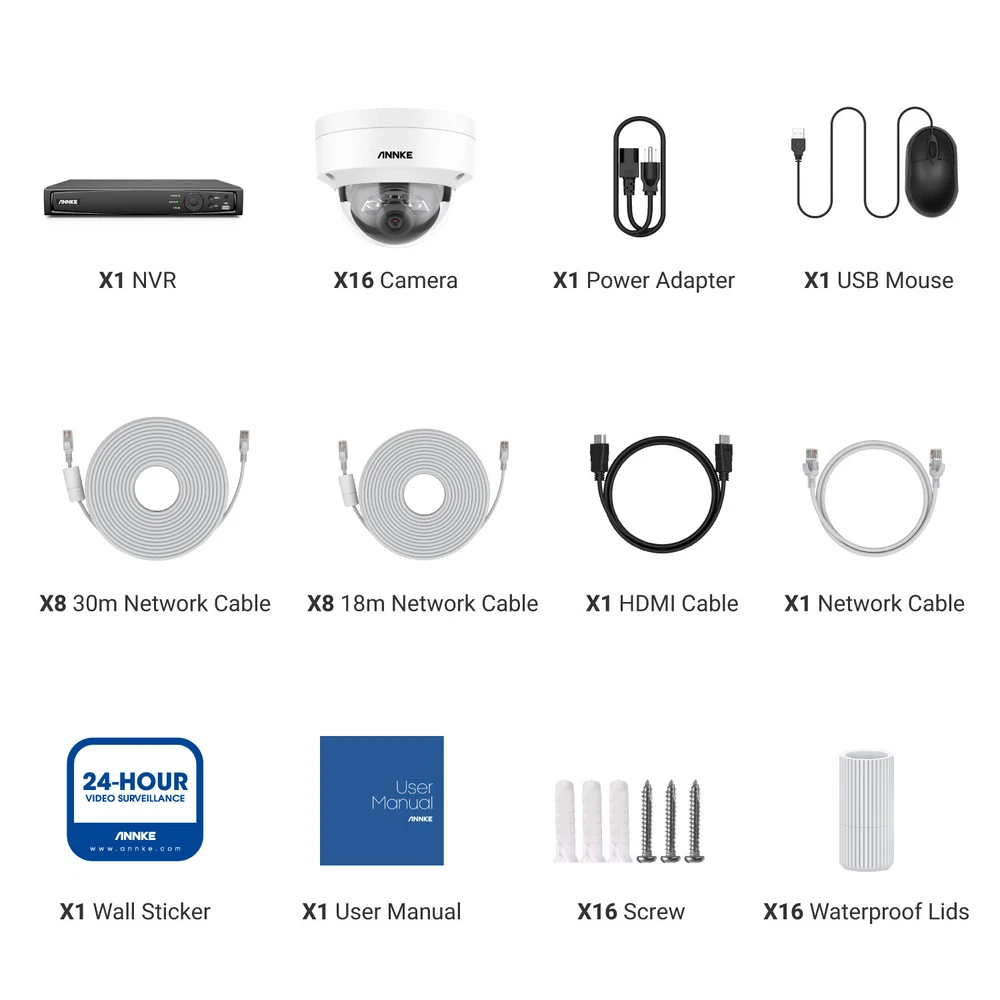 ANNKE 12MP 16CH NVR 4K Audio POE Security Camera System Full Color H.265+ IP67