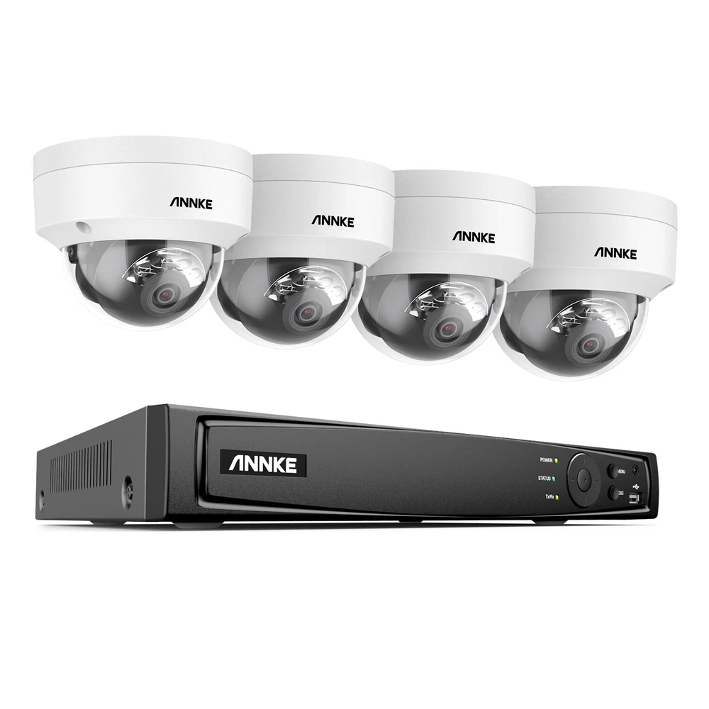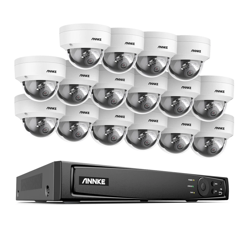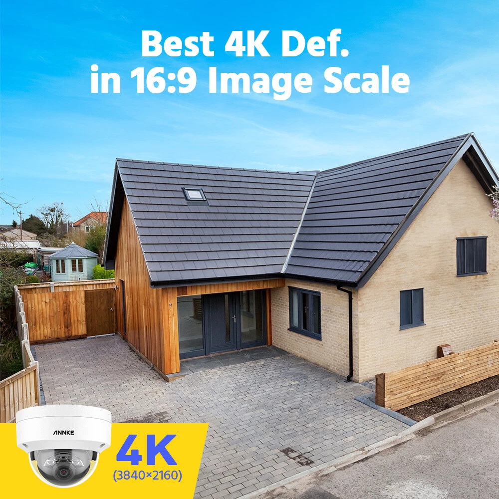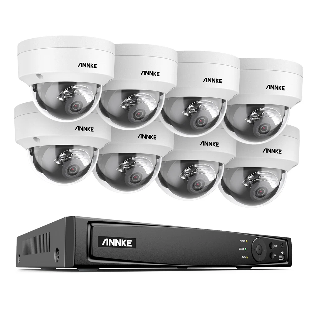 ANNKE Home Surveillance 1080P TVI Camera System 5MP TVI Camera System 4K TVI Camera System 5MP POE Camera System 4K POE Camera System 12MP POE Security Camera Kits Wireless IP Camera System SANNCE Home Surveillance 1080P TVI Camera System 1080P ColorVu Camera System 5MP TVI Security Camera System 3MP POE Camera System 5MP POE Camera System 8MP POE Camera System Wireless Camera System CCTV Camera DVR/NVR CCTV Accessories POE IP Security Cameras ebay2023 ANNKE H800 4K Color Night PoE Dome Security System with 16CH 12MP NVR True 4K Power with 24/7 Maximum Protection Best 4K Def. in 16:9 Image Scale The 1/2.4" progressive scan BSI CMOS image sensor delivers 4K resolution (3840*2160), not only bringing clearer image quality with finer details but a 16:9 image scale that is perfectly matched with the screen without distortion. Accurate Human & Vehicle Detection Motion Detection 2.0 recognizes and extracts key objects quickly like human beings and vehicles, reducing up to 99% of false alarms. Hi-Fi Audio Recording Level up the security by recording videos with voice information. The built-in noise-cancelling microphone enables high-fidelity audio recording by filtering out external sounds for immersive listening. Audio record enhances security coverage and helps interpret events. From Black & White to Colored Night With the default IR night vision, human&vehicle triggered and turned the vision into color. Remains color night vision even in dark environments, turns to B&W when less than 0.005Lux. Also supports IR night vision and color night vision mode switching. (100ft IR & color night vision distance) TF Card & NVR Storage Record videos onto the NVR (an HDD is needed for video record, built-in 2 SATA interfaces, support up to 2 8TB HDD for maximum 16 TB capacity) or onto a TF card up to 512 GB (not included) for local video storage without paying monthly cloud storage fees. SD Card: Supported UP to 512GB Micro SD Card (Not Included) HDD: Supported UP to 8TB Hard Disk Drives (HDD Not Included) Real-Time App Pushes & Email Alerts When the system detects any difference, it will push instant app notifications and email alerts to you, so that you can access the system to check the motion events and take actions to prevent possible intrusion. Email: Email alert with on-scene snapshots. APP: Instant push notifications right on your mobile device. Unlimited Smart Search&Playback 24/7 non-stop recording and auto-overwritten recording are default, or motion detection recording and schedule recording are up to you to choose. For the playback, instant playback, ordinary playback or event smart playback are supported. And extra user-friendly functions like private recording setting, lost video finding and 4 CH line crossing detection are all ready for you. Locate vital videos in countable seconds. Customized Motion Areas & Privacy Mask You can always customize motion detection with specific motion zones, like doorsteps, garages. You will receive instant alerts only when motion events happen in the customized areas. To protect your privacy, you may set up the privacy mask. The system will ignore the masked zones when recording videos. Maximum Protection with IP67 & IK08 Rating Built with IP67 weatherproof, the camera braves extreme temperatures as low as -22 °F & as high as 140 °F. The rugged dome camera with IK08 vandal-proof design withstands harsh impacts. You can count on this camera for all-year-round monitoring wherever you live. 120 dB True WDR & 3D DNR The 120 dB true WDR automatically adjusts the brightest & darkest points of the videos, resulting in optimized & highly-detailed footages in the high-contrast lighting conditions. 3D DNR filters out digital noise to provide a cleaner and more accurate image in low-light scenes. Industry-Leading H.265+ Video Format Keep the exceptional 4K Ultra HD footages without the 4K file sizes thanks to the ANNKE's exclusive leading H.265+ video format. It recordes longer videos, a 80% increase in storage than H.264 coding, and provides smooth 4K stream without using all the data. 24/7 Recording Even Without Internet This PoE security camera system can provide 24/7 non-stop video recording even without Internet access. For remote access via smartphones, tablets or computers and motion alerts, Internet connection is required. NVR Video & Audio Video Compression H.264+/H.264/H.265/H.265+ IP Video Input 16CH PoE Video Output HDMI up to 4K, VGA up to 1080p Audio Input/Output 1/1 RCA Incoming/Outgoing Bandwidth 160/80 M ON-VIF Protocols Support Max Recording Resolution Up to 12MP(4096 X 3072) Max Playback Resolution Up to 12MP(4096 X 3072) Max Playback Channel 16CH Max Playback Capacity 1-ch@12 MP,3-ch@4 MP,6-ch@1080p Hard Drive HDD 2 SATA Interface HDD Capacity Up to 8 TB Capacity for each disk External Interface Network Interface RJ45 X1 (10/100/1000 M) PoE 16, RJ-45 10/100 Mbps self-adaptive Ethernet interface, IEEE 802.3 af/at USB 2X USB 2.0 Smart Function Deep learning 16-ch Human and vehicle targets detection(Need IP camera support) Smart Event Line crossing detection, intrusion detection, region entrance detection, region exiting detection(Need IP camera support) 4-ch Human and vehicle targets detection(IP camera does not need to support this function but the resolution cannot exceed 4MP) General Operating Power AC 100-240 V Power Consumption ≤15 W (Without HDD and PoE) Working Temperature 14 °F ~ 131 °F/-10 °C ~+55 °C PoE: Max 25.5 W for Single Port Dimensions (W X H X D) 15.2” X 12.4” X 2.0”/385 X 315 X 52 mm Weight (Without Hard Disk) 6.6 lbs./3 kg Camera Camera Image Sensor 1/2.4" Progressive Scan CMOS Video Compression Main stream: H.265+/H.265/H.264+/H.264 Sub-stream: H.265/H.264/MJPEG Max resolution 3840*2160(8MP) Audio Compression G.711/G.722.1/G.726/MP2L2/PCM/ AAC-LC Main Stream 50 Hz: 12.5fps@3840*2160, 20 fps (3200 × 1800, 2688 × 1520, 1920 × 1080, 1280 × 720) 60 Hz: 15fps@3840*2160, 20 fps (3200 × 1800, 2688 × 1520, 1920 × 1080,