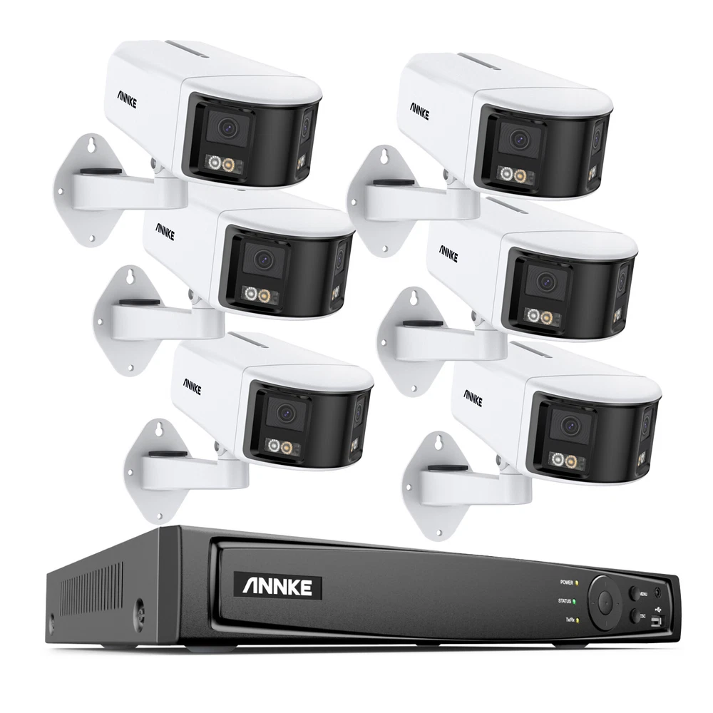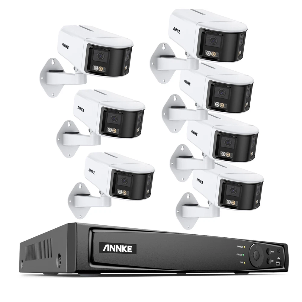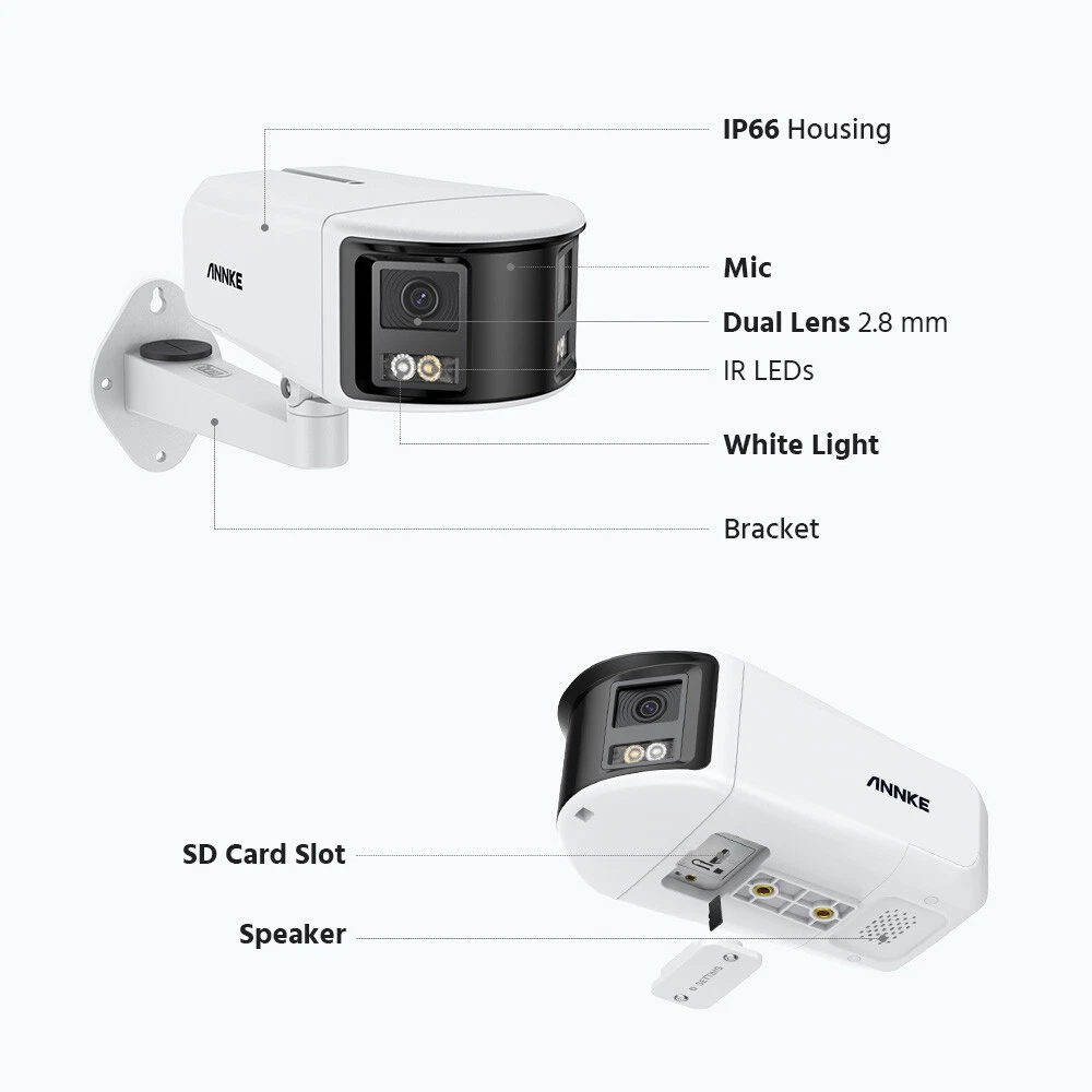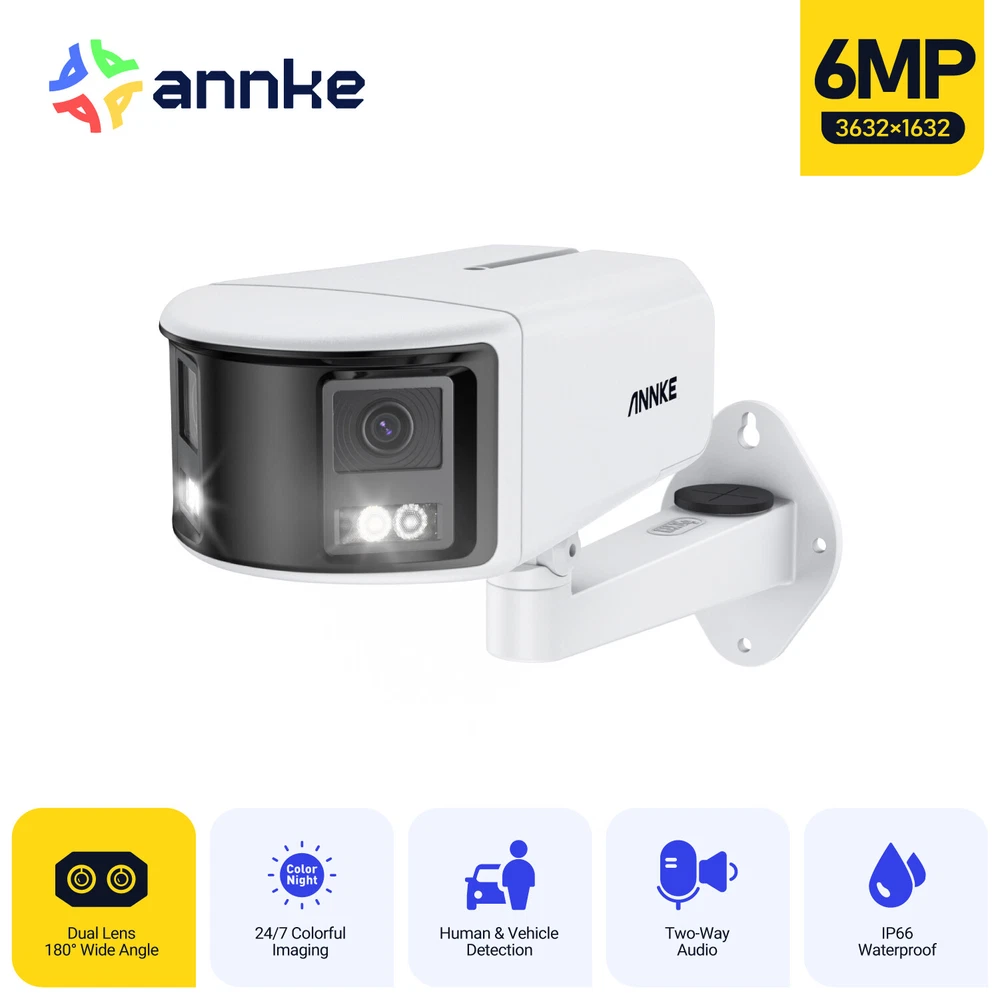ANNKE Home Surveillance 1080P TVI Camera System 5MP TVI Camera System 4K TVI Camera System 5MP POE Camera System 4K POE Camera System 12MP POE Security Camera Kits Wireless IP Camera System SANNCE Home Surveillance 1080P TVI Camera System 1080P ColorVu Camera System 5MP TVI Security Camera System 3MP POE Camera System 5MP POE Camera System 8MP POE Camera System Wireless Camera System CCTV Camera DVR/NVR CCTV Accessories POE IP Security Cameras ebay2023 ANNKE 4K Dual-Lens and Full-Colored IP Camera 180° Stitched Broader Vision 180° Super Wide Stitched View with Dual Lens Provides an aspect ratio of 20:9, this IP camera is equipped with advanced Image Fusion tech, perfectly matching the picture by dual-lens without distortion or lagging line. 4K Clarity Captures Every Detail This dual-lens security cam combines two 1/2.5'' BSI sensors and 2.8mm@F1.2 lenses together, showing you the unparalleled Ultra HD 4K videos at 4096×1840@20fps resolution. The details of the image are still clear when enlarged, smooth and without lag, and the picture is coherent and delicate. Smart Human&Vehicle Motion Detection Powered by smart motion detection 2.0 technology, can tell people and vehicles from other objects, The system will push instant app pushes & email alerts with snapshots, which optimized the alarm accuracy up to 99% to reducing false alerts caused wind, rain, leaves, animals, etc. Also provide 4 extra smarter detection settings. You may set the line/zone to ward off the unwelcome by triggering the customizable siren or sending alerts when it detects entrance/exit the preset zones. Full-Color Vivid Night Vision Strengthened by full-color night vision tech, be it day or night, the vivid live stream helps you know every single thing. There're 2 lighting modes - color-night vision (up to 20m/66ft) and IR fill light ( B&W picture up to 30m/100ft). Hi-Fi Real-time Two-way Talk Level up the security by recording videos with voice information. with built-in noise-cancelling microphone and speaker, this surveillance video camera provides two-way talk, allowing you to interact with the visitors and deter intruders. You can customize your sirens or choose from the 12 preset audible warnings. TF Card, NVR & NAS Multiple Storage Options Record videos onto the NVR (ANNKE New Version) or onto a TF card up to 256 GB (not included) for local video storage without paying monthly cloud storage fees. The IP camera also supports NAS, providing another data backup or sharing way to you. SD Card: Supported UP to 256GB Micro SD Card (Not Included) HDD: Supported UP to 8TB Hard Disk Drives (NVR&HDD Not Included) NAS: Work with FTP/NAS (Not Included) Easy Remote Access & App Alarm Pushes With free ANNKE vision App & client, you are able to access & control the camera remotely via 3G/4G/5G or WiFi from your smartphones, tablets or computers, browsers (Google Chrome, Safari, etc.). you and your family can check live stream or playback anytime, anywhere. When the network camera detects any difference, it will push instant app notifications and email alerts to you to prevent possible intrusion. Email: Email alert with on-scene snapshots. APP: Instant push notifications right on your mobile device. PoE or DC 12 V Power Supply The network camera can work standalone. Plug it into an outlet with an adapter (not included) & link it to a router with a network cable. If you have a ANNKE PoE NVR(N48PAW/N46PCK/N88PCH/N96PBD), you can realize data & power transmission via PoE. When connecting the to NVR, it takes up only ONE channel. 120 dB True WDR & 3D DNR The 120 dB true WDR automatically adjusts the brightest & darkest points of the videos, resulting in optimized & highly-detailed footages in the high-contrast lighting conditions. 3D DNR filters out digital noise to provide a cleaner and more accurate image in low-light scenes or in strong backlight. IP66 Rated Weatherproof Rated IP66 outdoor weatherproof, this surveillance camera works seamlessly from -22 °F – 140 °F /-30 °C – 60 °C and can bravely combat the fresh gale. All can prove to be outdoor industrial standards. Industry-Leading H.265+ Video Format Keep the exceptional 4K Ultra HD footages without the 4K file sizes thanks to the ANNKE's exclusive leading H.265+ video format. It recorders longer videos, a 80% increase in storage than H.264 coding, and provides smooth 4K stream without using all the data while keeping vivid image quality. Bank-Level Encryptions & Protocols Consolidated with Onvif, RTSP, FTP protocols, and secured by SLL & HTTPS, the video transmission and download are extremely hackproof from the top to bottom. Camera Camera Image Sensor 2×1/2.5" Progressive Scan CMOS Max resolution 4K(4096 × 1840), 20: 9 picture ratio Main Stream 50 Hz: 20 fps (4096 × 1840) 60 Hz: 20 fps (4096 × 1840) Sub Stream 50 Hz:20 fps(1200 × 536,960 × 432) 60 Hz:20 fps(1200 × 536,960 × 432) Video compression Main Stream: H.265+/H.265/H.264+/H.264 Sub Stream: H.265/H.264/MJPEG Video Bit Rate 32 Kbps to 16 Mbps Built-in Microphone Built-in Microphone, record with audio Audio Compression G.711/G.722.1/G.726/MP2L2/PCM/AAC-LC/MP3 Built-in Speaker Yes, max. sound pressure: 10 cm: 95 dB Lens Dual lens: 2.8 mm Network Protocols TCP/IP,ICMP,HTTP,HTTPS,802.1x,FTP,DHCP,DNS,DDNS,RTP,RTSP,RTCP,NTP,UPnP,SMTP,IGMP,QoS,IPv6,UDP,Bonjour,SSL/TLS,WebSocket, SNMP Min. Illumination Color: 0.005 Lux @ (F1.2, AGC ON), 0 Lux with IR Angle of View Horizontal FOV: 180° ± 10°, Vertical FOV: 81° ± 10° Supplement Light Type White light, IR Supplement Light Range White light up to 20 m, IR light up to 30m Motion detection 2.0 Supoort, include Human & Vehicle Image Parameters Switch Yes Image Enhancement BLC, HLC, 3D DNR Wide Dynamic Range 120dB WDR API Open Network Video Interface Version 19.12 Basic Event Motion detection (support human and vehicle detection) video tampering, exception detection Smart Event Line crossing detection, intrusion detection, region entrance detection, region 
