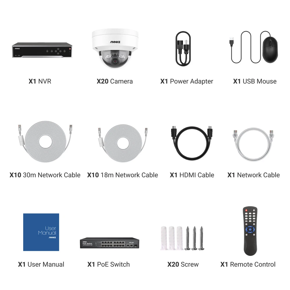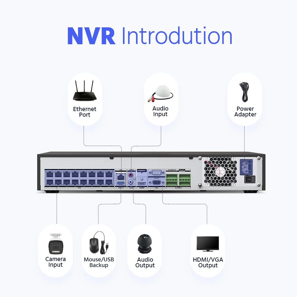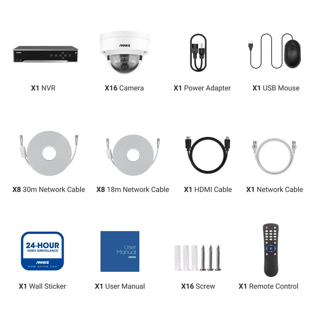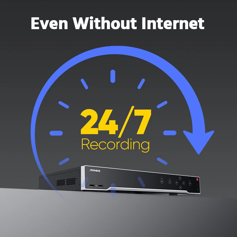 ebay2023 ANNKE H1200 32CH 12MP Smart Color Night PoE Dome Security Camera System Multi-functional 12MP Surveillance Amazing 12MP Crisp Quality 12MP resolution with the 1/2.7" progressive scan BSI CMOS image sensor, not only delivers crisp quality with finer details but outputs 4096*3072 image scales to match the screen better, not distorted. Upgraded Human & Vehicle Detection Motion detection 2.0 adapts deep learning algorithms, which can detect and extract key objects like humans and vehicles quickly, minimizing APP false alarms pushes. Hi-Fi Audio Recording & Noise-Cancelling The cameras capture images and reveal the whole view of the given area. The built-in mic helps record videos with voice information, achieving high-fidelity noise-cancelling and increasing security coverage further. From Black & White to Color Night Vision With the default IR night vision, human&vehicle triggered, white light on and turns the vision into color; color night vision and IR night vision mode can switch each other. (100ft IR & color night vision distance) Expandable 32 Security Cameras The remarkably powerful internet video recording can connect 32 security cameras, it has built-in 16 PoE ports so that you can link to 16 cameras directly. If you want to connect another 16 cameras, you need to add a PoE switch (not included). Multiple Storage Options You can record videos with the inserted TF card slot, up to 512GB (not included) or with the NVR which built-in 4 SATA interface (support up to 12TB for each HDD, maximum 48TB capacity) for local storage, no monthly cloud storage fees. SD Card: Supported Up to 512GB Micro SD Card (Not Included) HDD: Supported Up to 48TB Hard Disk Drives (HDD Not Included) Real-time Motion Detection You can customize motion detection in every camera, you will get the app alarm notification and email alert with screenshots if there is detected motion, enhancing your security further. EmaiI: Email alert with on-scene snapshots. App: lnstant push notifications right on your mobile device. Optional Recording & Playback With the default 24/7 no-stop and auto-circulate override video recording, you can set up the motion detection recording or schedule recording. As for the playback, instantly playback, smart playback and event playback(motion detection, privacy mask, video loss/masking ) are all supported, you can choose any one of them. Customized Surveillance Areas & Privacy Mask You can customize monitor detection for specific surveillance areas, like garages, and yards. Once motion events are detected in customized zones, you will receive alerts instantly. You can set a privacy mask, then the mask area will be ignored when recording. IP67 & IK08 Additional Protection Built with IP67 weatherproof, the camera can brave extreme high-low temperatures(-22°F-140°F). Ruggedized dome camera with IK08 vandal-proof design can withstand harsh impacts. So you can count on this camera for better surveillance and security. 120 dB True WDR & 3D DNR The 120 dB true WDR can be used in various scenes, which is not overexposed to darkness but balanced in brightness. Whether it's a backlight or not, you can see it. 3D DNR not only filters out image noise but provides a cleaner image with finer details and clearer night vision. Advanced H.265+ Video Format H.265+ saves up to 75% storage spaces compared with H.264 coding, which not only records ultra-long videos but spreads it faster. 24/7 Video Recording Even Without Internet The PoE security camera system can still work and continue to 24/7 no-stop video recording even without the network. But if you want to perform remote access with smartphones, tablets and laptops, you need to link the internet. NVR Video & Audio Video Compression H.265+/H.265/H.264+/H.264 IP Video Input 32 Channel (Include 16 Channel PoE) Video Output HDMI up to 4K, VGA up to 1080p, CVBS Audio Input/Output 1/1 RCA Video output mode HDMI/VGA independent output Incoming/outgoing Bandwidth 256/160 Mbps Max Playback Resolution Up to 12MP(4096 X 3072)@30fps(Frame rate depends on IP camera) Max Recording Resolution Up to 12MP(4096 X 3072)@30fps(Frame rate depends on IP camera) Motion Detection 2.0 by NVR All channels, up to 4 MP (when enhanced SVC mode is enabled, up to 8 MP) video analysis for human and vehicle recognition to reduce false alarm Smart Event Facial recognition, perimeter protection, throwing objects from building, motion detection2.0, ANPR, VCA(Need IP camera support) Max Playback Channel 16CH Motion Detection 2.0 by Camera All channels Facial Recognition Face picture comparison, human face capture, face picture search Remote Connection 128 Smart Event Facial recognition, perimeter protection, throwing objects from building, motion detection2.0, ANPR, VCA(Need IP camera support) Hard Drive HDD 4 SATA Interface HDD Capacity Up to 12 TB Capacity for Each HDD(48 TB total) External Interface Network Interface 1, RJ-45 10/100/1000 Mbps self-adaptive Ethernet interface PoE 16, IEEE 802.3af/at, RJ-45 10/100 Mbps self-adaptive Ethernet interface USB Front Panel: 2X USB 2.0; Rear Panel: 1X USB 3.0 Serial Interface 2 RS-485 (Half-Duplex), 1 RS-232 Alarm Input/Output 16/4 General Operating Power 100-240V AC Power Consumption ≤ 20 W(without HDD and PoE off) Working Temperature 14 °F — 131 °F/-10 °C — +55 °C Dimensions (W X H X D) 440 × 387 × 75 mm ( 17.3"× 15.2" × 3.0") Weight (Without Hard Disk) ≤11 lbs. (5 kg) Camera Camera Image Sensor 1/2.7" Progressive Scan CMOS Video Compression Main stream: H.265+/H.265/H.264+/H.264 Sub-stream: H.265/H.264/MJPEG Max resolution 4096*3072(12MP) Audio Compression G.711ulaw/G.711alaw/G.722.1/G.726/MP2L2/PCM/AAC-LC Main Stream 50 Hz: 10 fps@4096*3072, 12.5 fps@(3840*2160, 3200*1800, 2688*1520, 1920*1080, 1280*720) 60 Hz: 10 fps@4096*3072, 15 fps@(3840*2160, 3200*1800, 2688*1520, 1920*1080, 1280*720) Sub Stream 50 Hz: 12.5 fps (1280*720, 640*480, 640*360) 60 Hz: 15 fps (1280*720, 640*480, 640*360) Video Bitrate 32 Kbps ~ 16 M