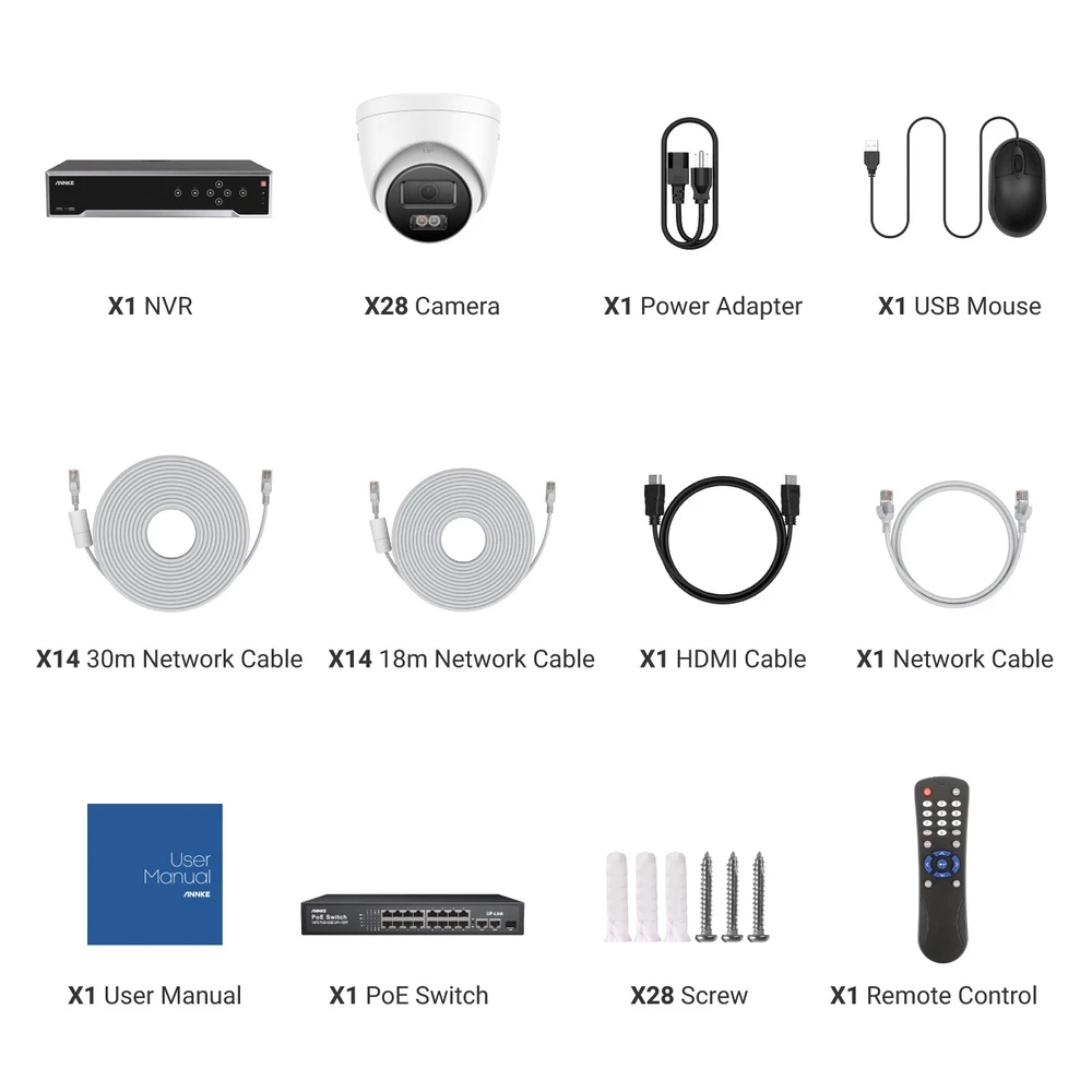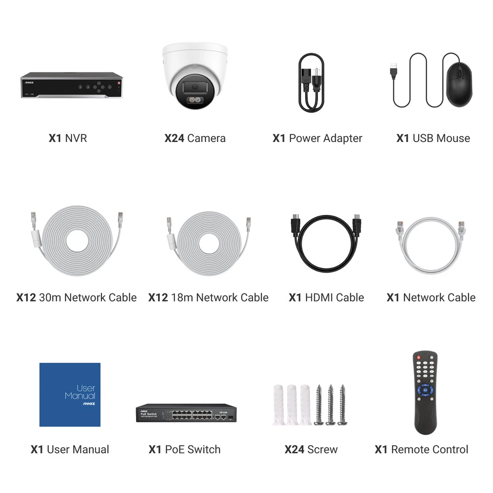 ANNKE 32CH NVR 12MP Audio POE Security Camera System Outdoor Color Night H.265+