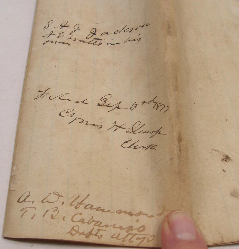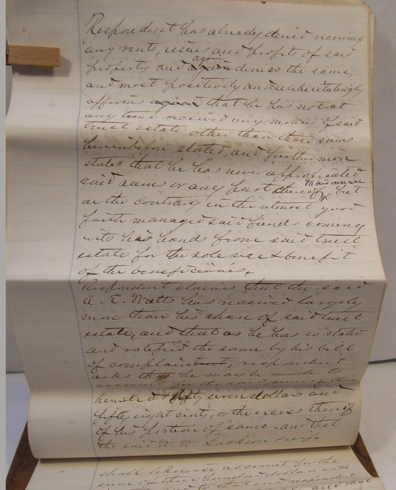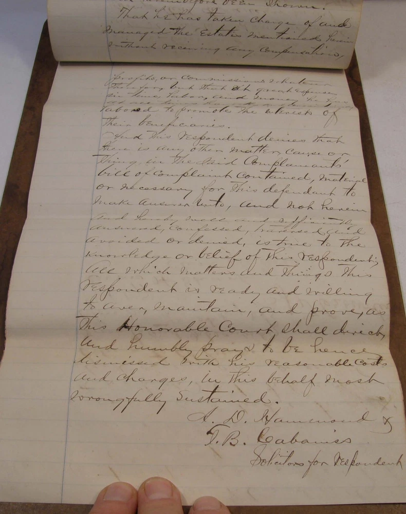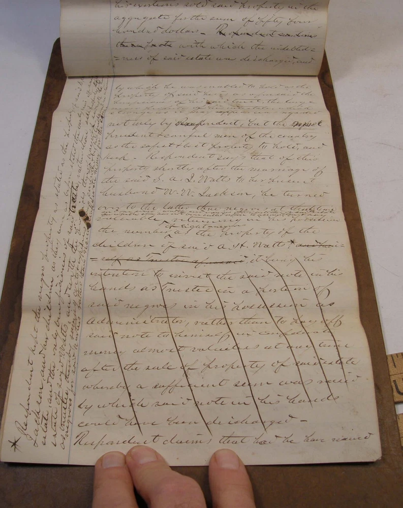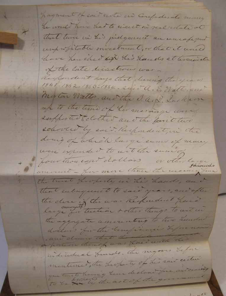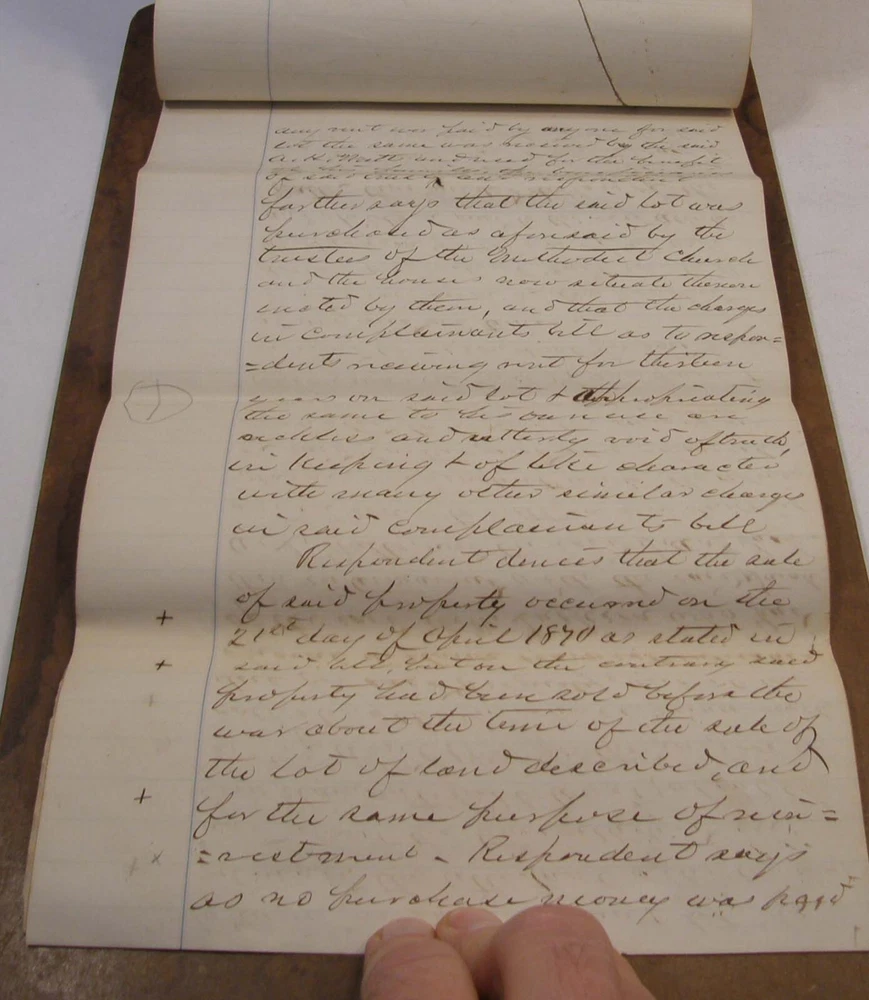 Please email with any questions. Antique handwritten Monroe County Superior Court legal document dated 1877, case between John Terrell Crowder and Albertus Watts and Sarah Ann Jerucia Thomas Jackson. Mrs Jackson was the widow of a man named Albertus H Watts who died in 1860. John Crowder was named trustee of Watts widow and children. Mr Watts must have been a relative or very close friend of Crowder since according to records online, he is buried in the Crowder Family cemetery in Monroe County. This document written 17 years after his death seems to have come from Watts son selling some property and using the proceeds that he had no right to in order to purchase the Johnston House Hotel on the public square in Forsyth, Georgia. The document has 20 handwritten pages. I didn't read the whole thing- between the stilted legalese and the handwriting it is a slow-go. I know that John T Crowder was a wealthy man in Monroe County and had organized a group of men into what was known as the "Monroe Crowders" during the Civil War.