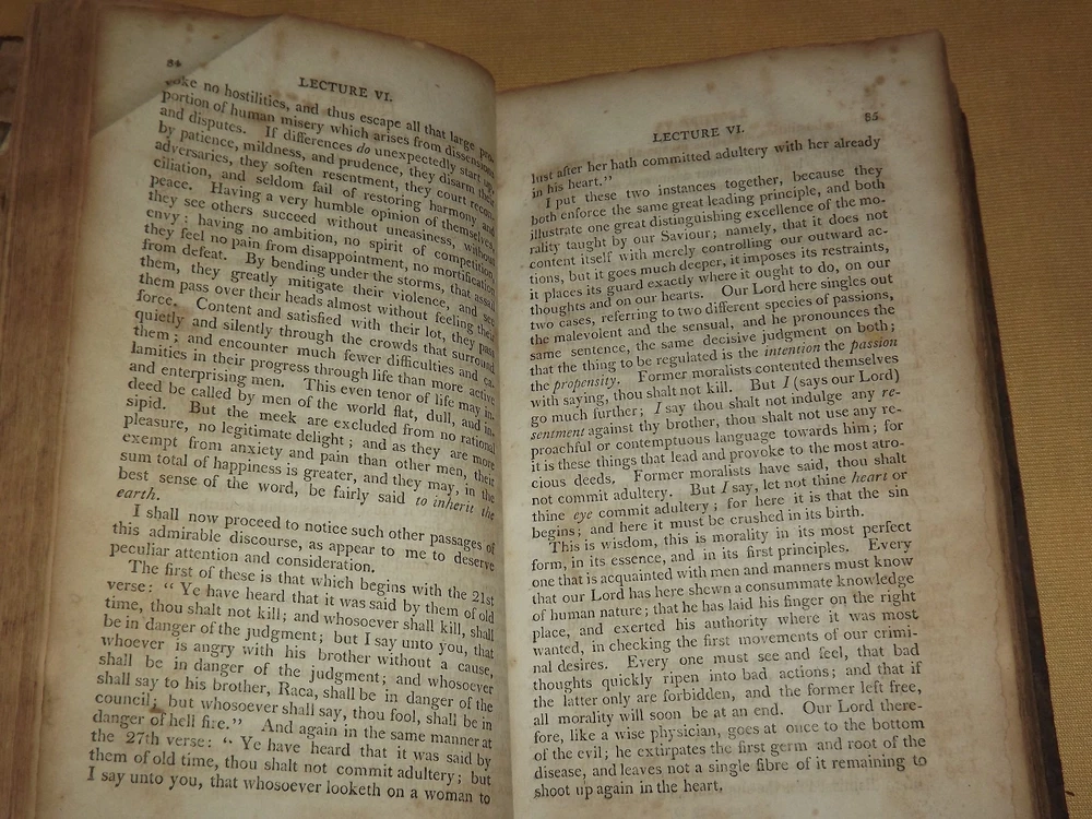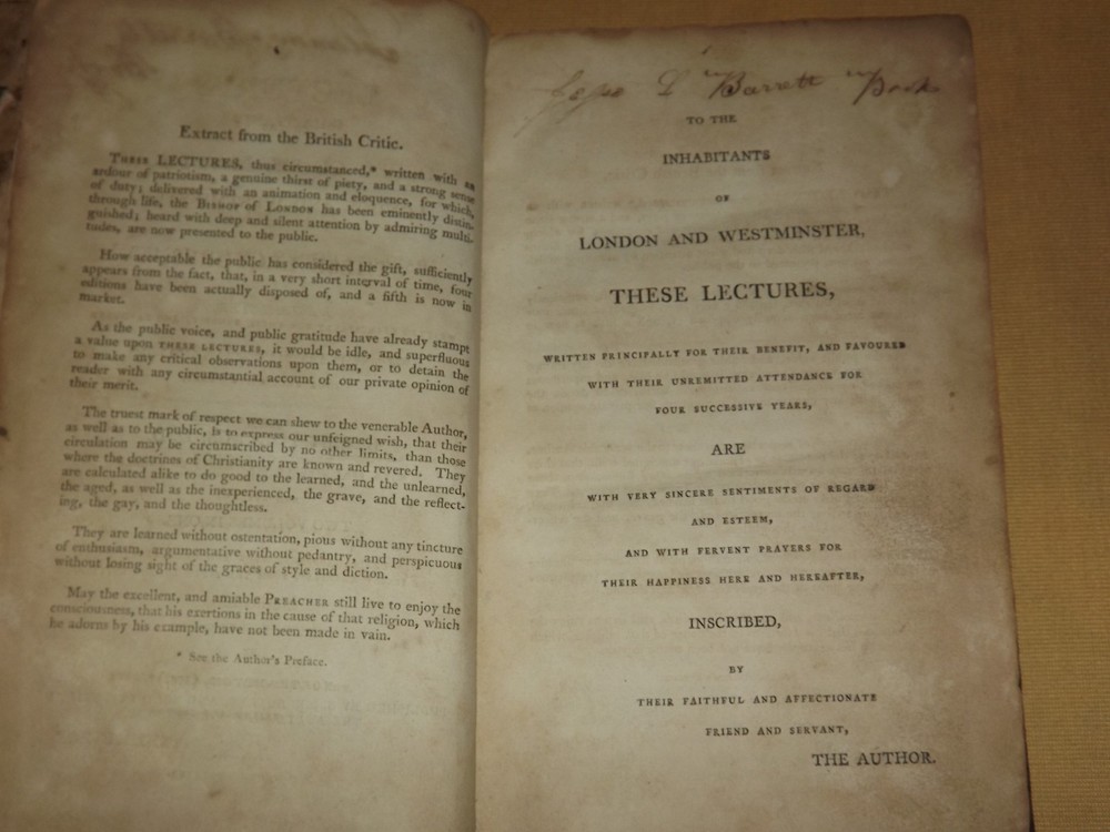 YOU ARE BIDDING ON..... ANTIQUE BOOK 1805 LECTURES ON GOSPEL OF ST MATTHEW PARISH CHURCH WESTMINSTER....BOOK IS IN POOR CONDITION......HAS A LOT OF TEARS..SOILING...AGE DISCOLORATION.. .. ..... MEASURES APPROX 8 1/2" X 5"...HAS TEARS/STAINING/SOILING/AGE SPOTTING & DISCOLORATION/CREASES....392 PAGES...PLEASE VIEW PHOTOS FOR CONDITION.***PLEASE E-MAIL IF YOU HAVE A QUESTION OR WANT AN ADDITIONAL PICTURE....PLEASE VISIT MY EBAY STORE FOR ADDITIONAL VINTAGE ITEMS..THANK YOU*** BX1632-110-XXXX